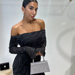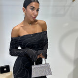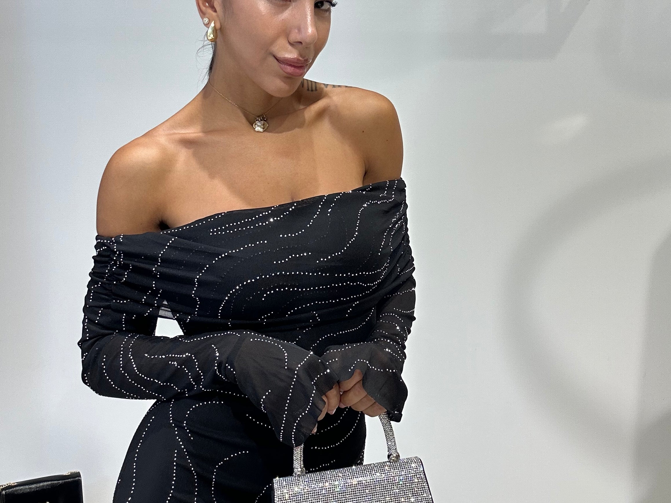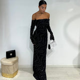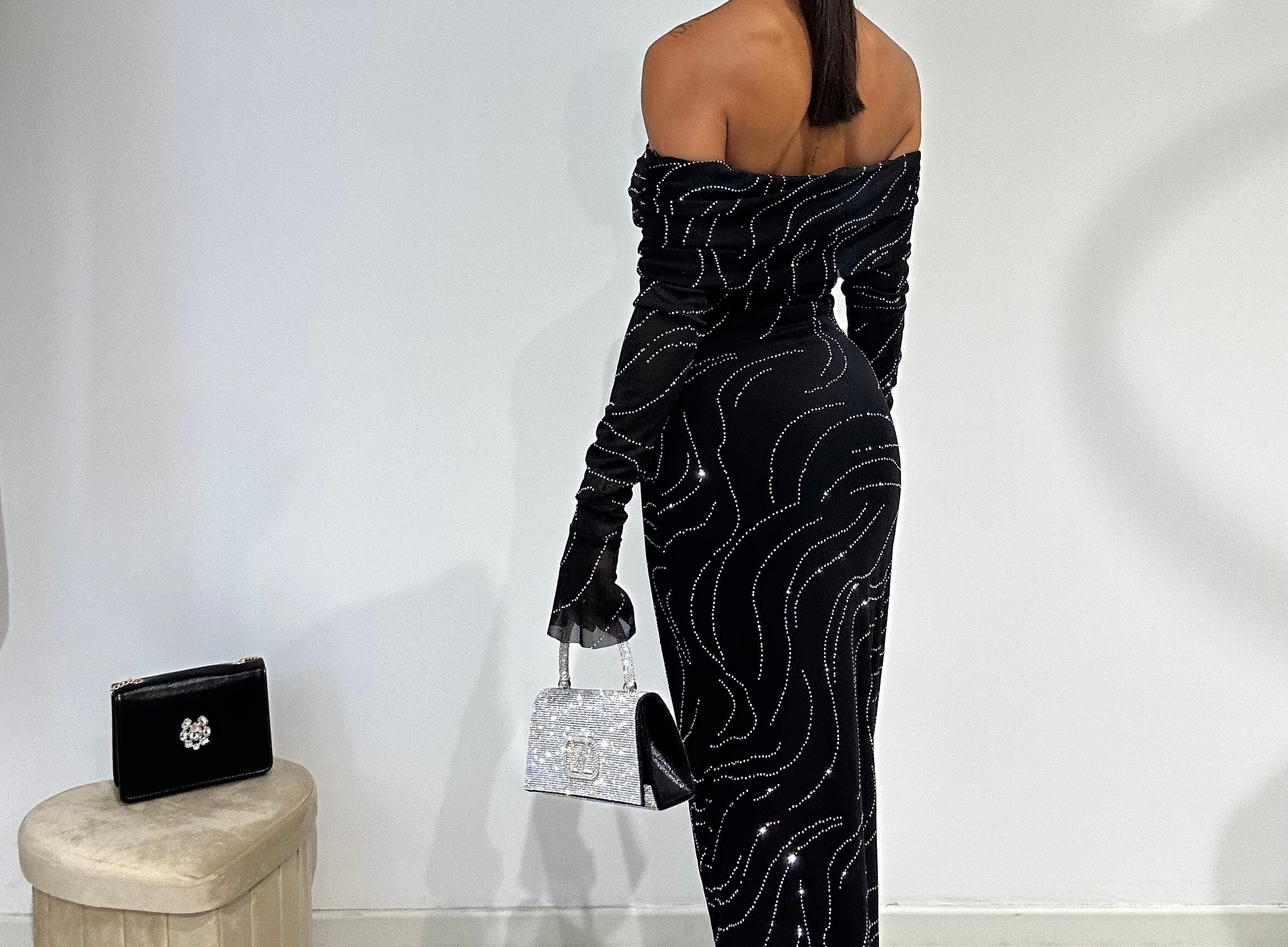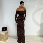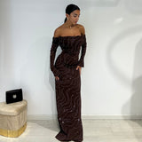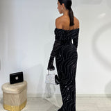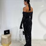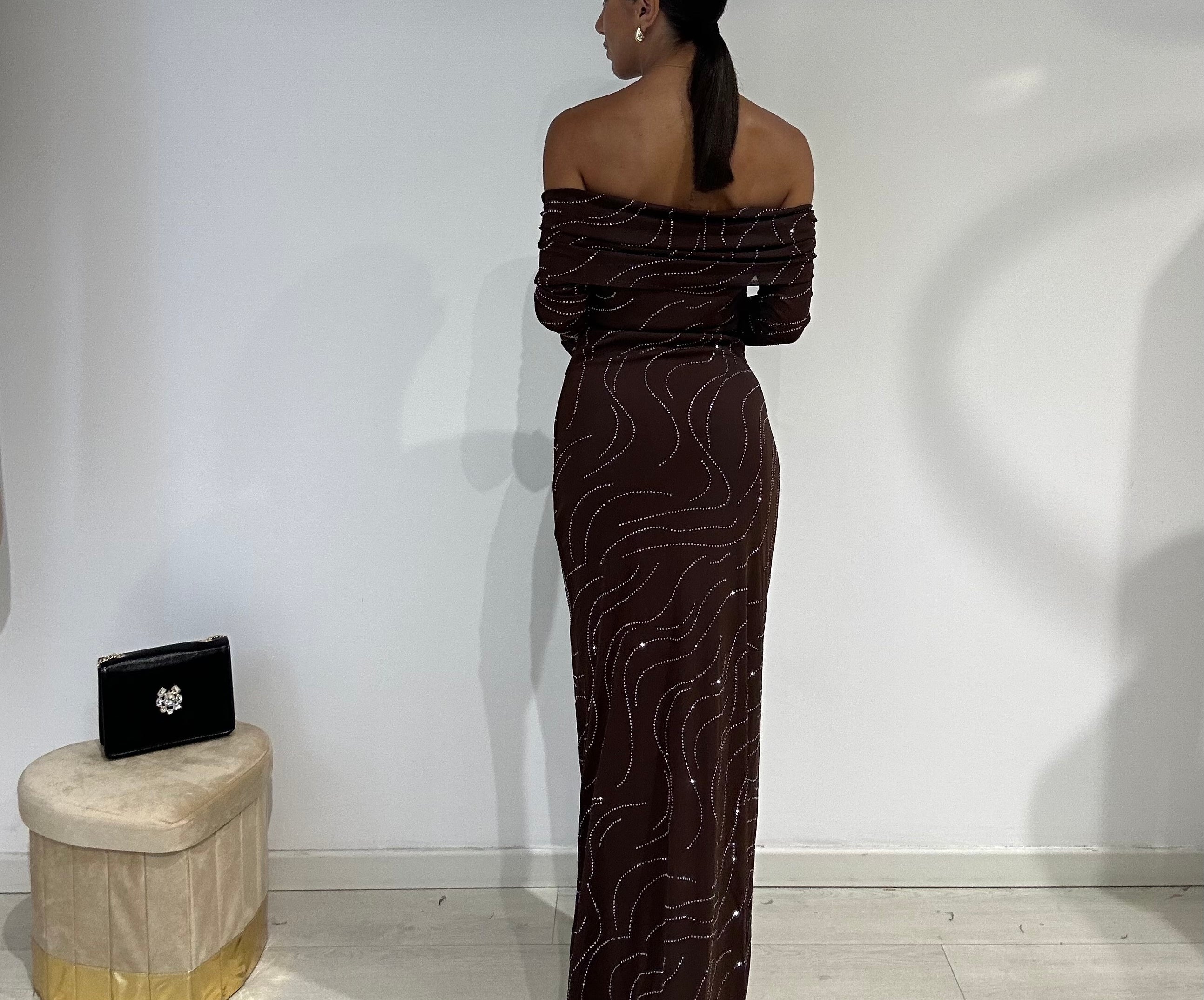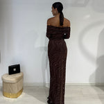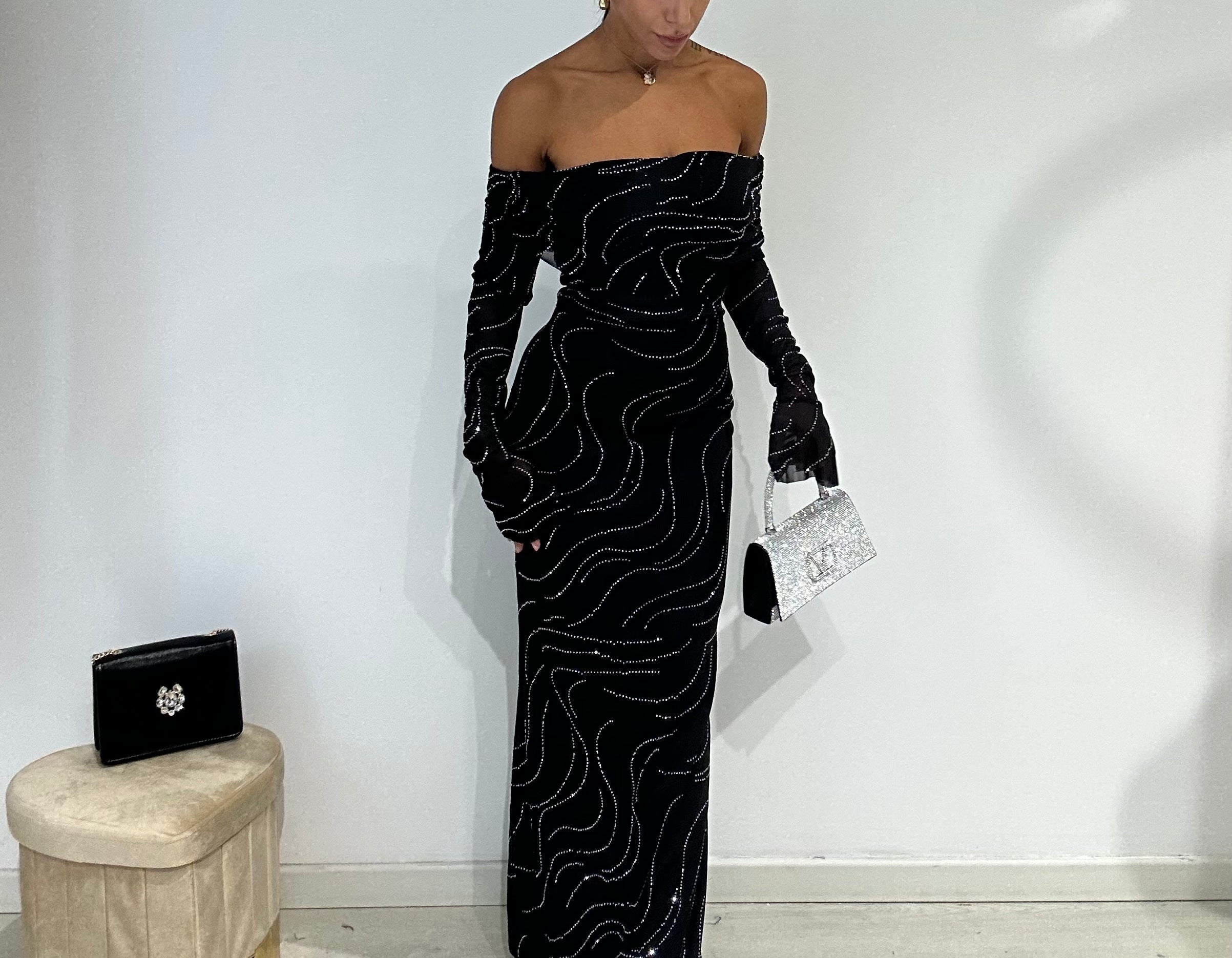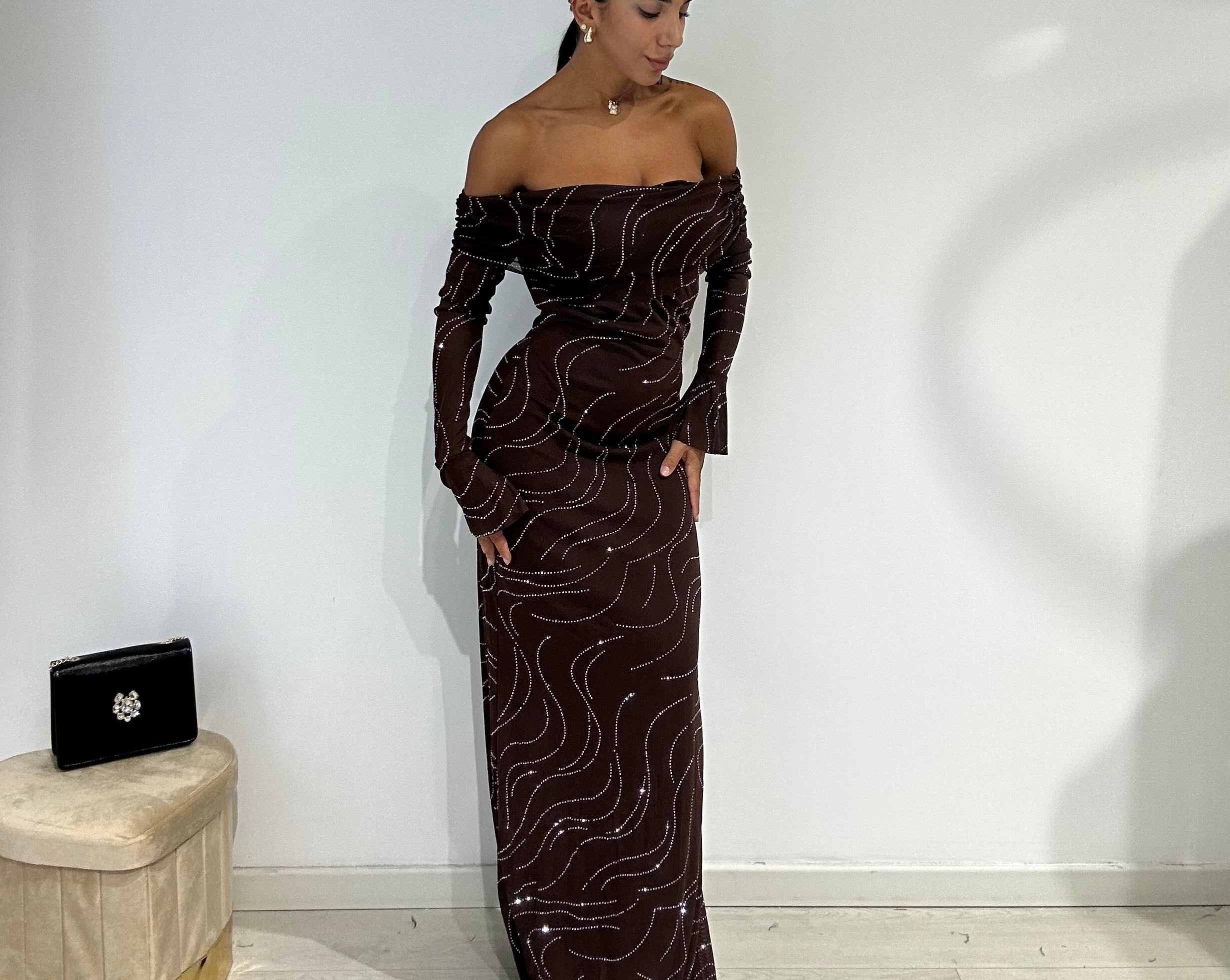 Abito lungo a sirena con scollo a barca