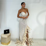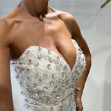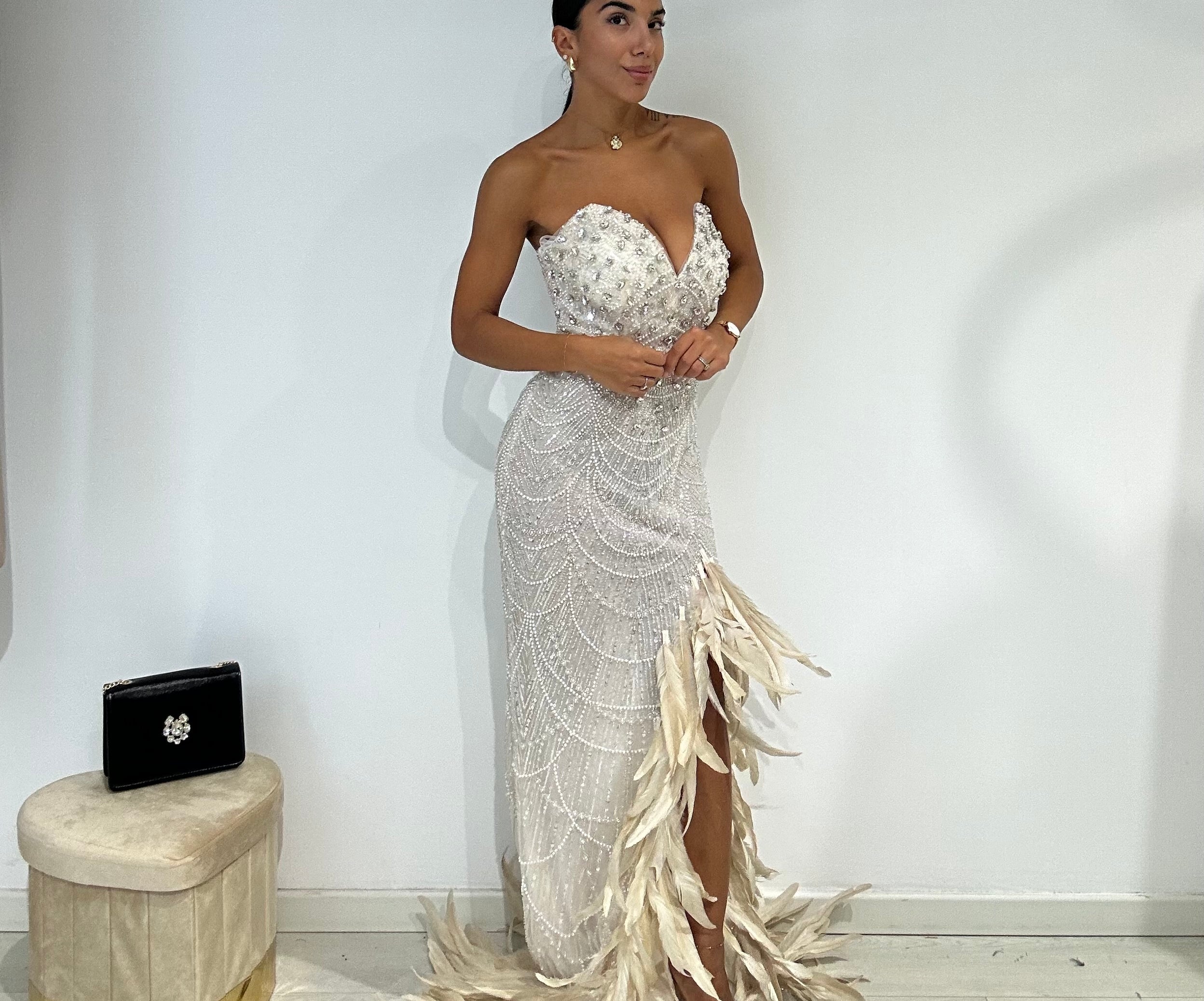 Profondo scollo a cuore , interamente impreziosito da pietre gioiello