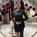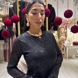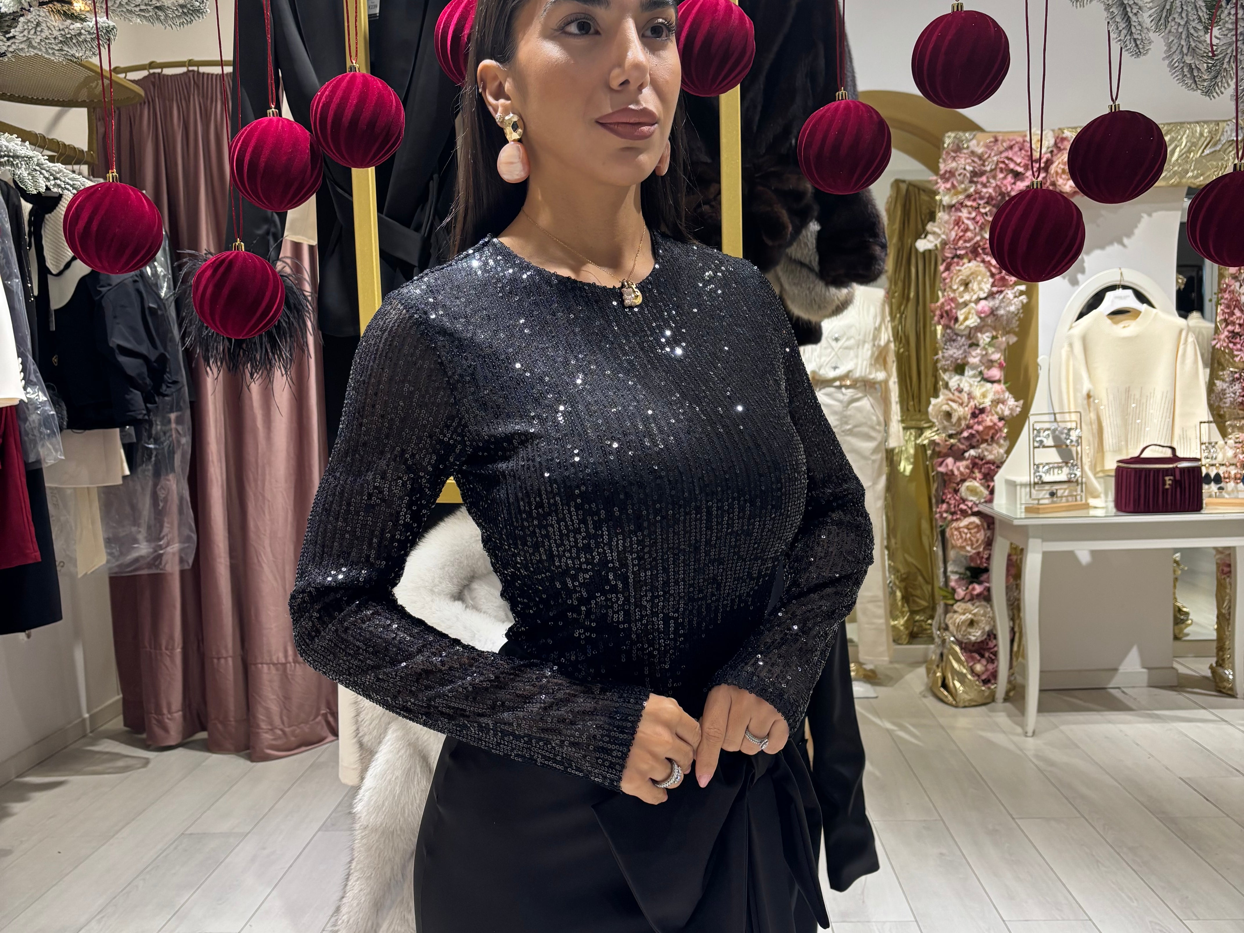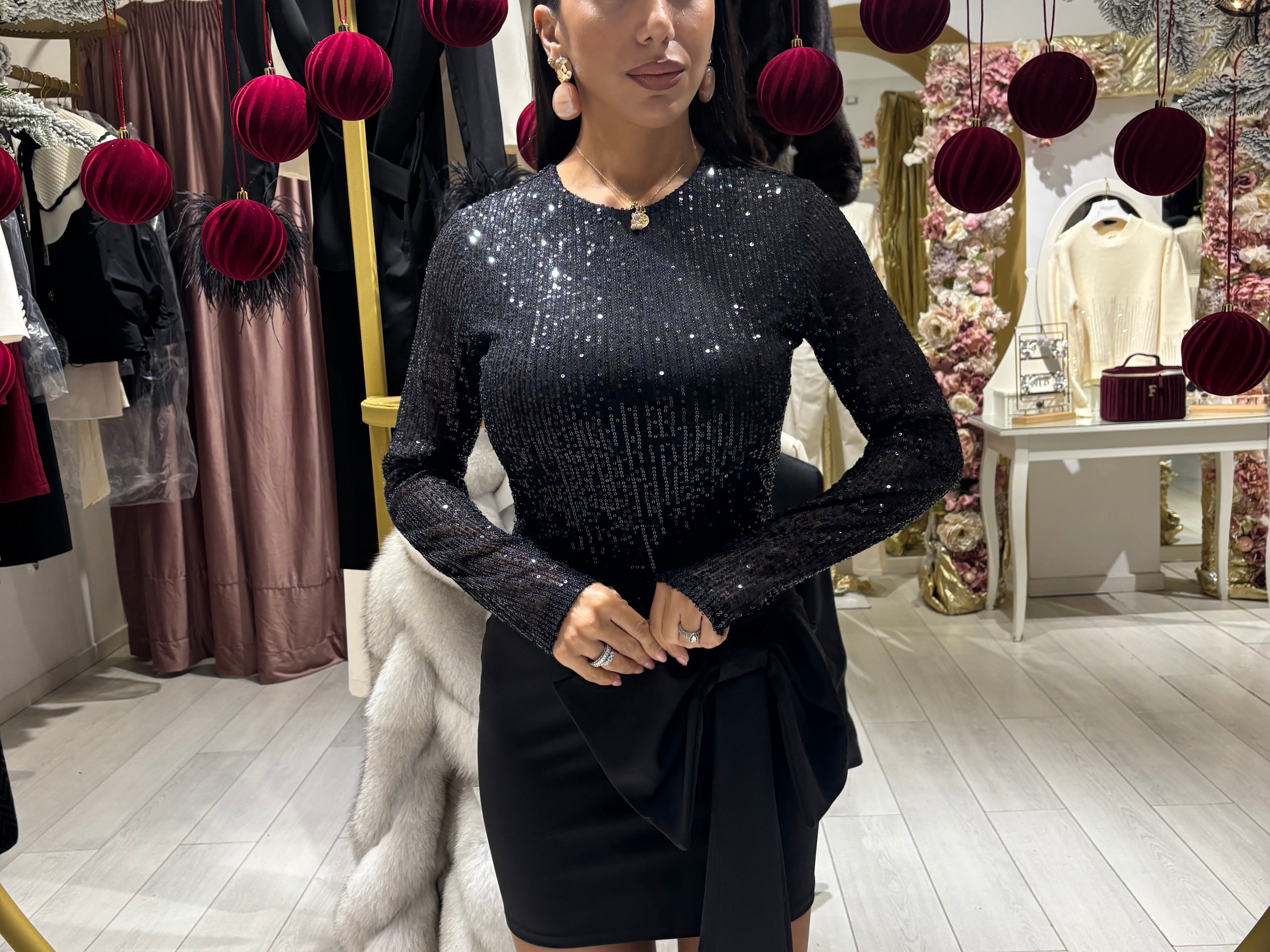 Abito in paillettes con fiocco sulla gonna in tessuto semi elasticizzato Sm Ml