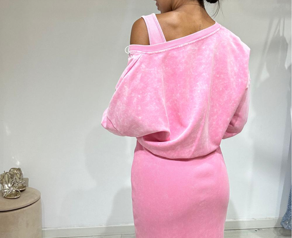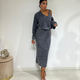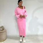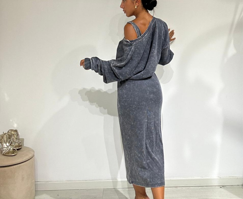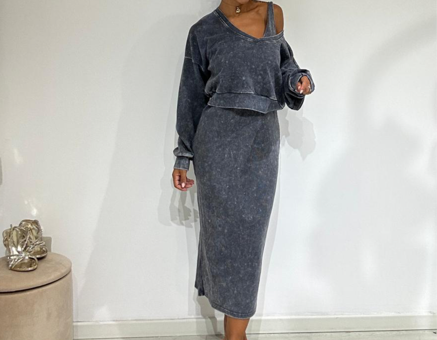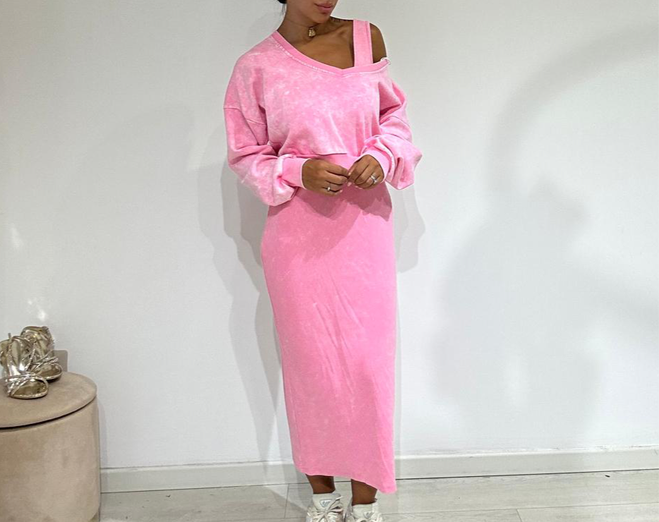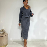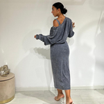 Completo compresilo di abito lungo morbido e maglia manica lunga, tessuto elasticizzato