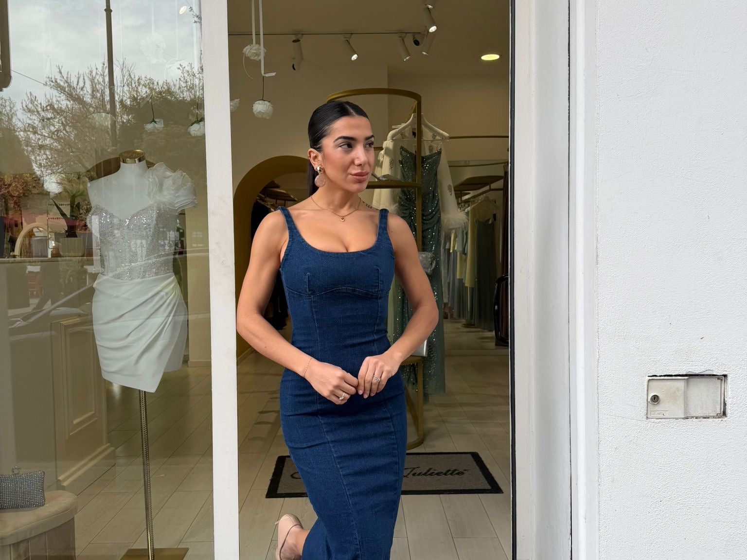 Abito midi dal fit aderente che valorizza la silhouette con eleganza e carattere. Il design strutturato con spalline e cuciture a vista esalta le forme, mentre lo spacco posteriore dona movimento e femminilità. Perfetto per look sofisticati e di forte impatto.