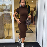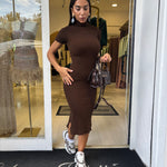 Abito longuette in tessuto elasticizzato a costine