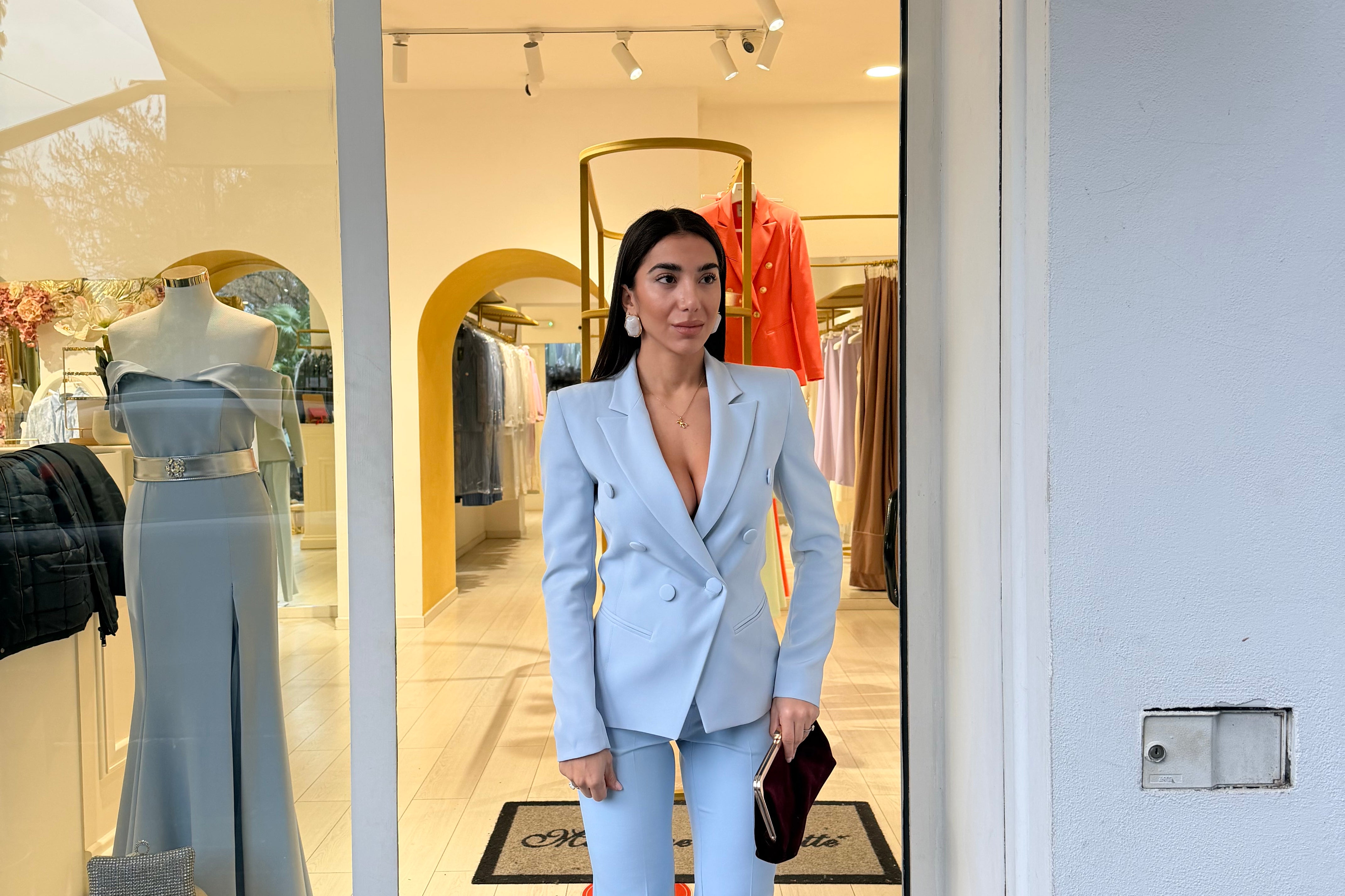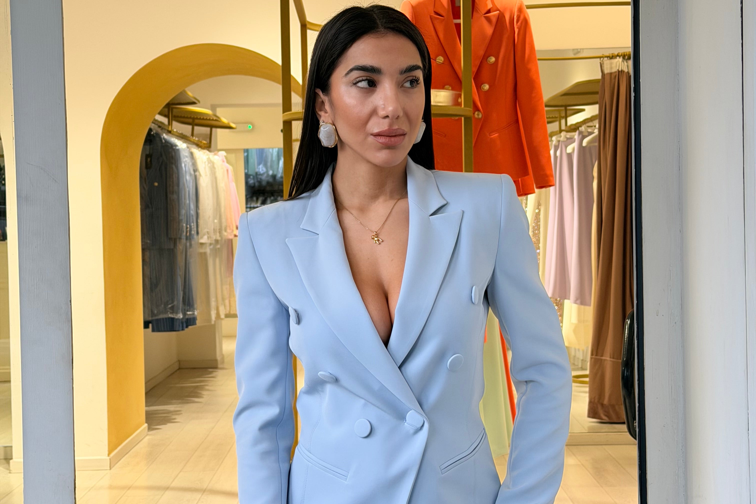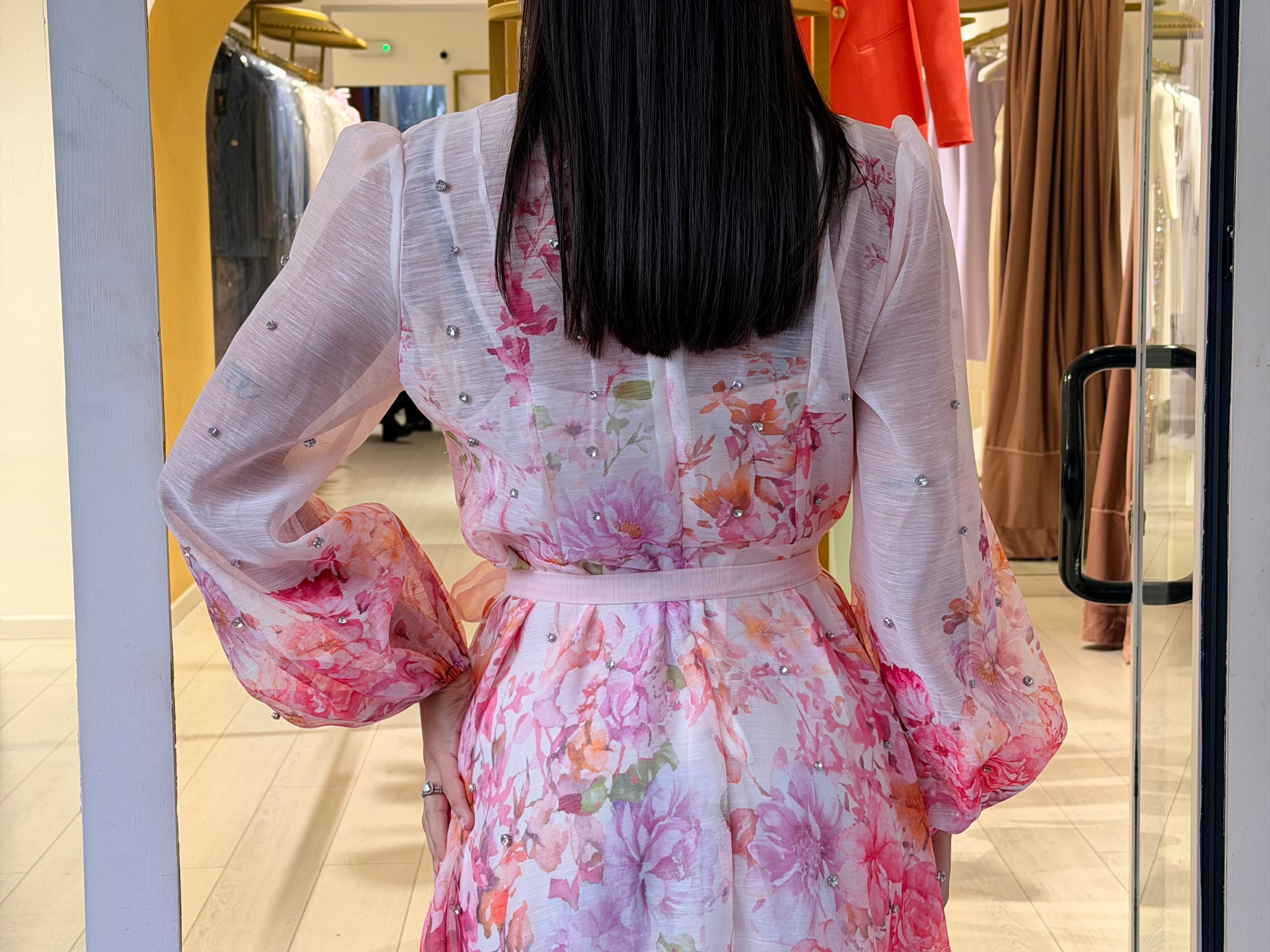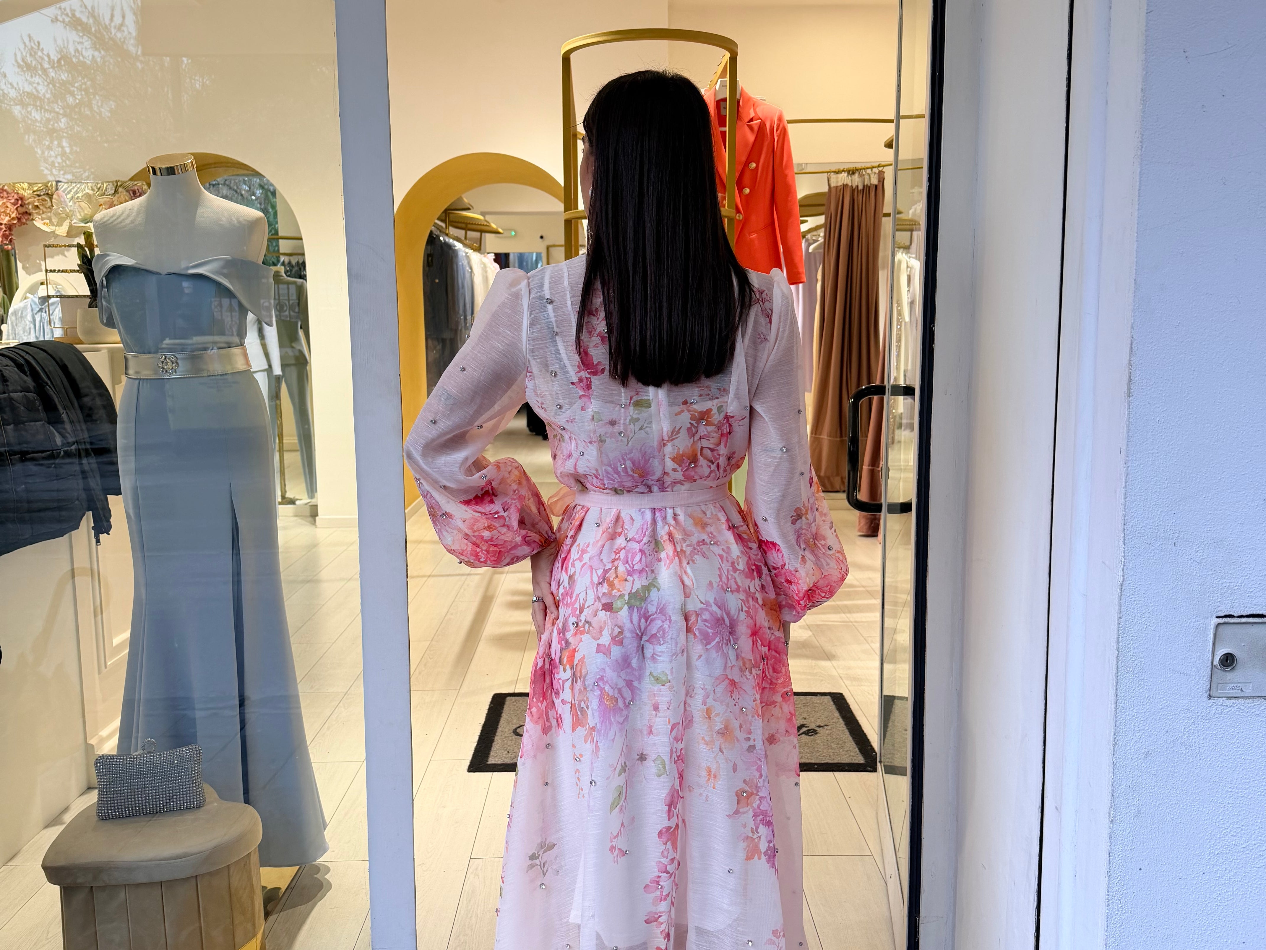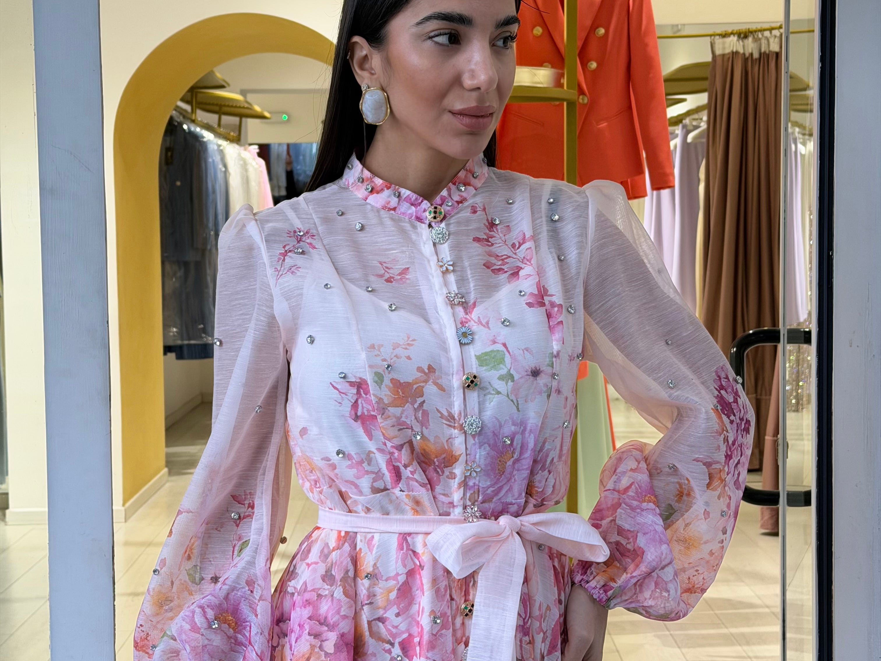 Presentano chiusura frontale con bottoni un colletto coreano e a manica lunga a sbuffo! È accompagnato da una cintura in tessuto in coordinato Così da definire il punto vita
