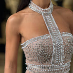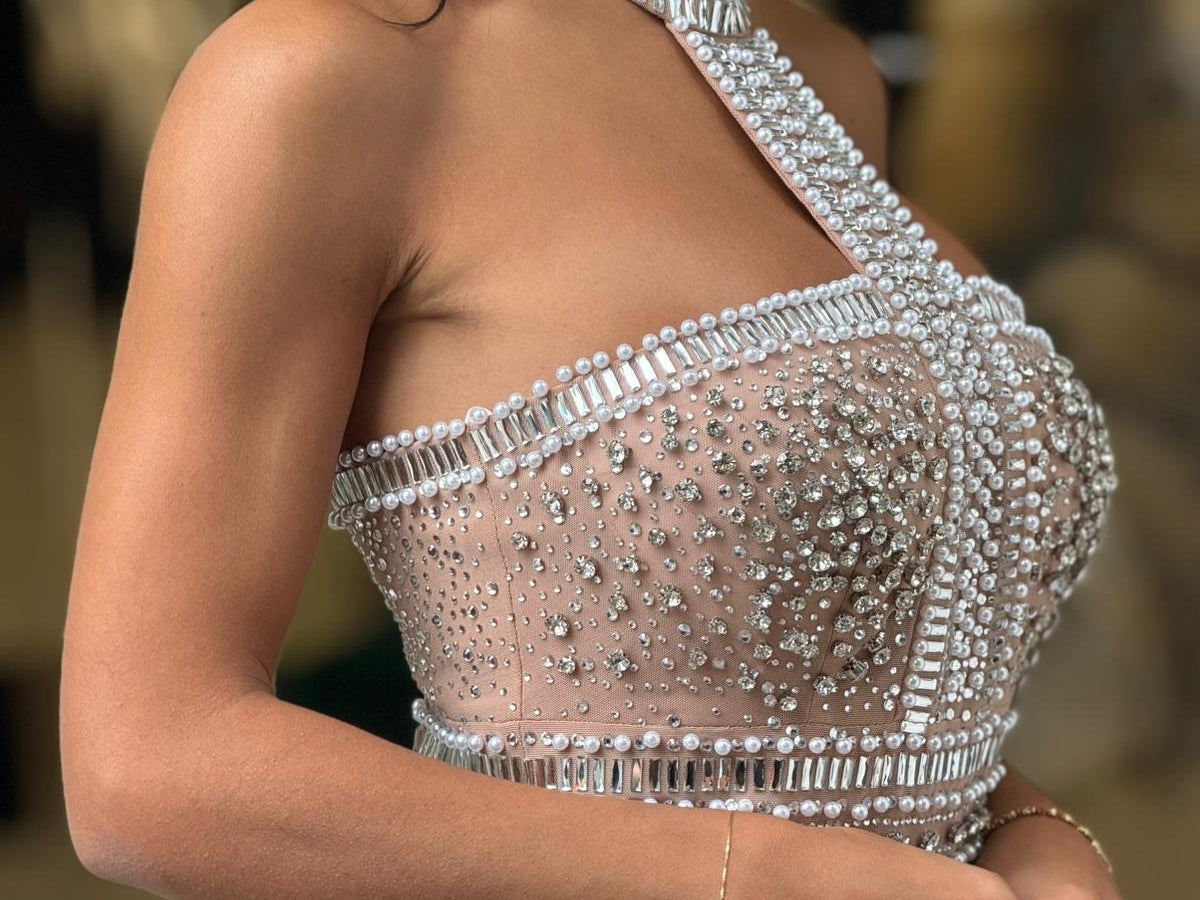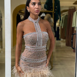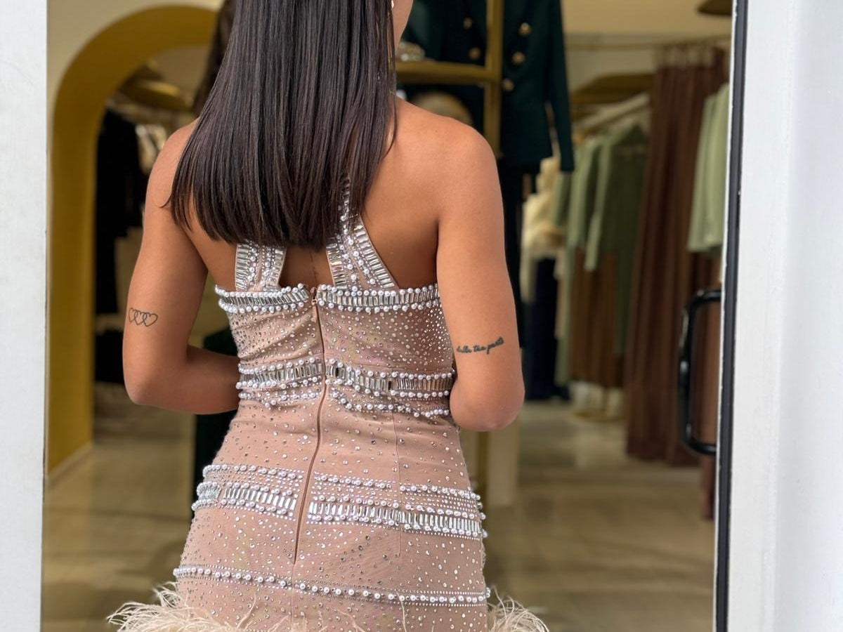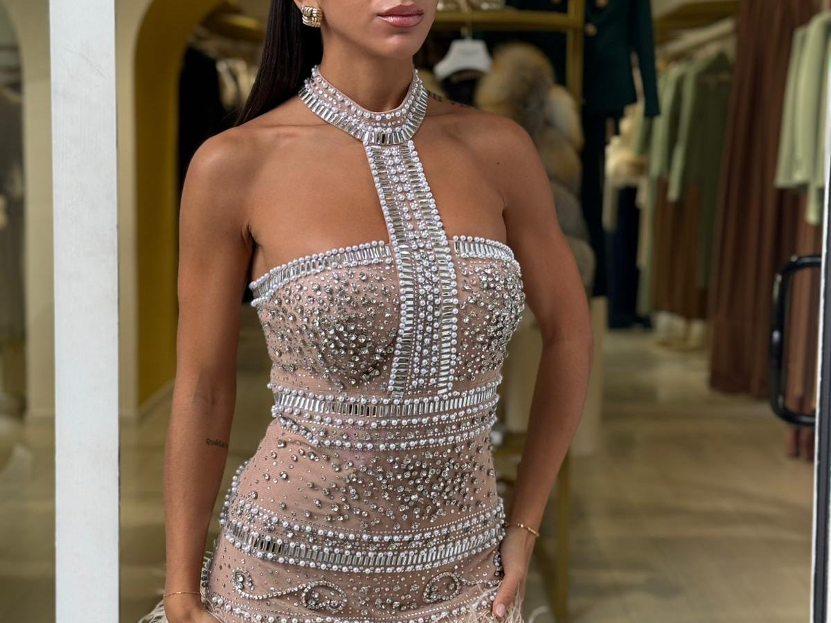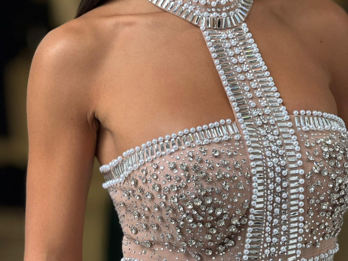 Mini dress gioiello con applicazioni di pietre e perle