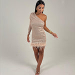 Mini Dress monospalla a tubino interamente in paillettes