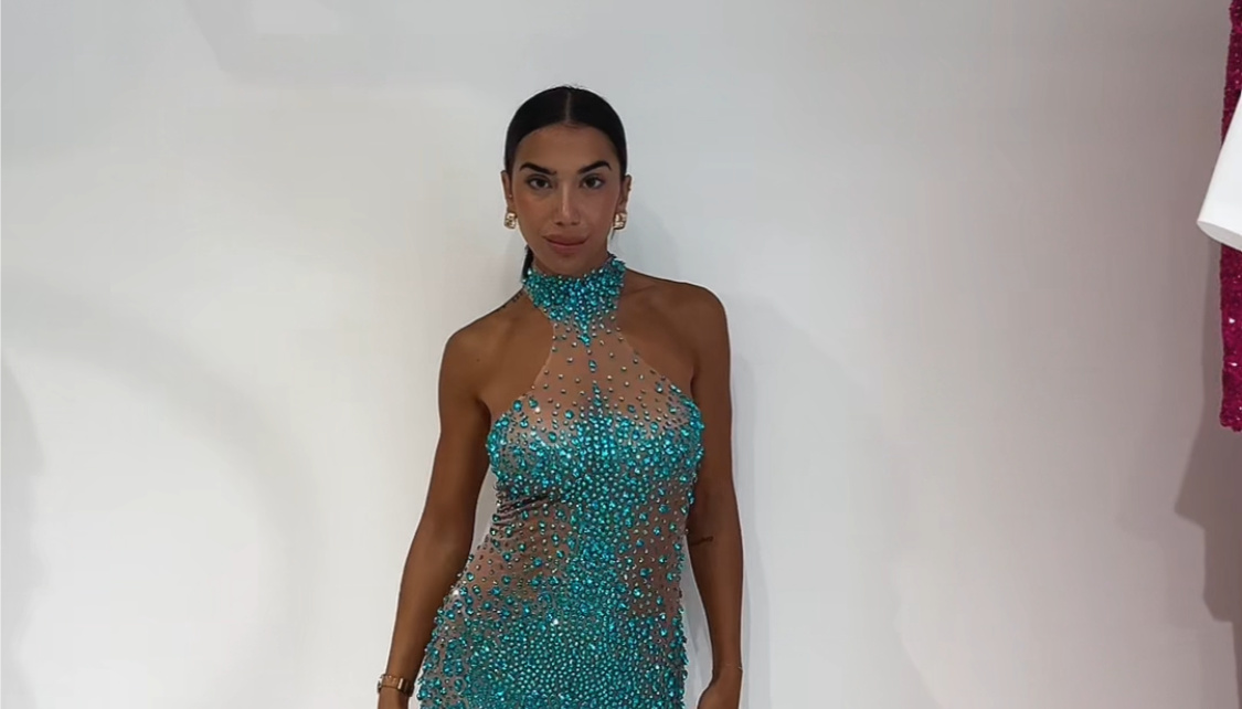 Abito nude con pietre gioiello (spedito in 7 giorni)