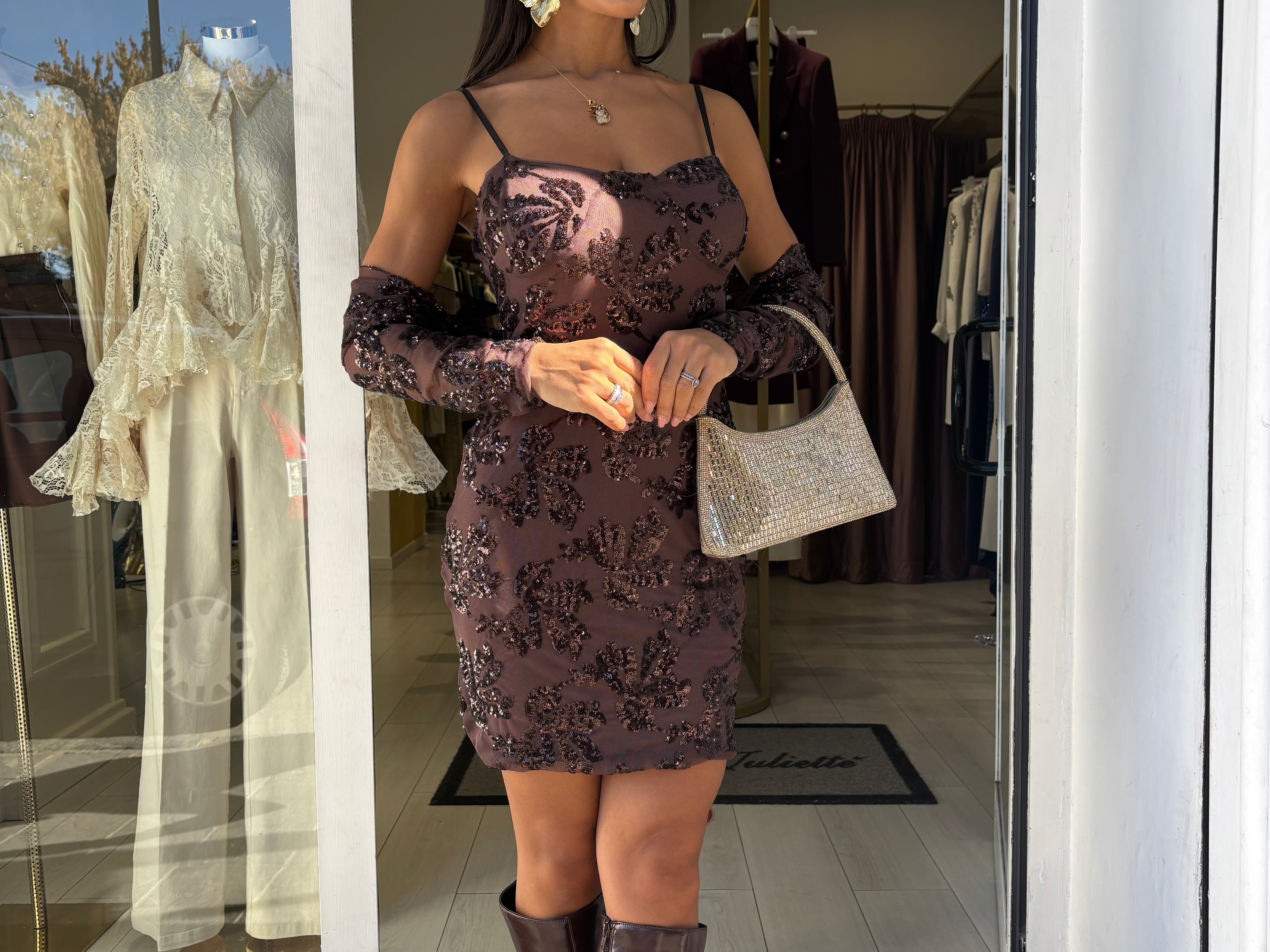 Mini Dress con applicazioni di paillettes
