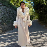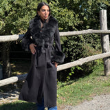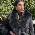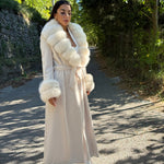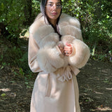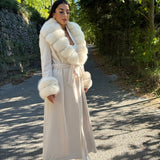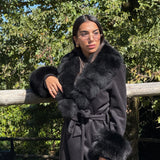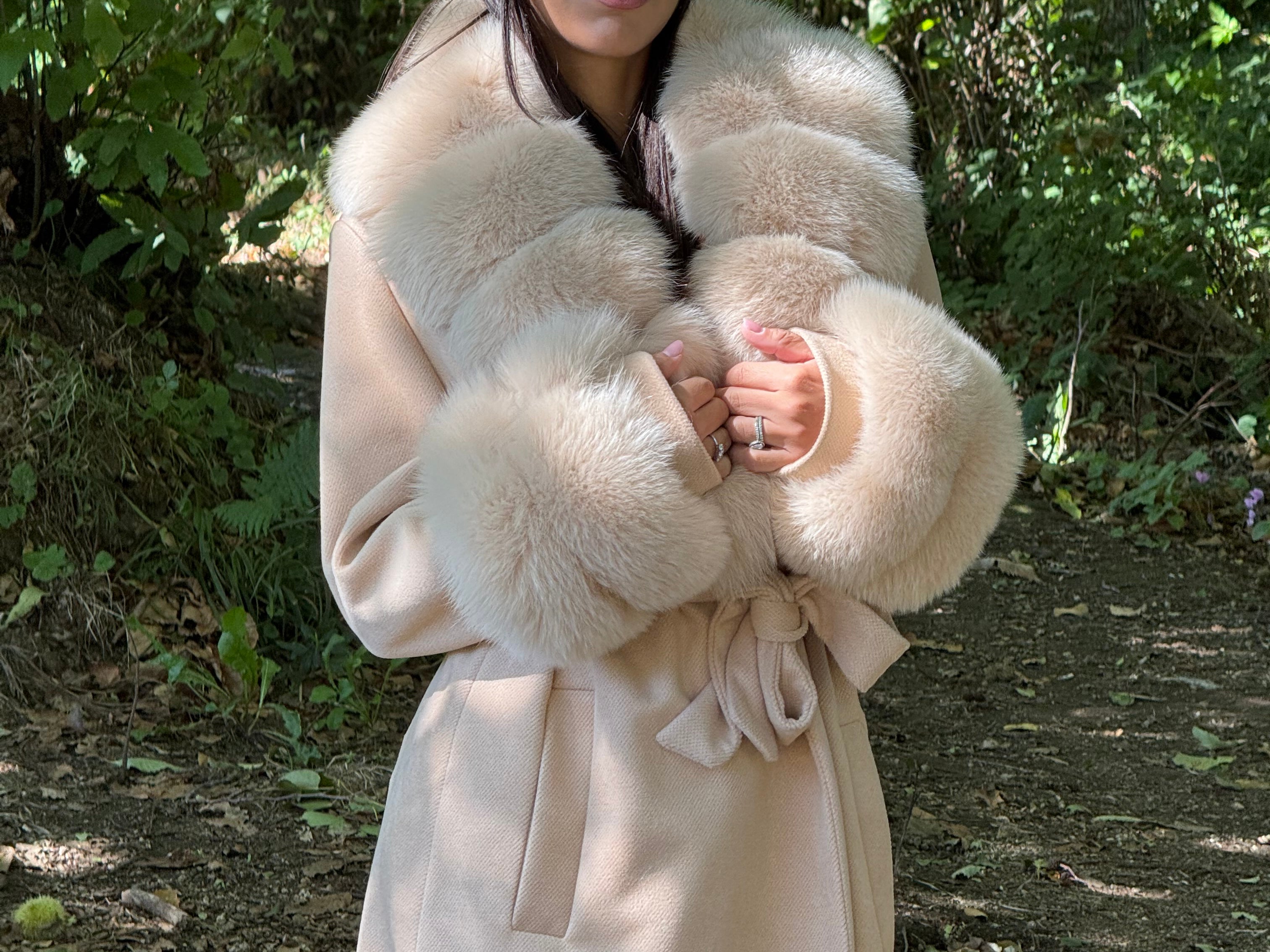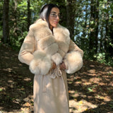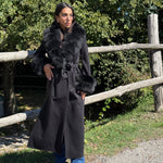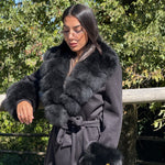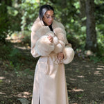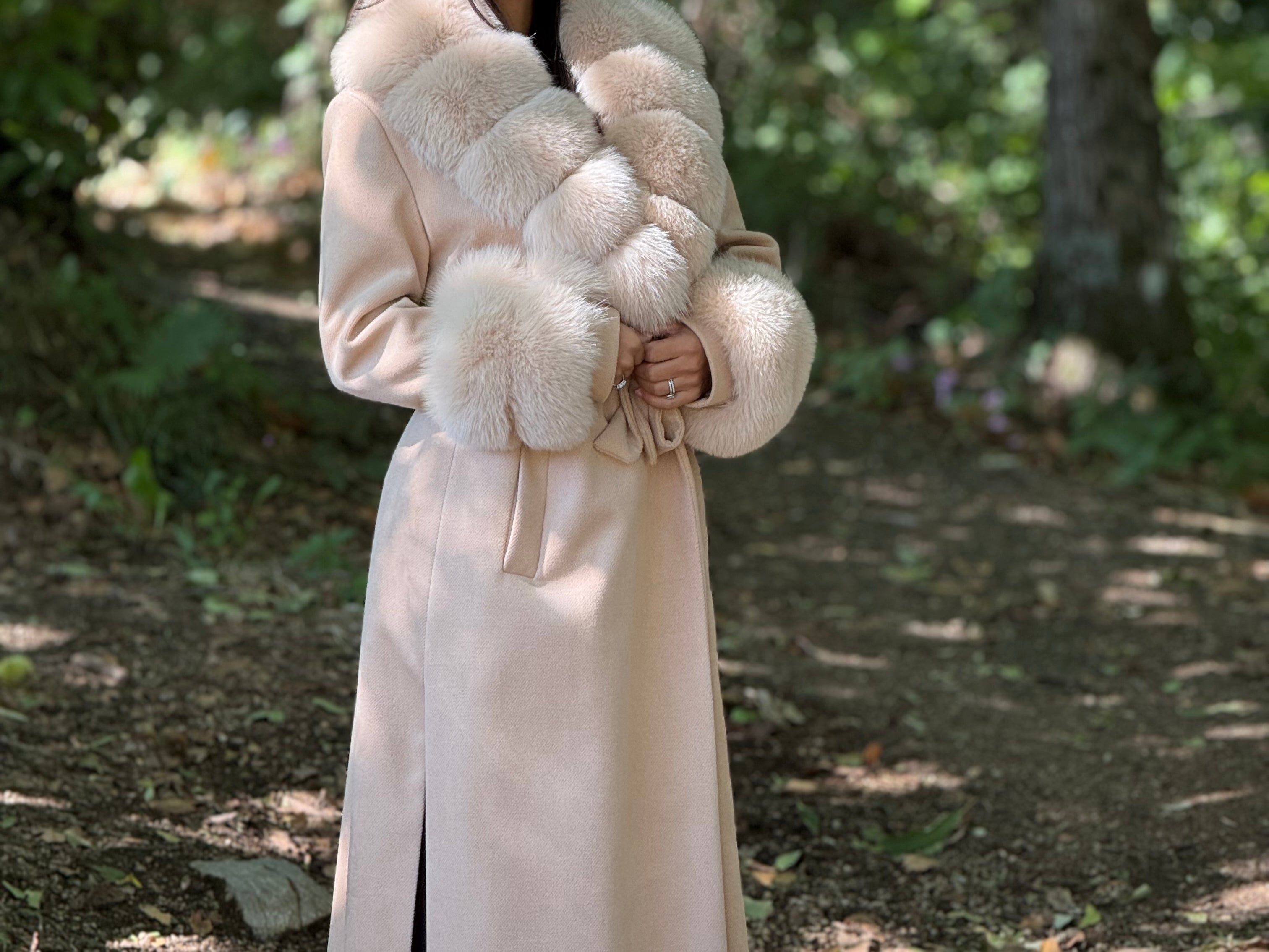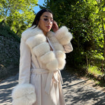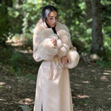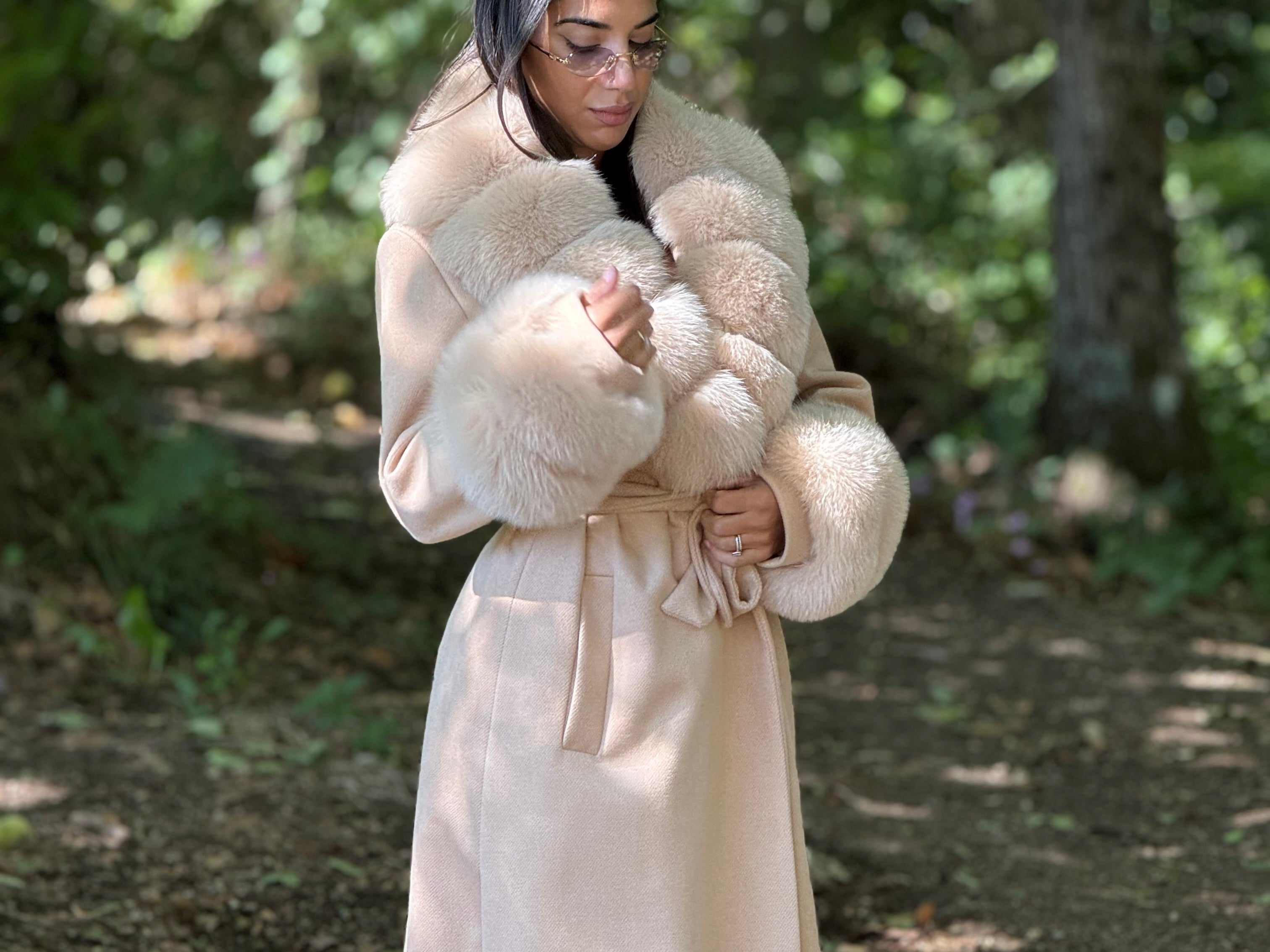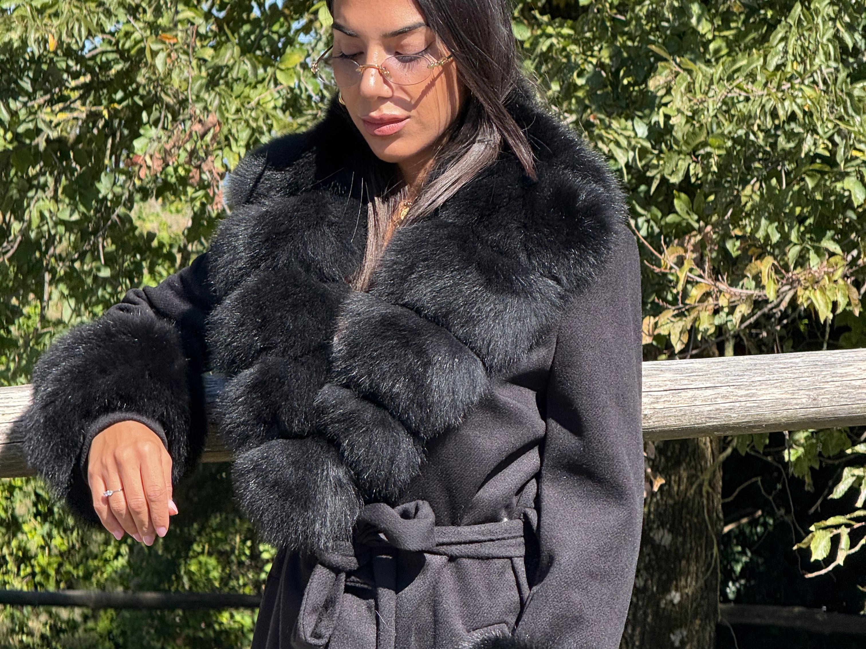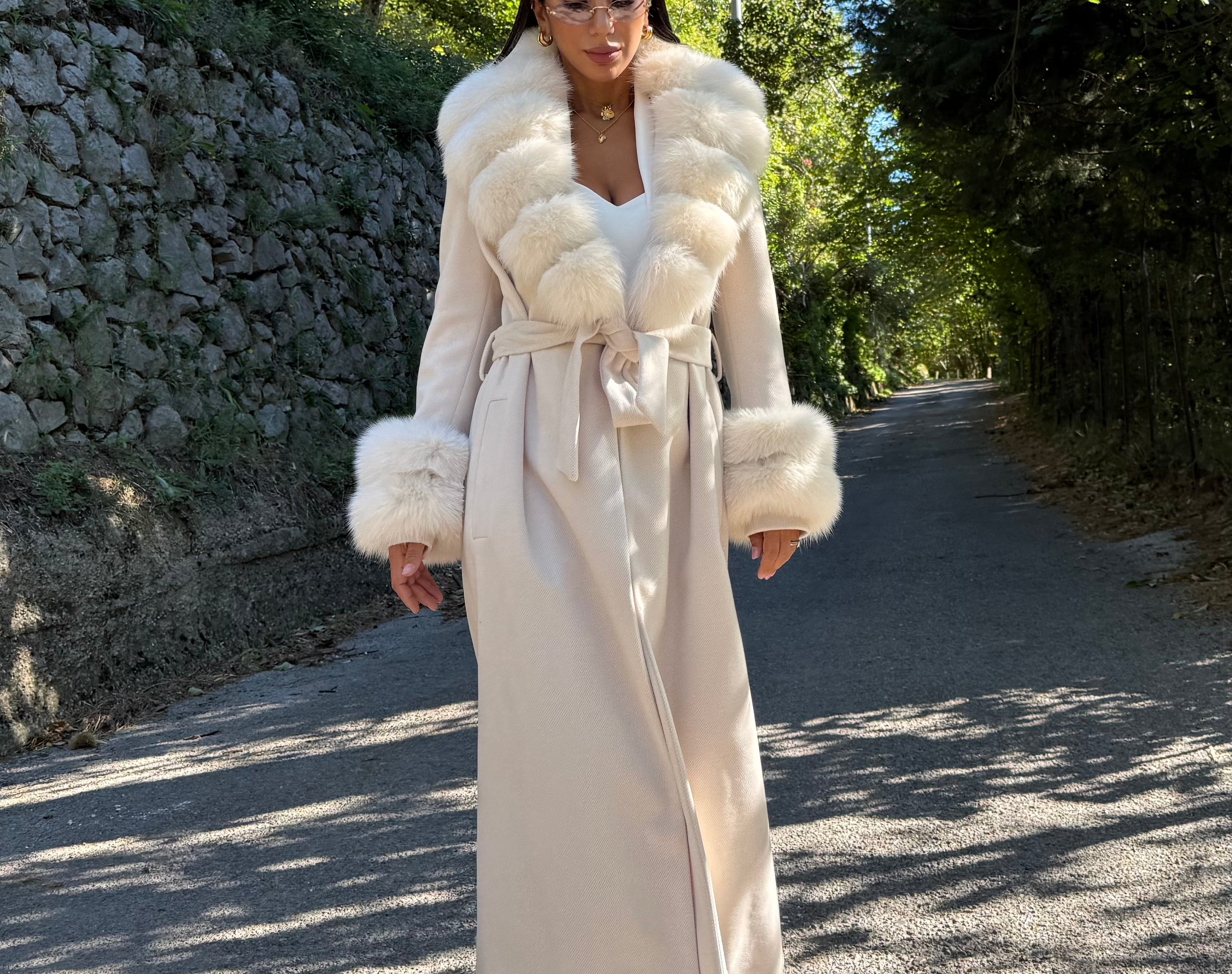 Elegante cappotto lungo con collo e polsini in vera Volpe.