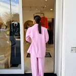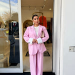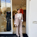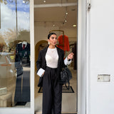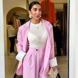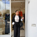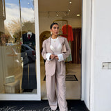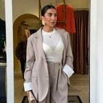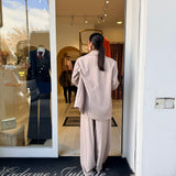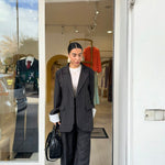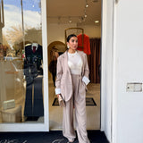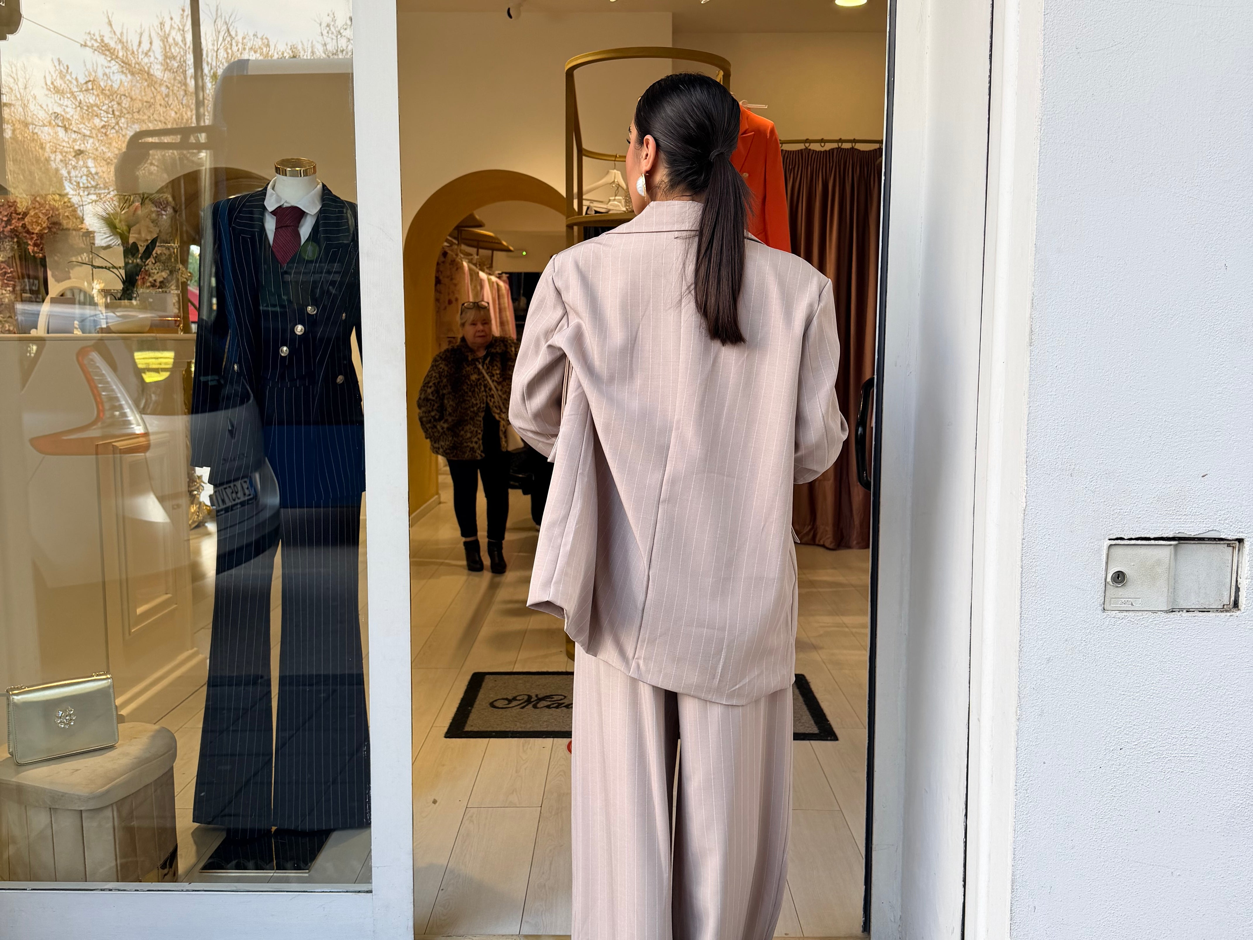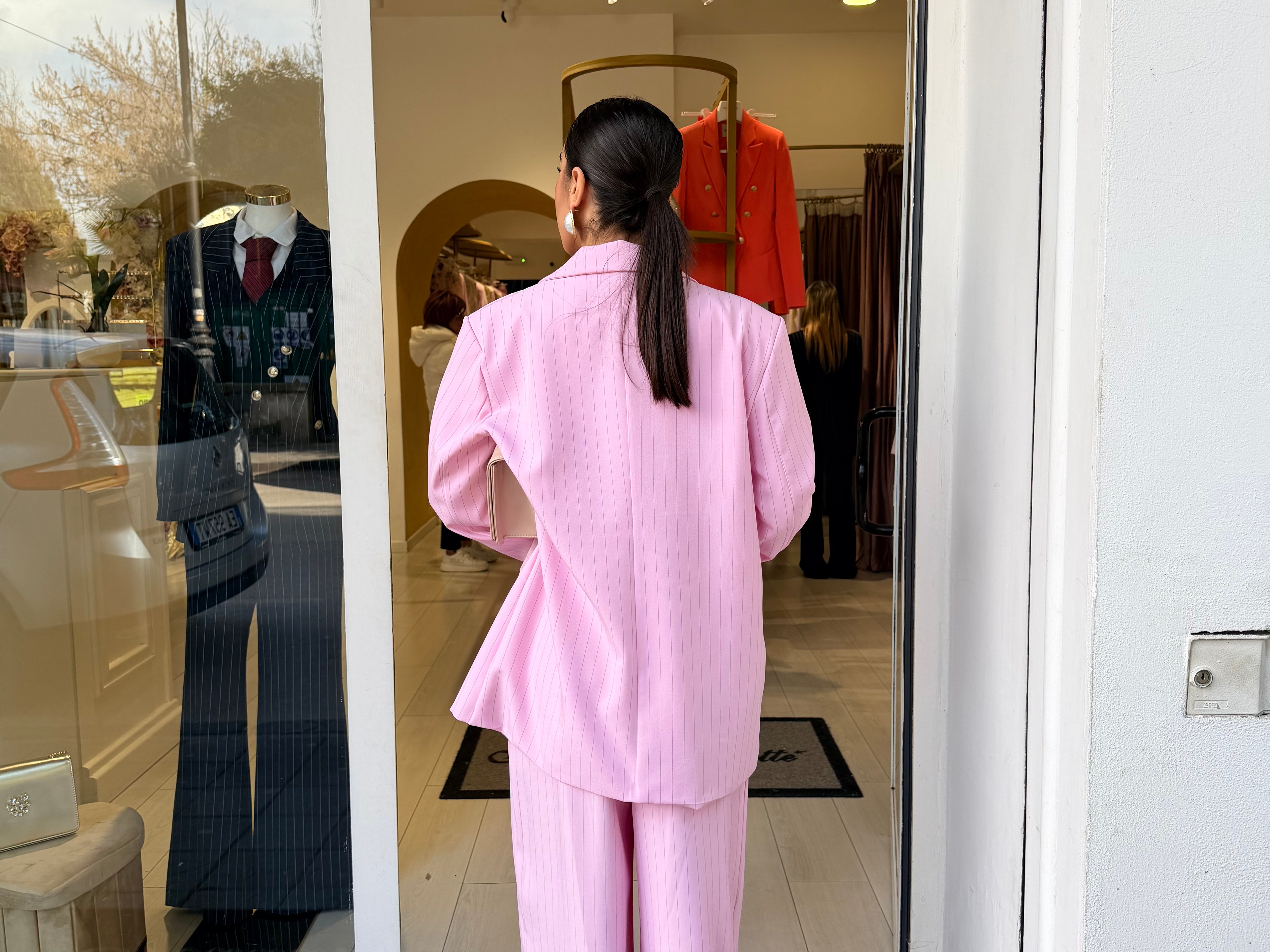 tailleur composto da pantalone con elastico in vita molto comodo e giacca lunga con maniche risvolte