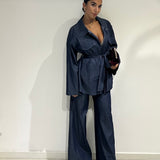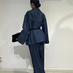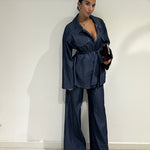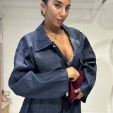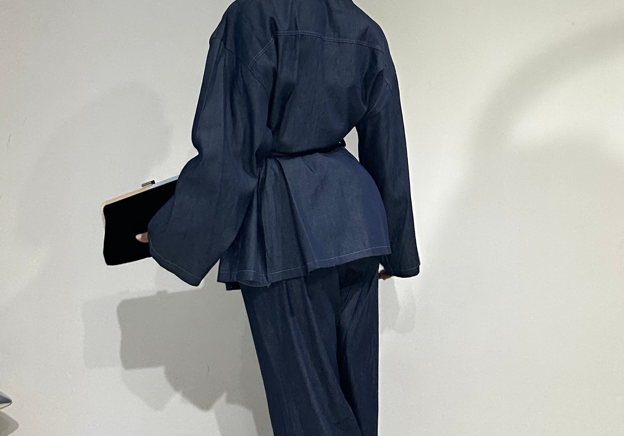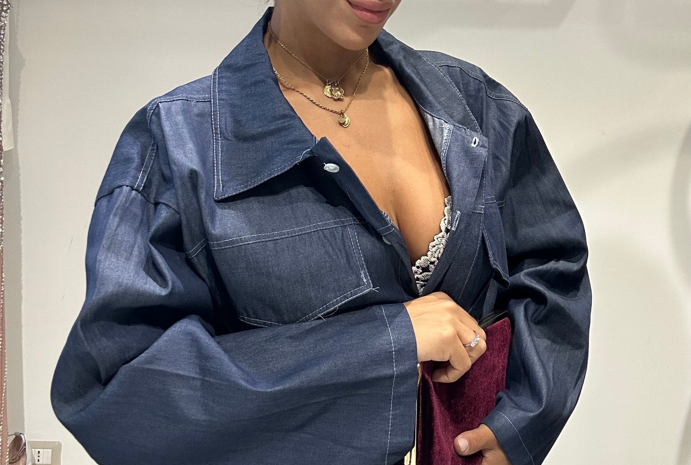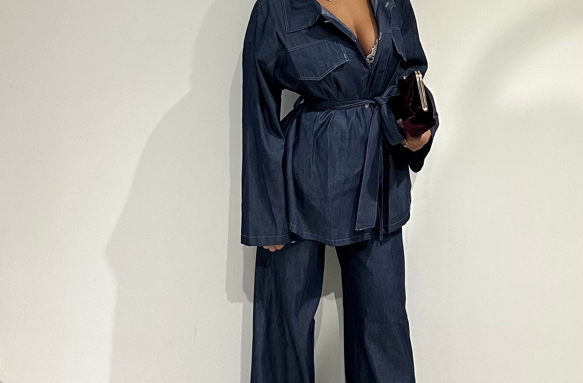 Coordinato in Denim composto da giacca modello over con cinturino in vita