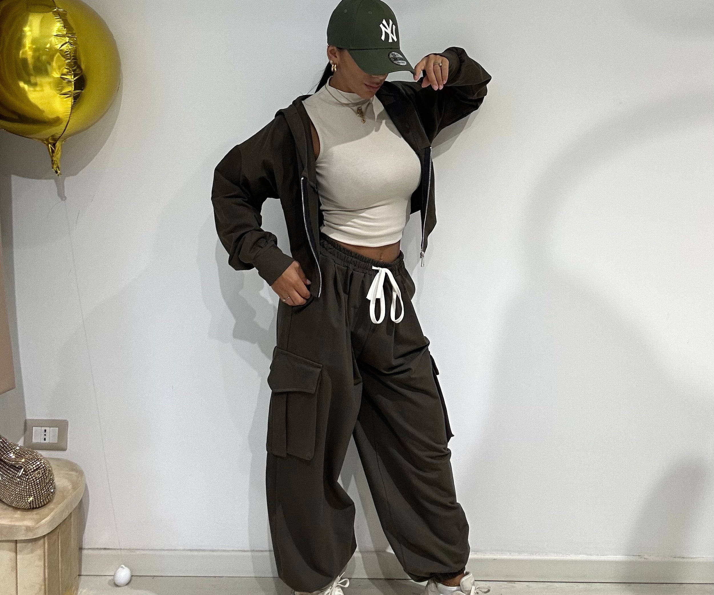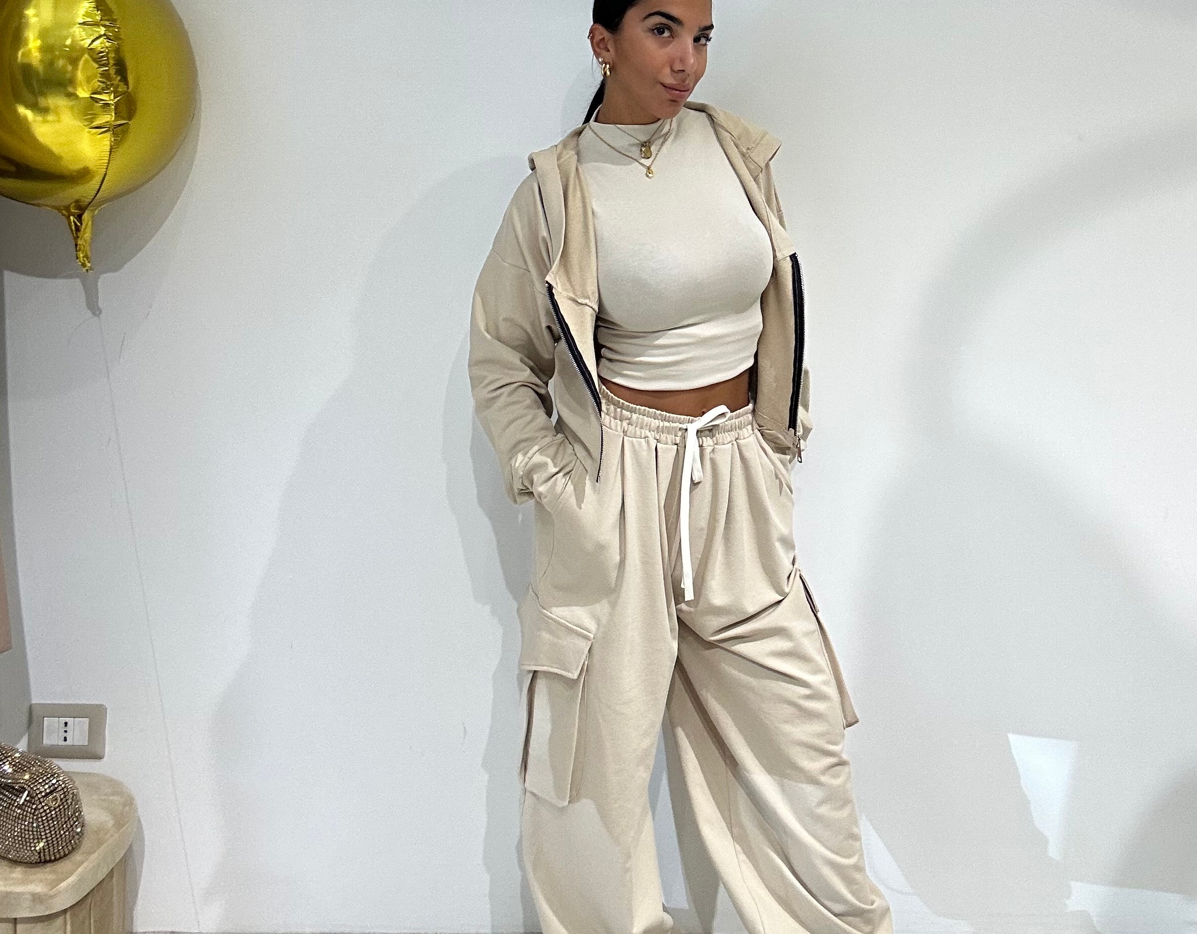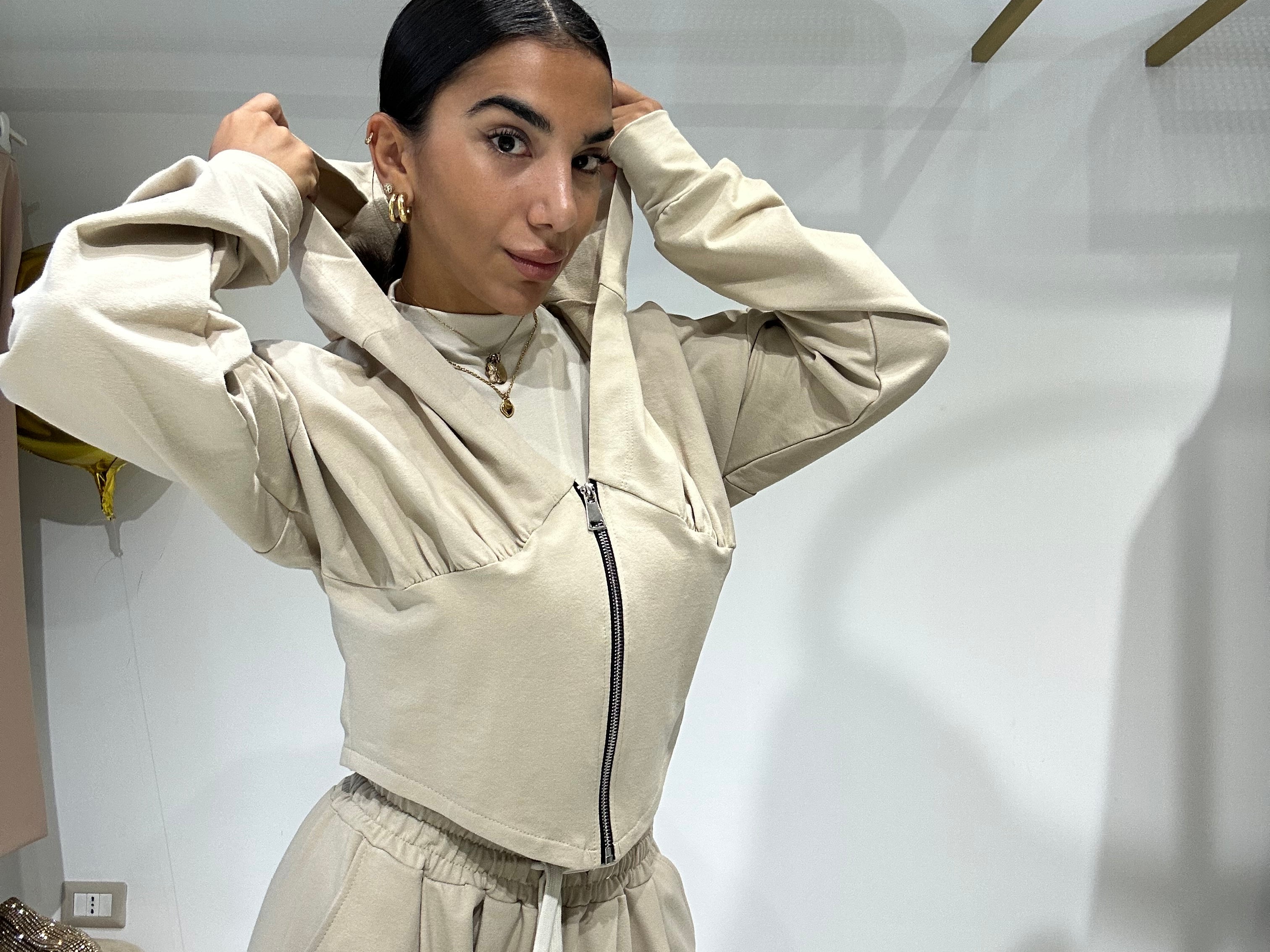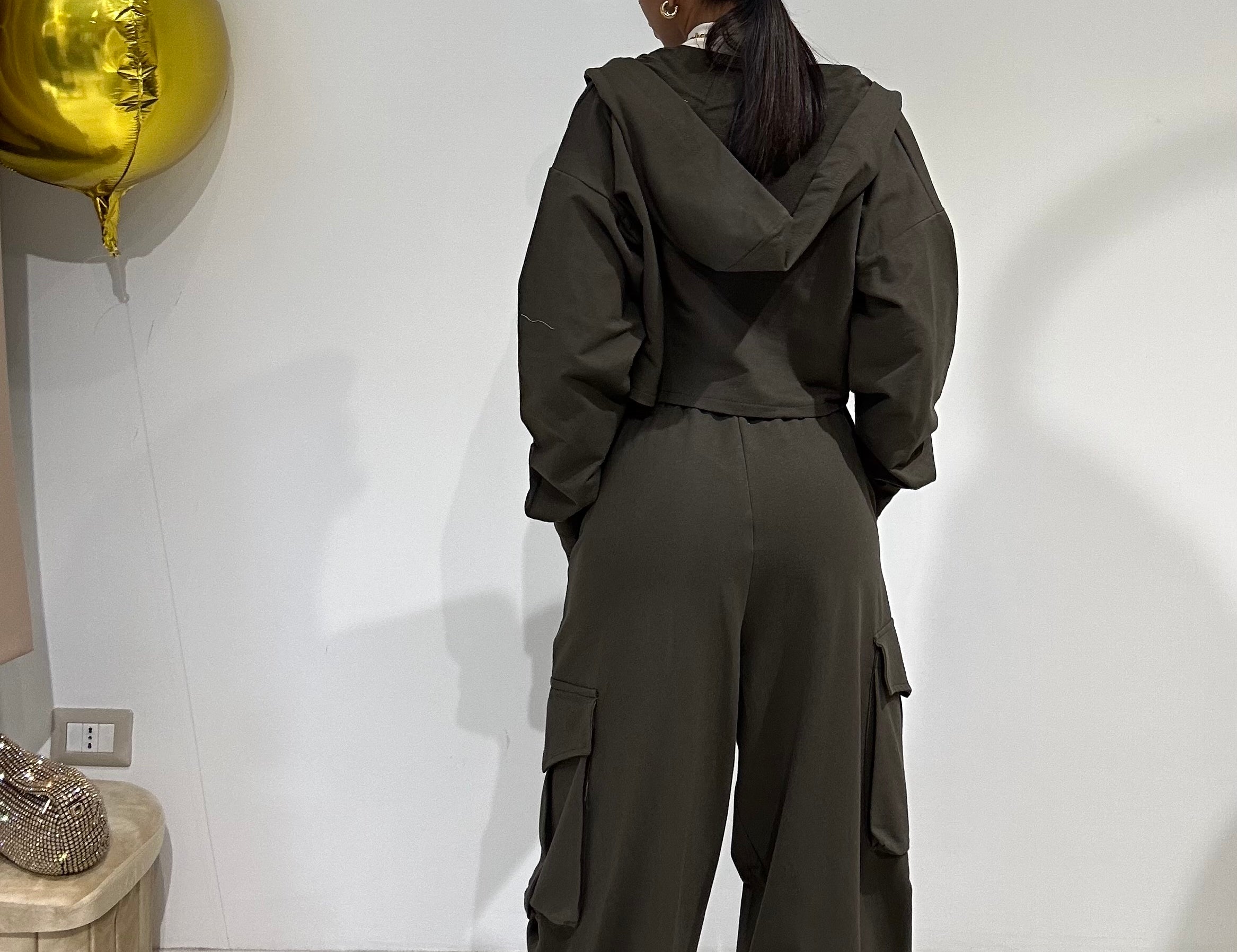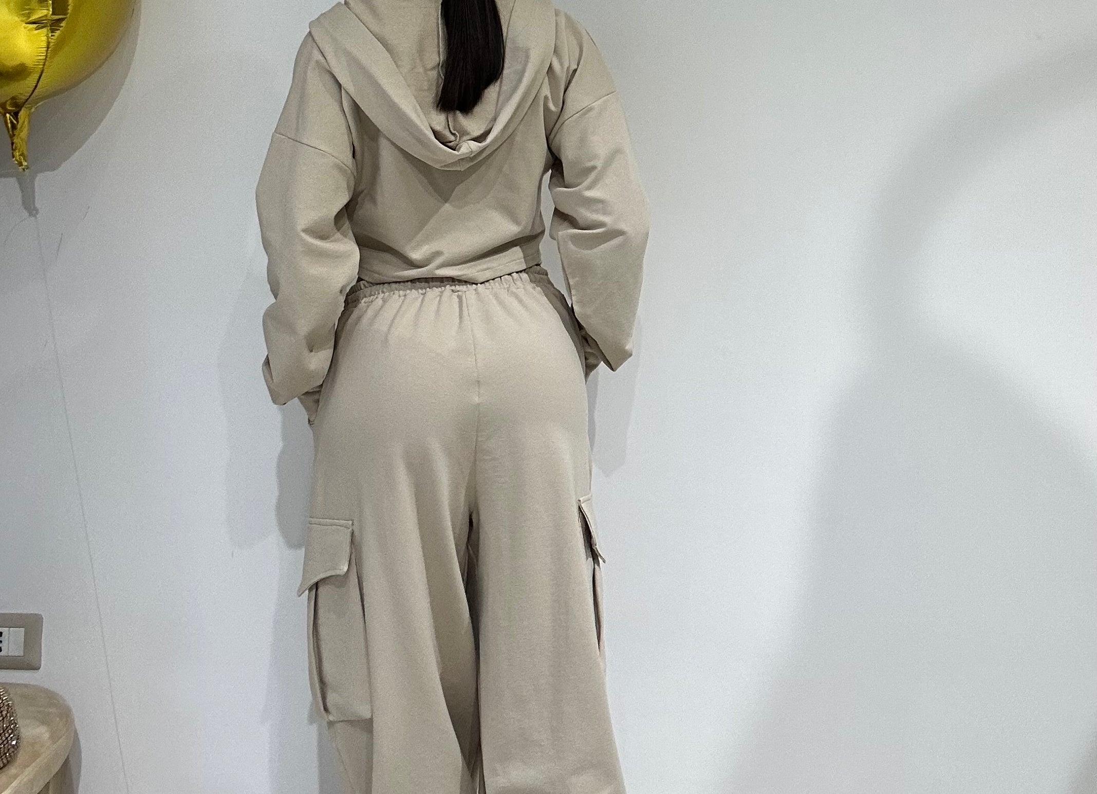Completo in tuta composto da felpa con cappuccio , pantalone modello ballon
