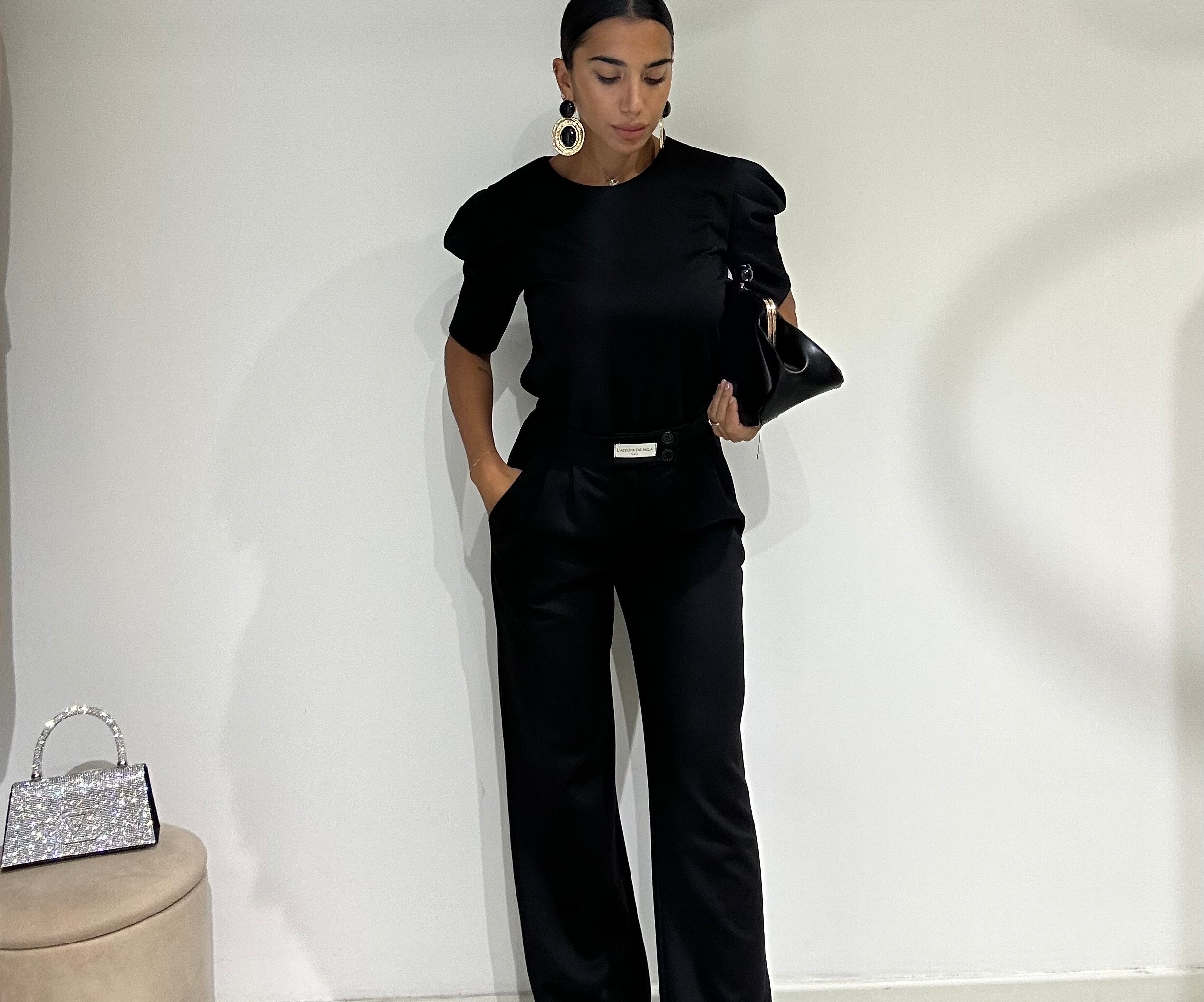 Completo due pezzi composto da maglioncino manica corta a sbuffo