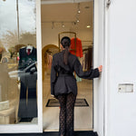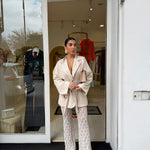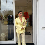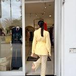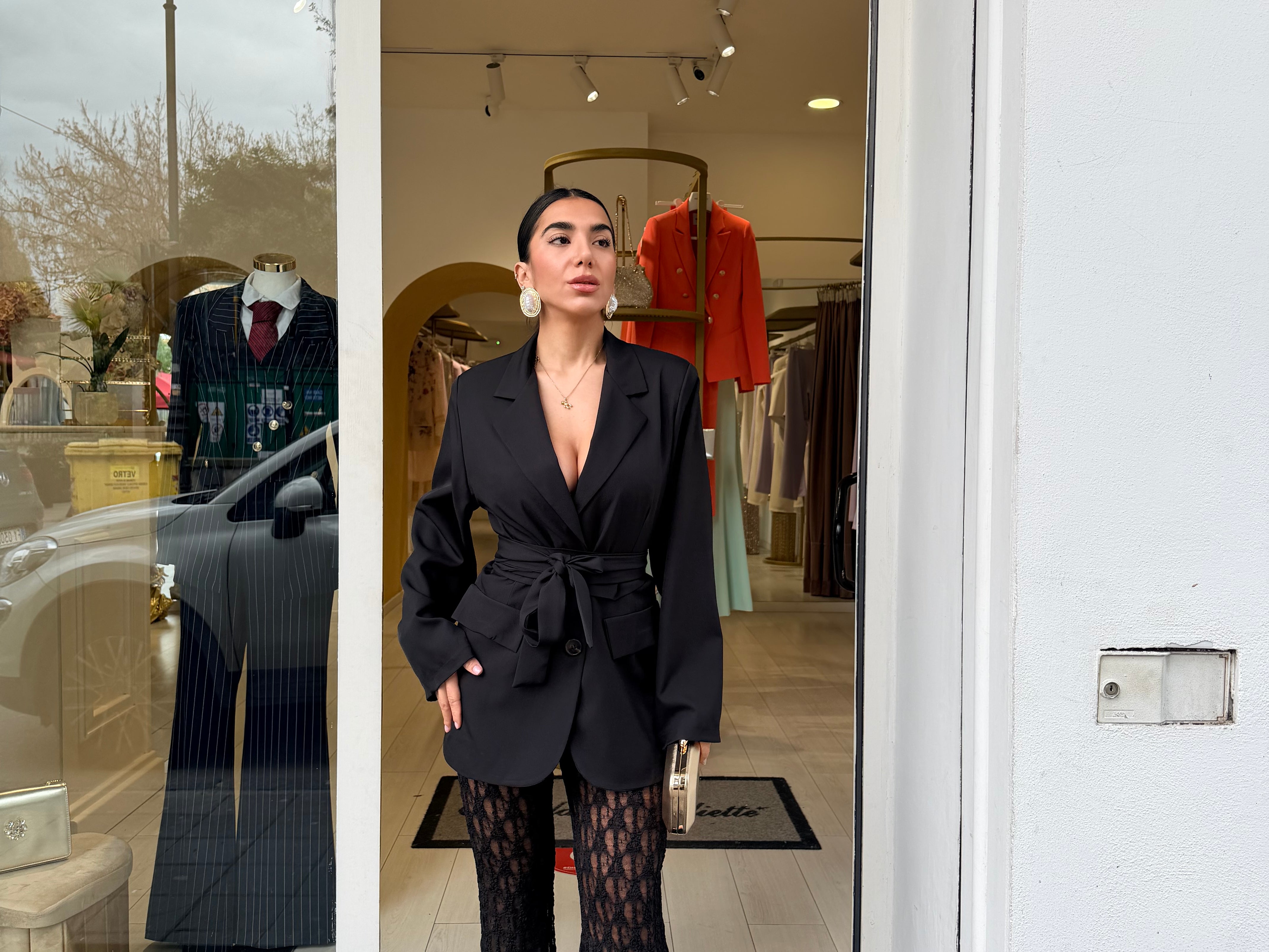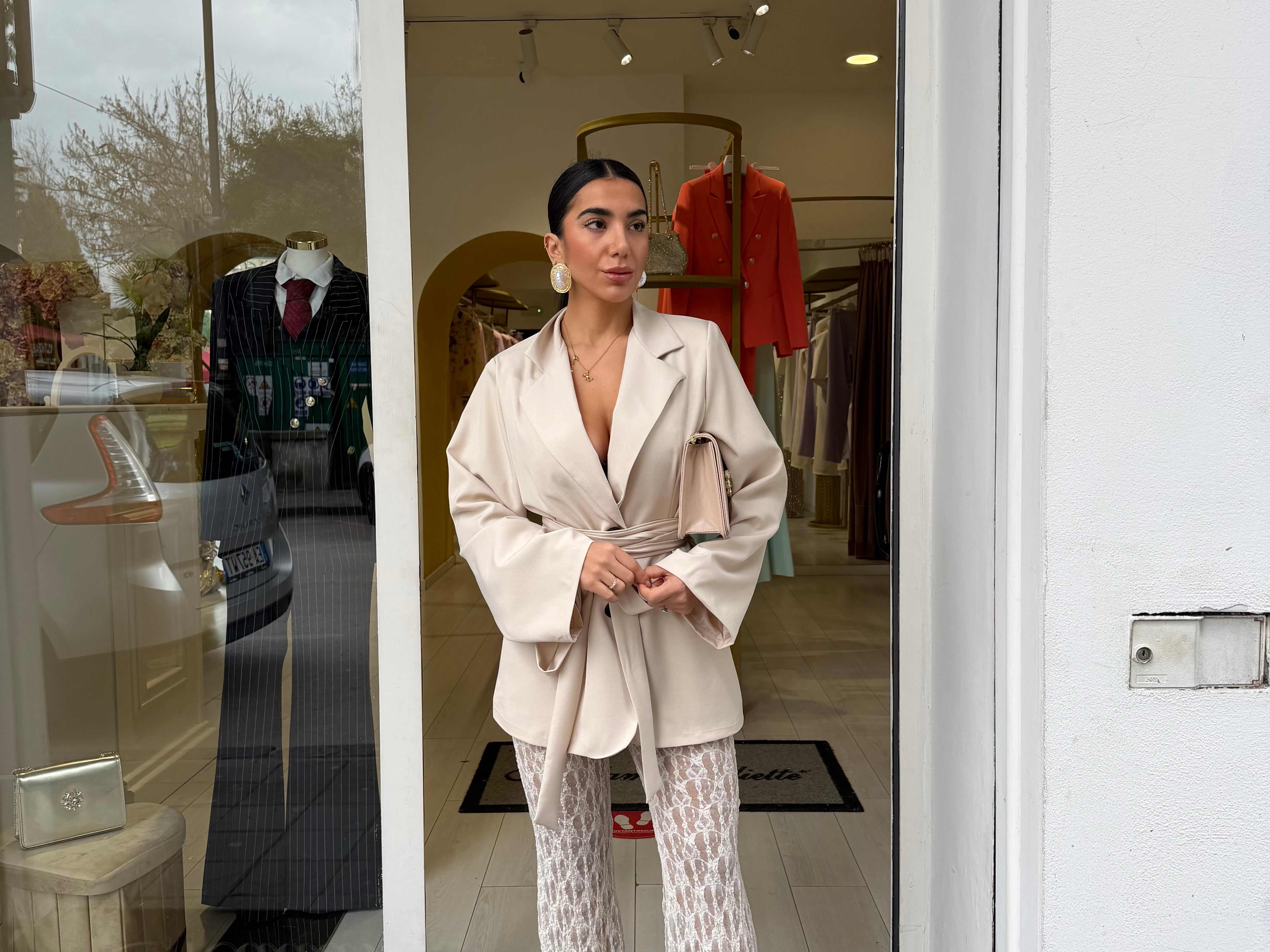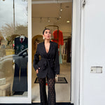 completo composto da un blazer strutturato e pantaloni in pizzo