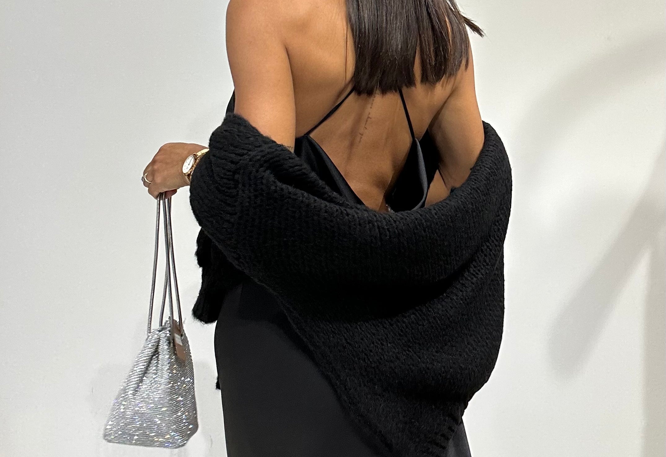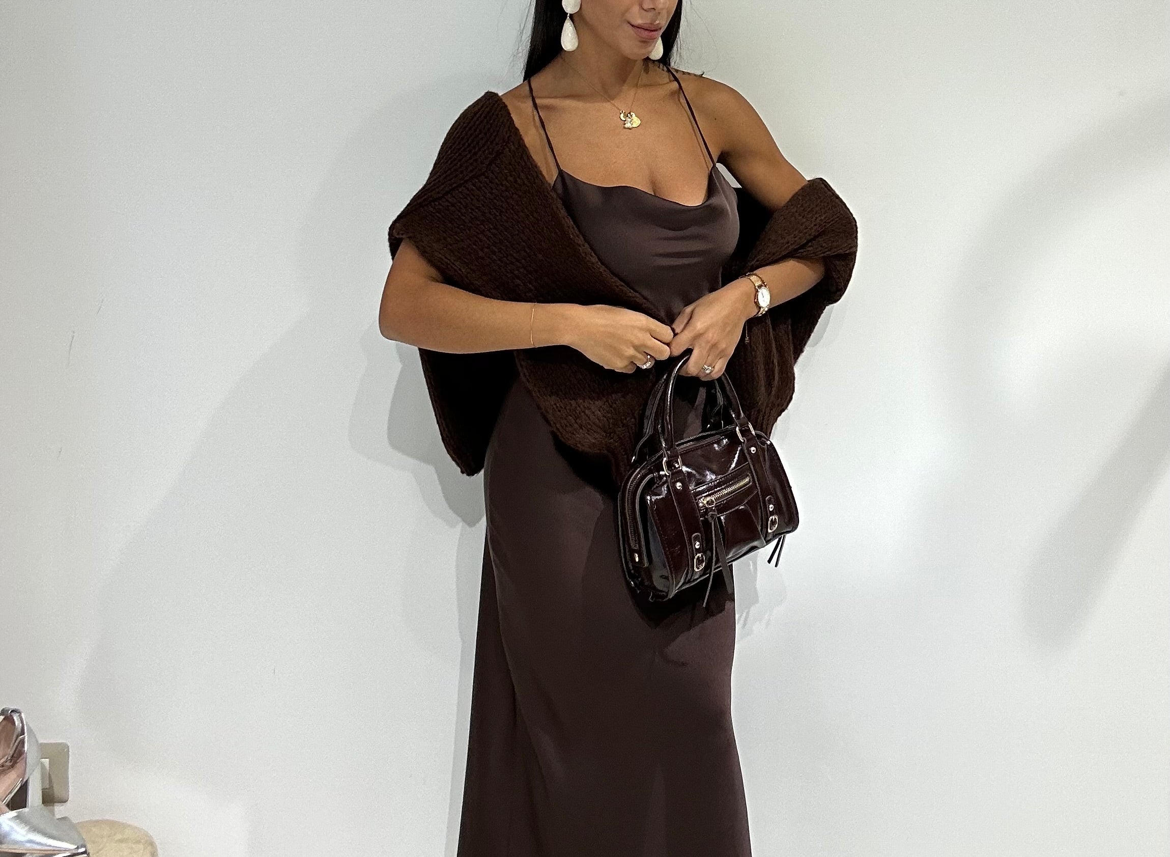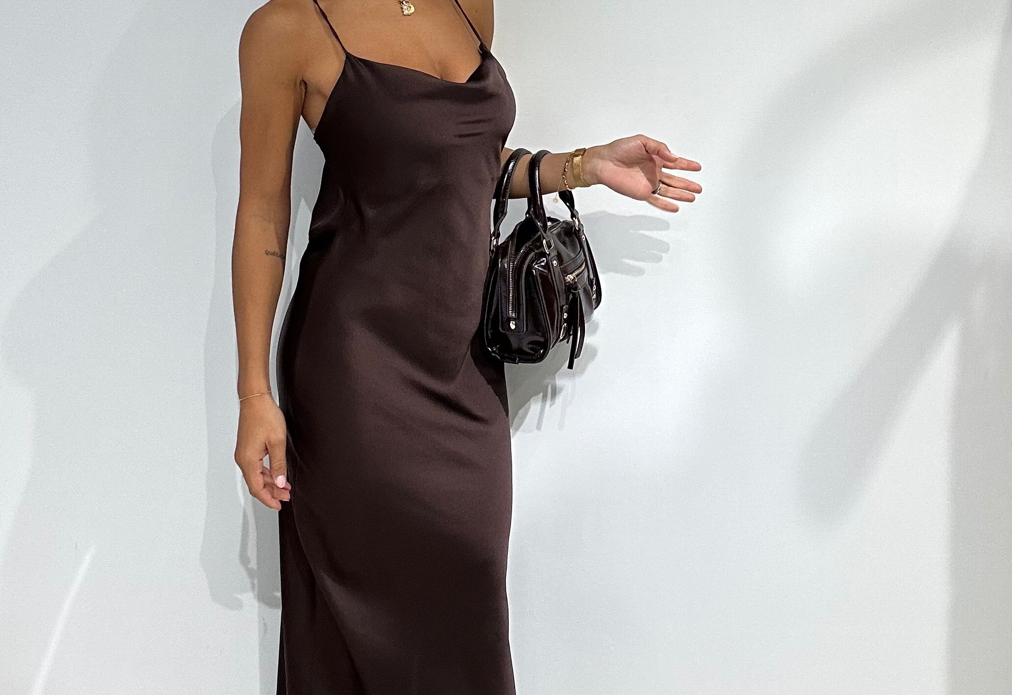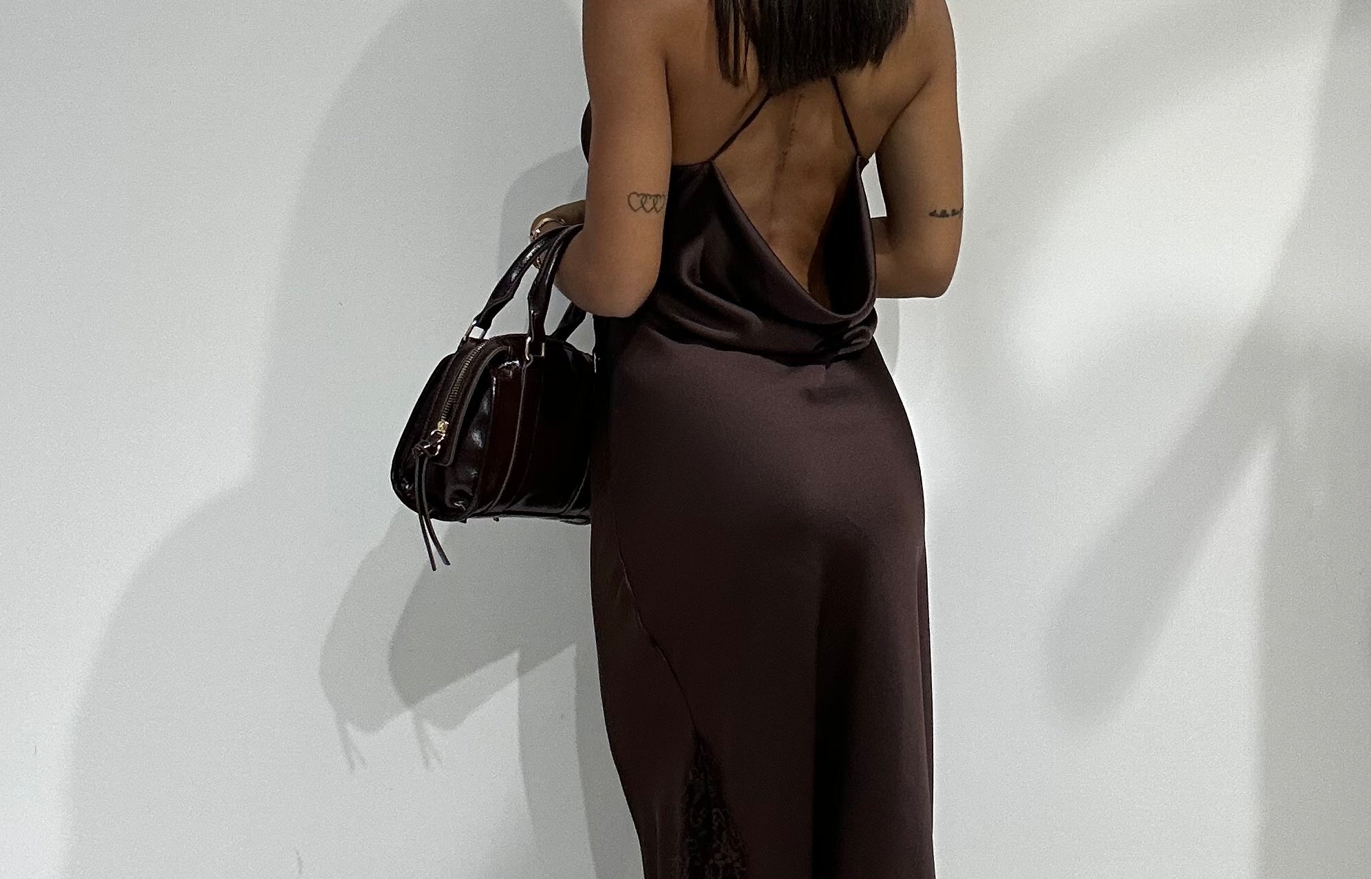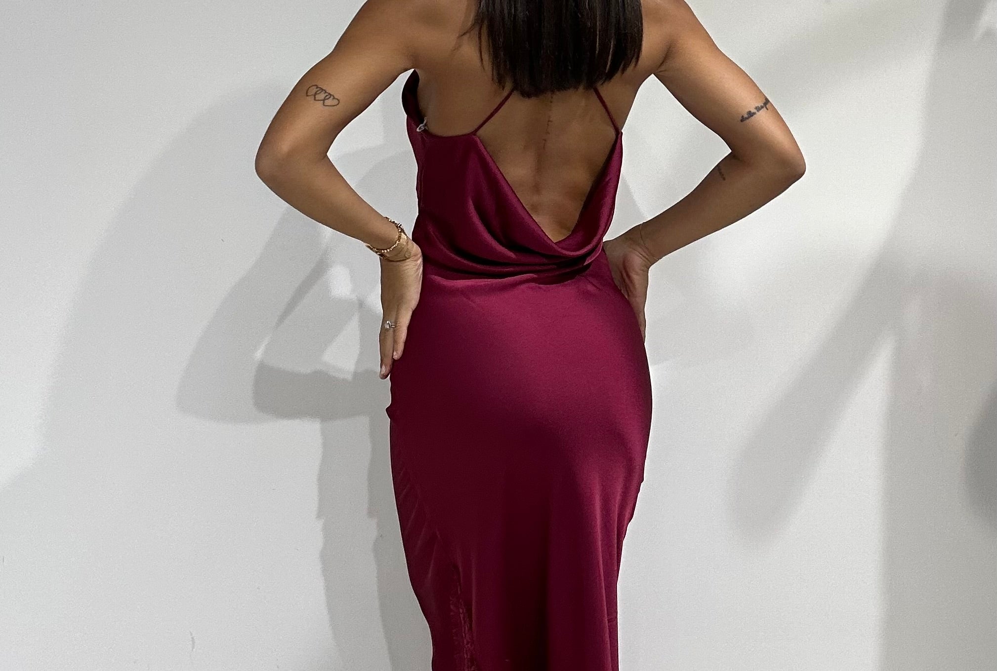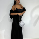 Completo composto da abitino lungo in raso con inserti in pizzo sull’orlo