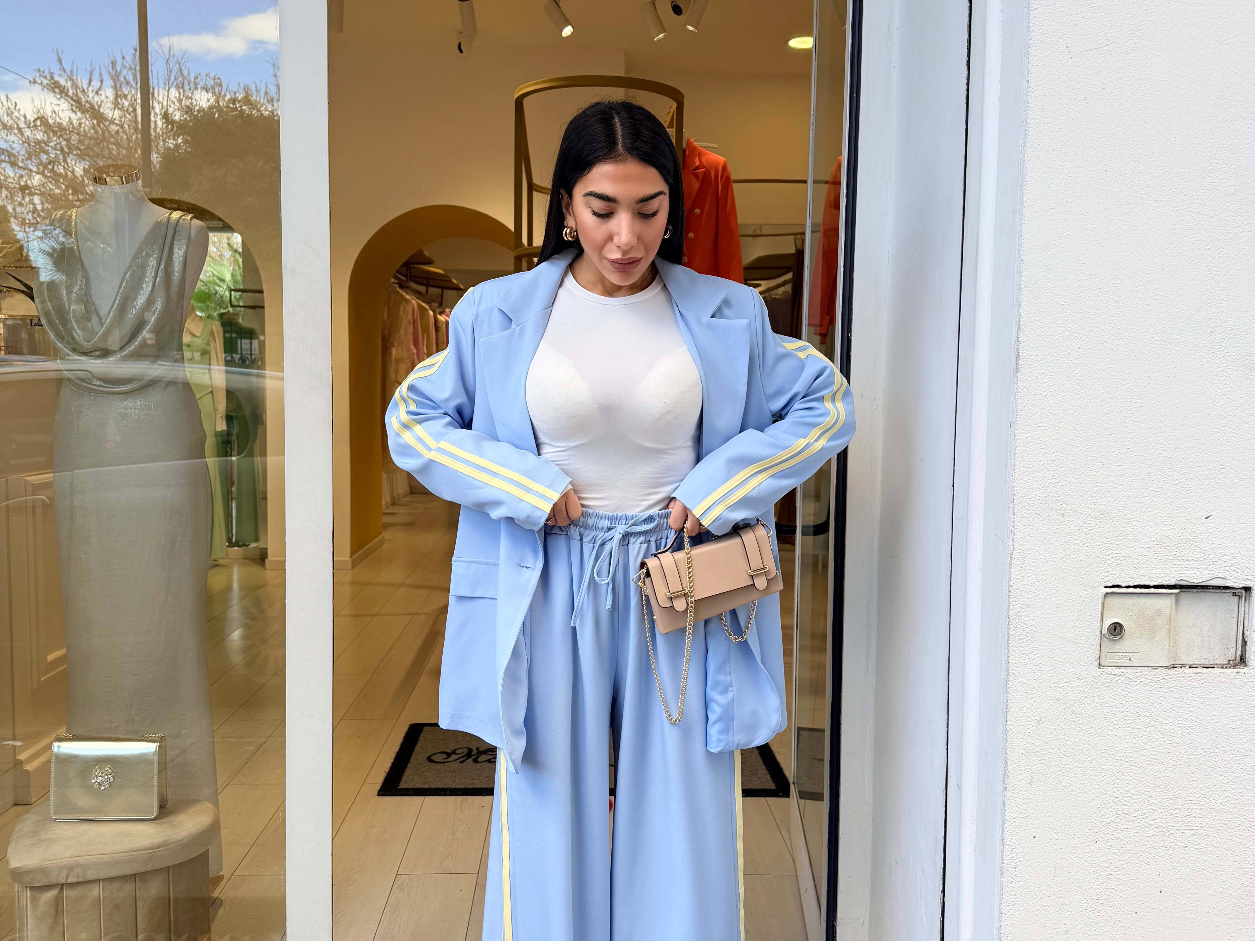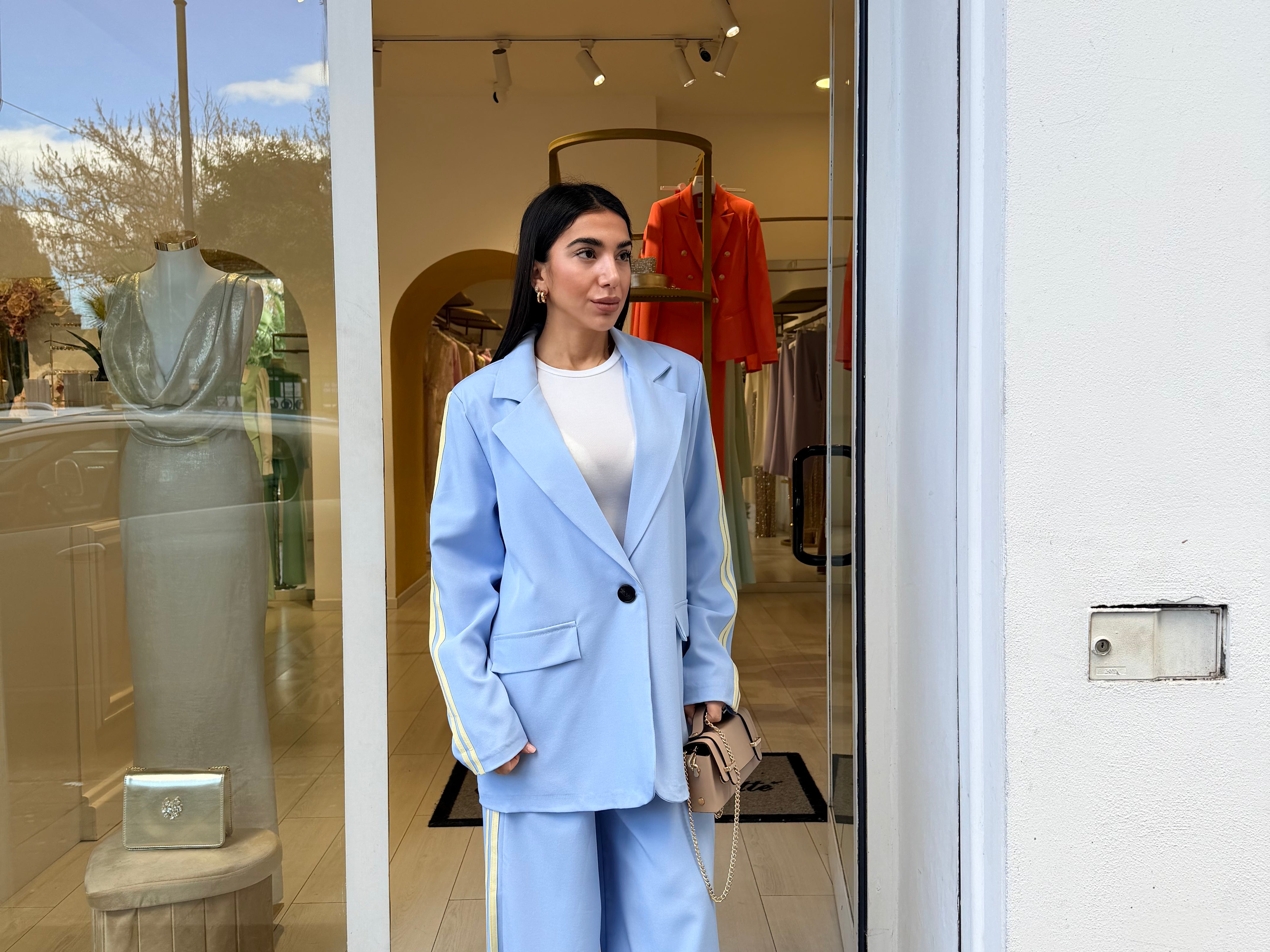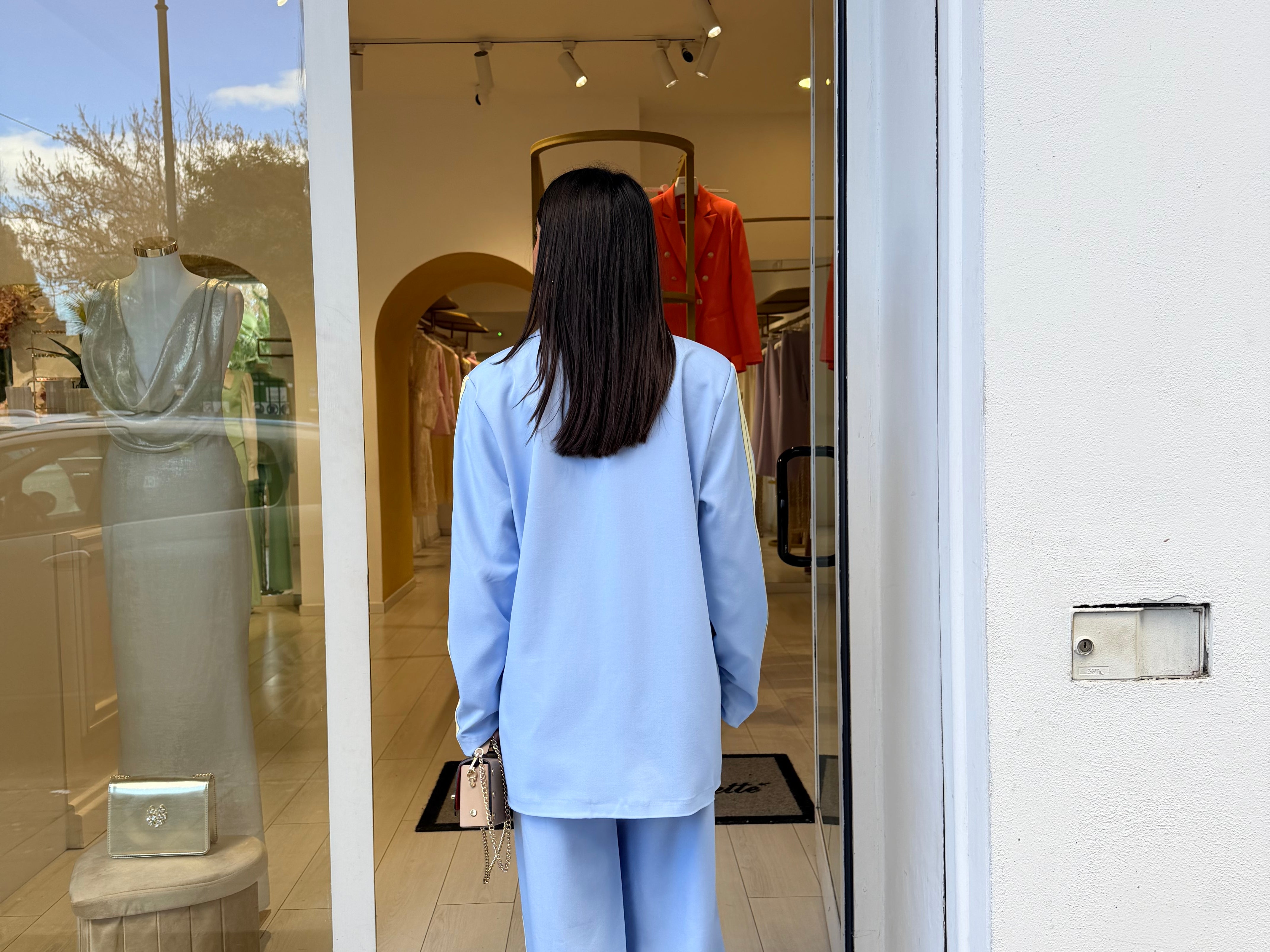 Completo composto da blazer oversize e pantaloni coordinati a palazzo