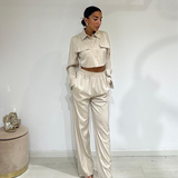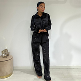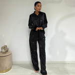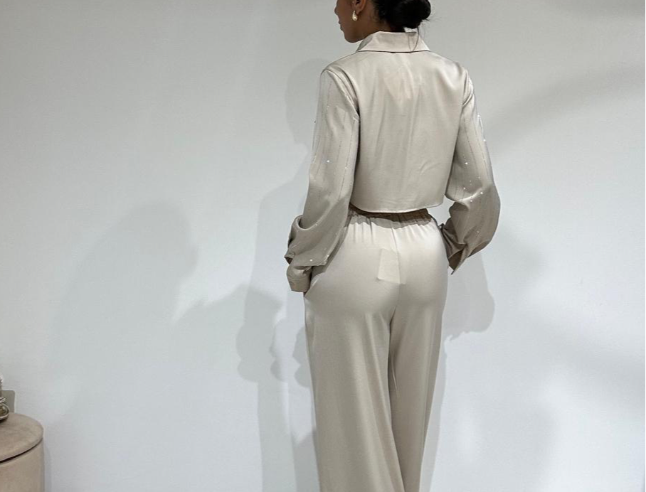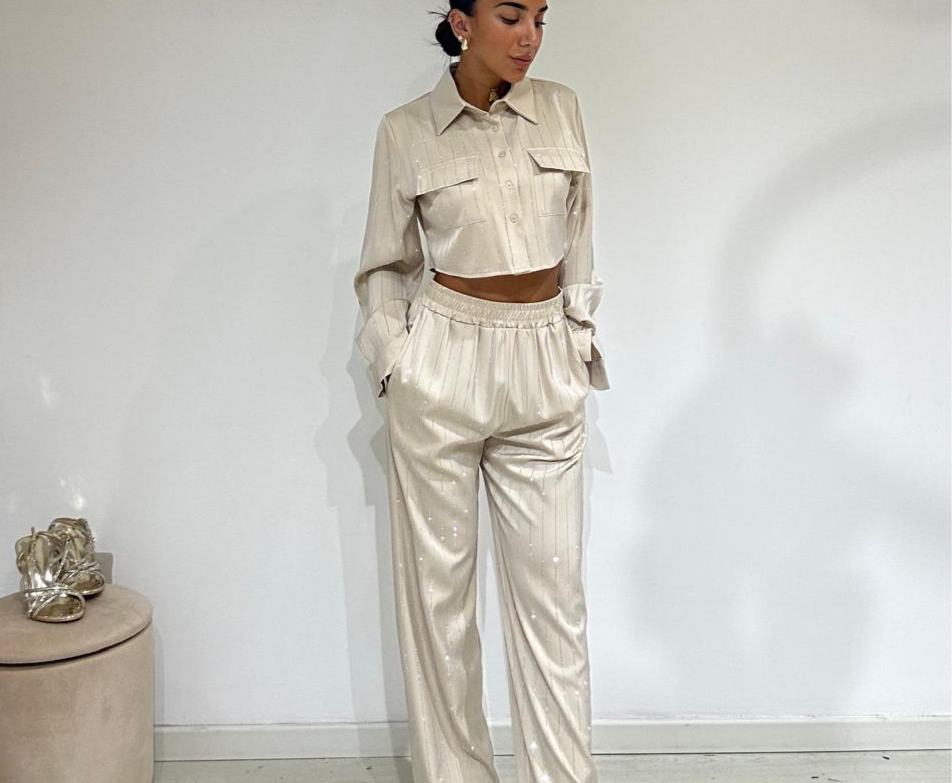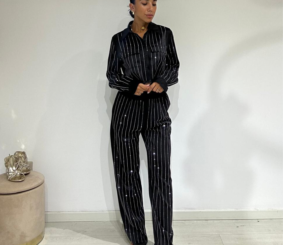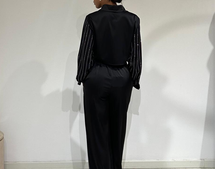 cordinato composto da pantalone lungo e top manica lunga con applicazione di brillantini