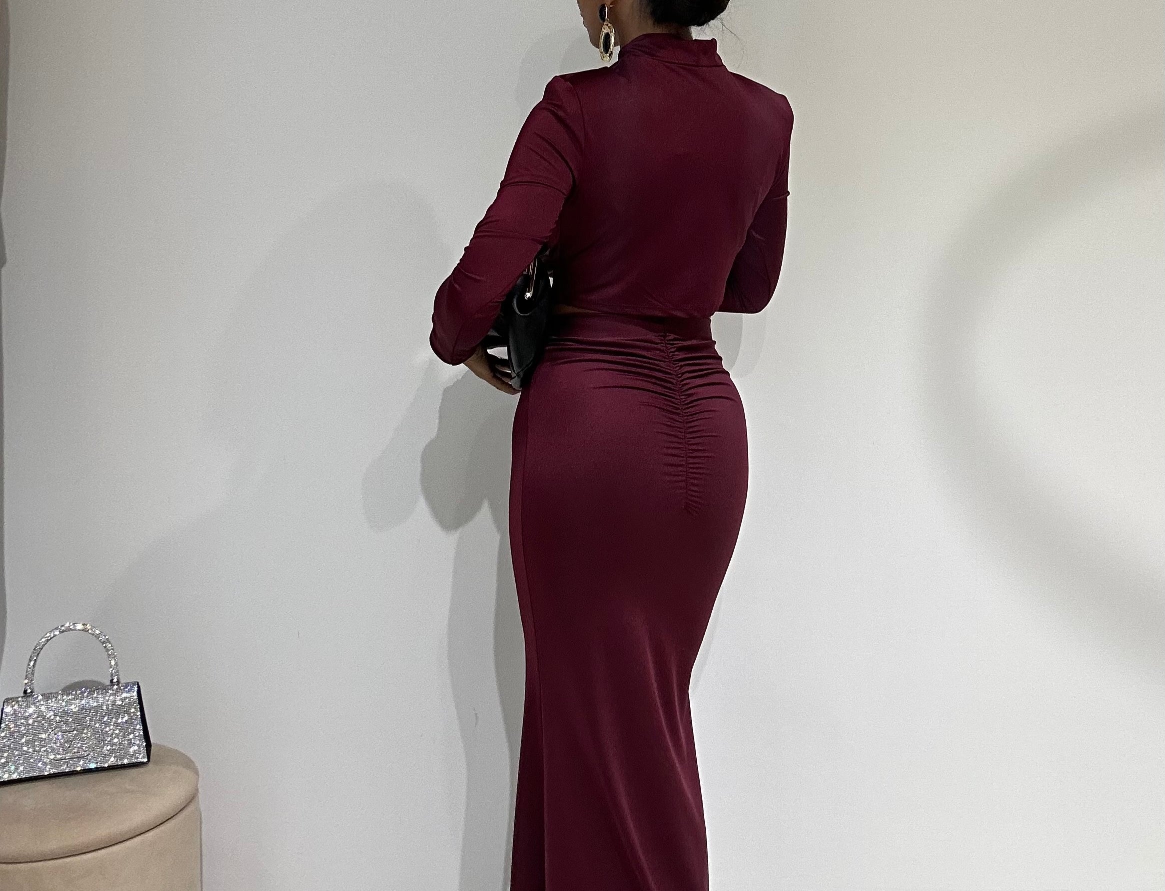 gonna lunga a sirena con drappeggio sul fondoschiena