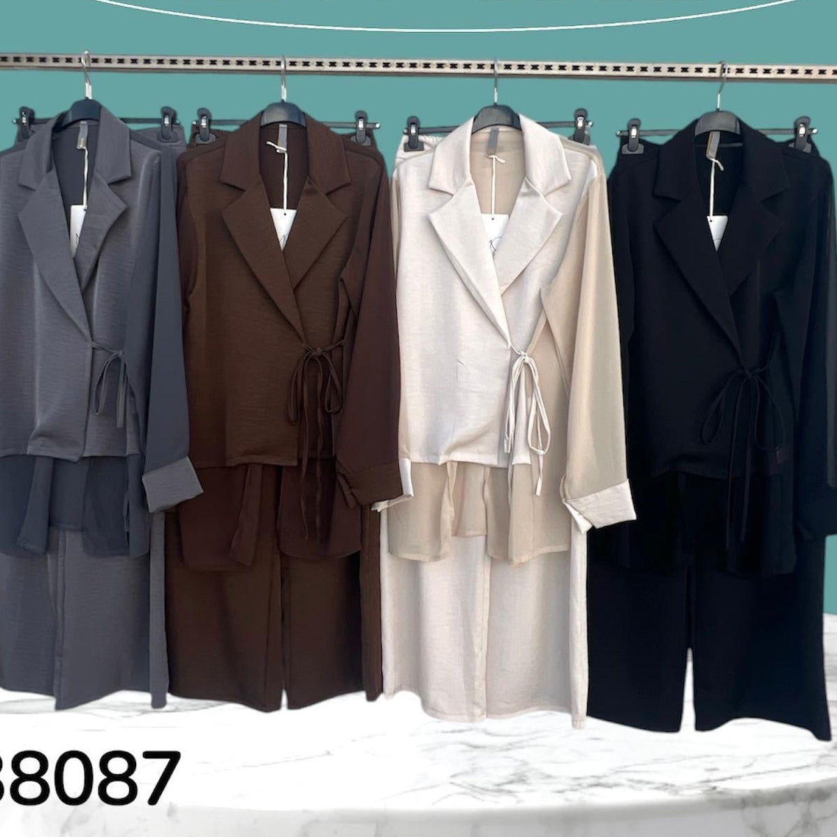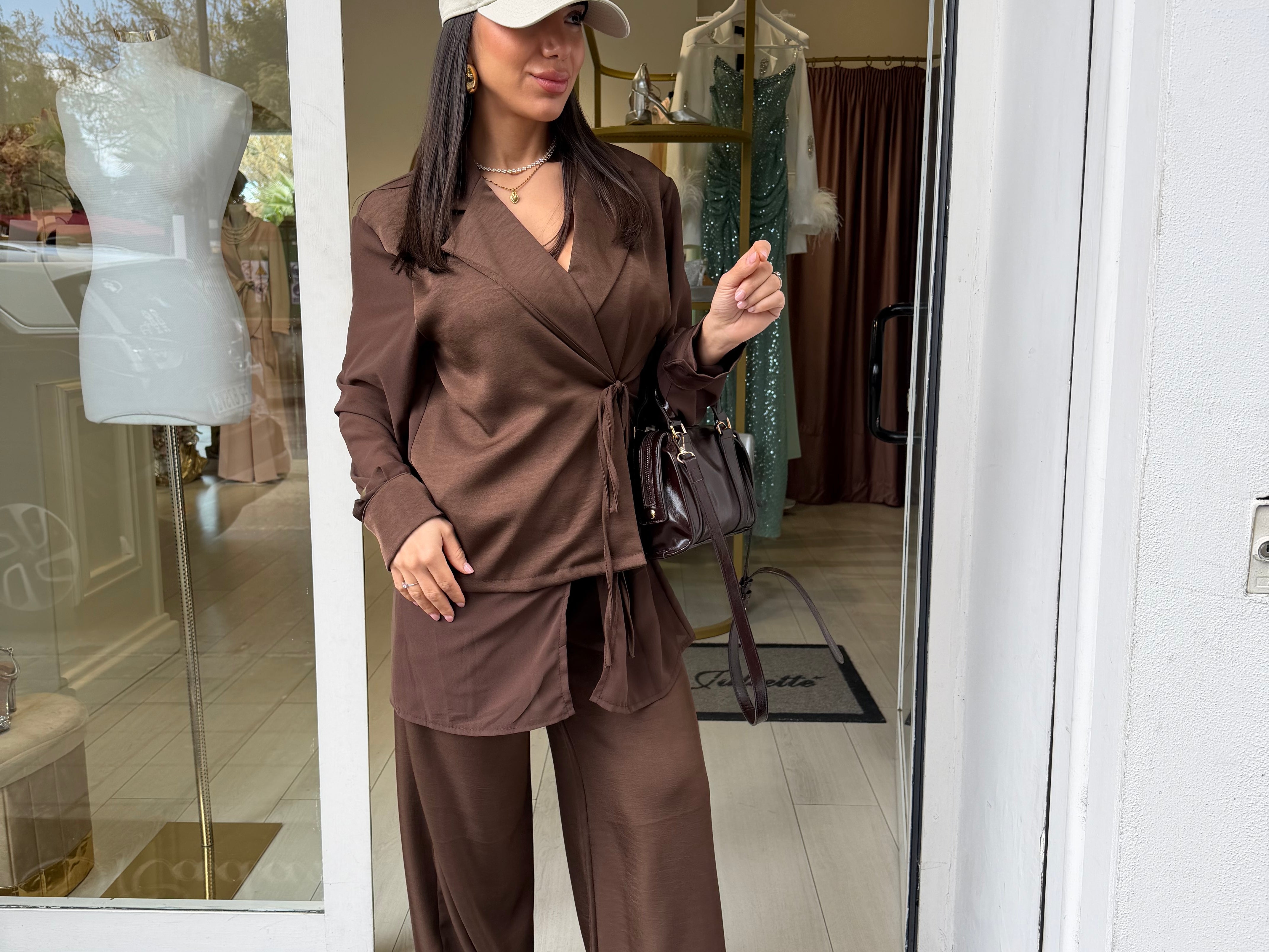 Coordinato dallo stile fluido e raffinato composto da camicia con chiusura incrociata e pantalone ampio a vita alta. Il tessuto leggero e la vestibilità morbida donano comfort e movimento, creando un look elegante ma rilassato. Perfetto per outfit quotidiani chic o occasioni informali con stile.