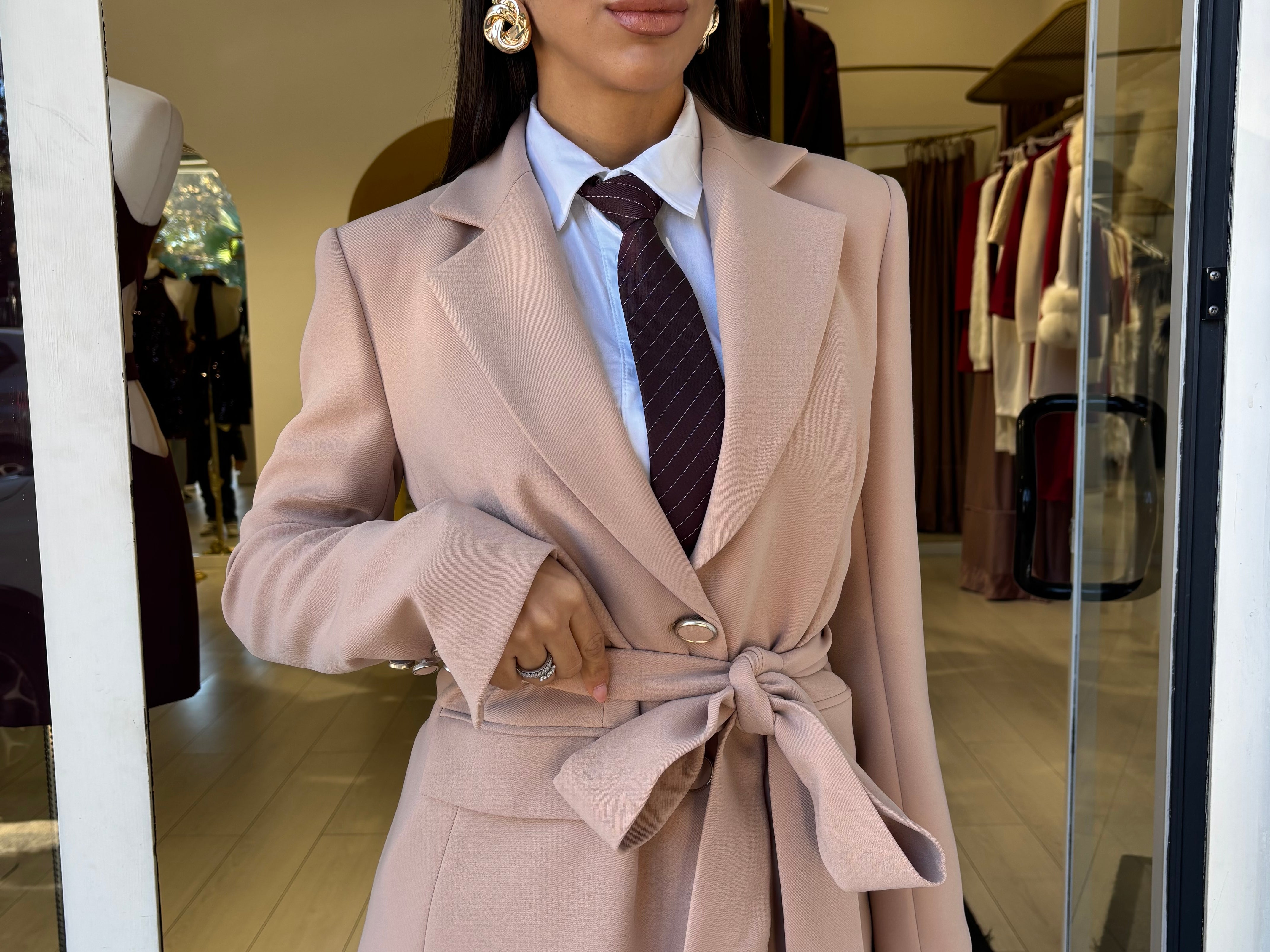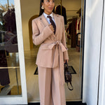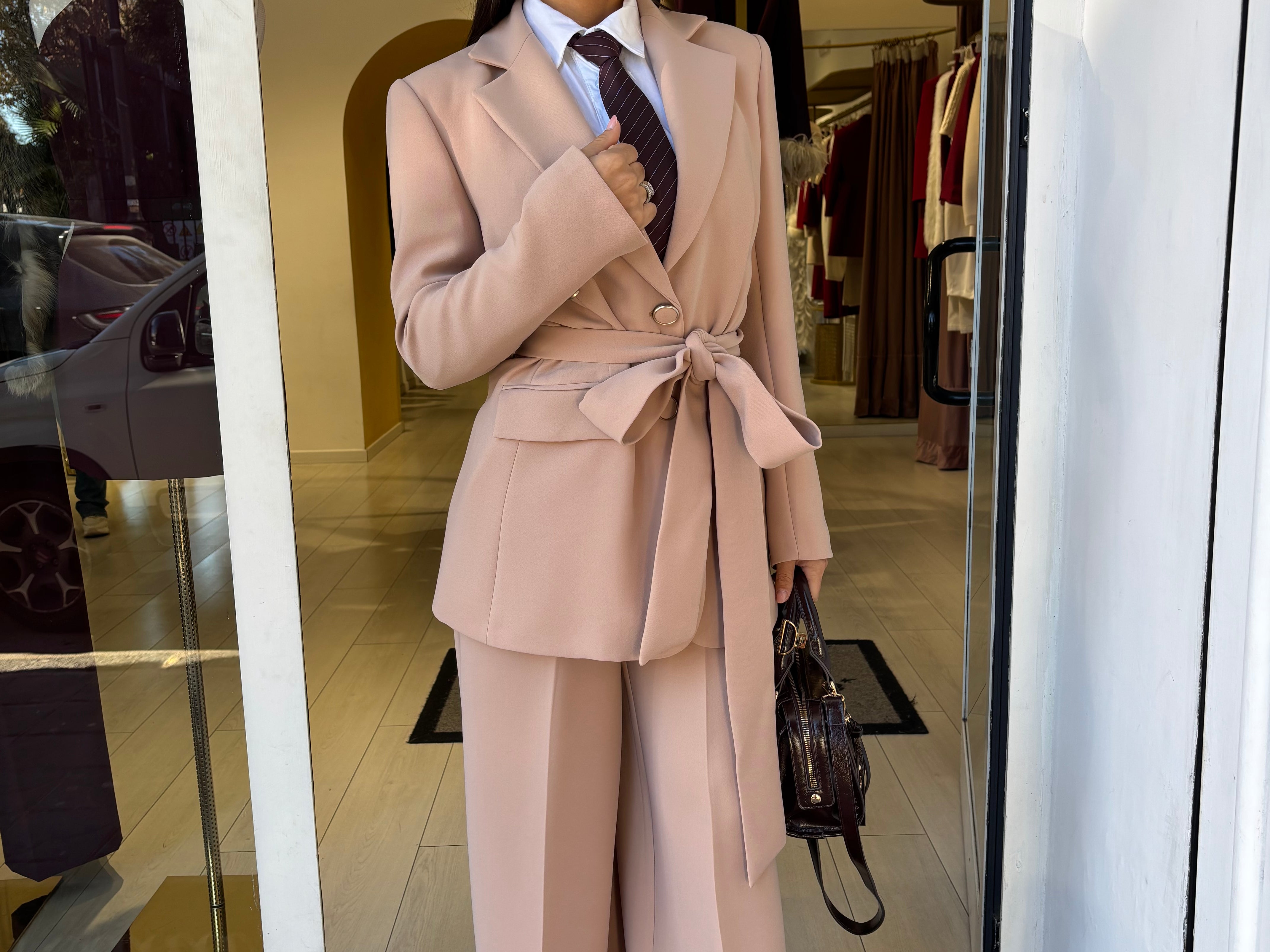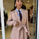 Tailleur elegante con giacca monopetto , fusciacca in vita