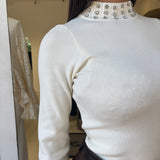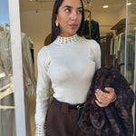 Maglioncino mezzo collo con applicazioni di pietre gioiello