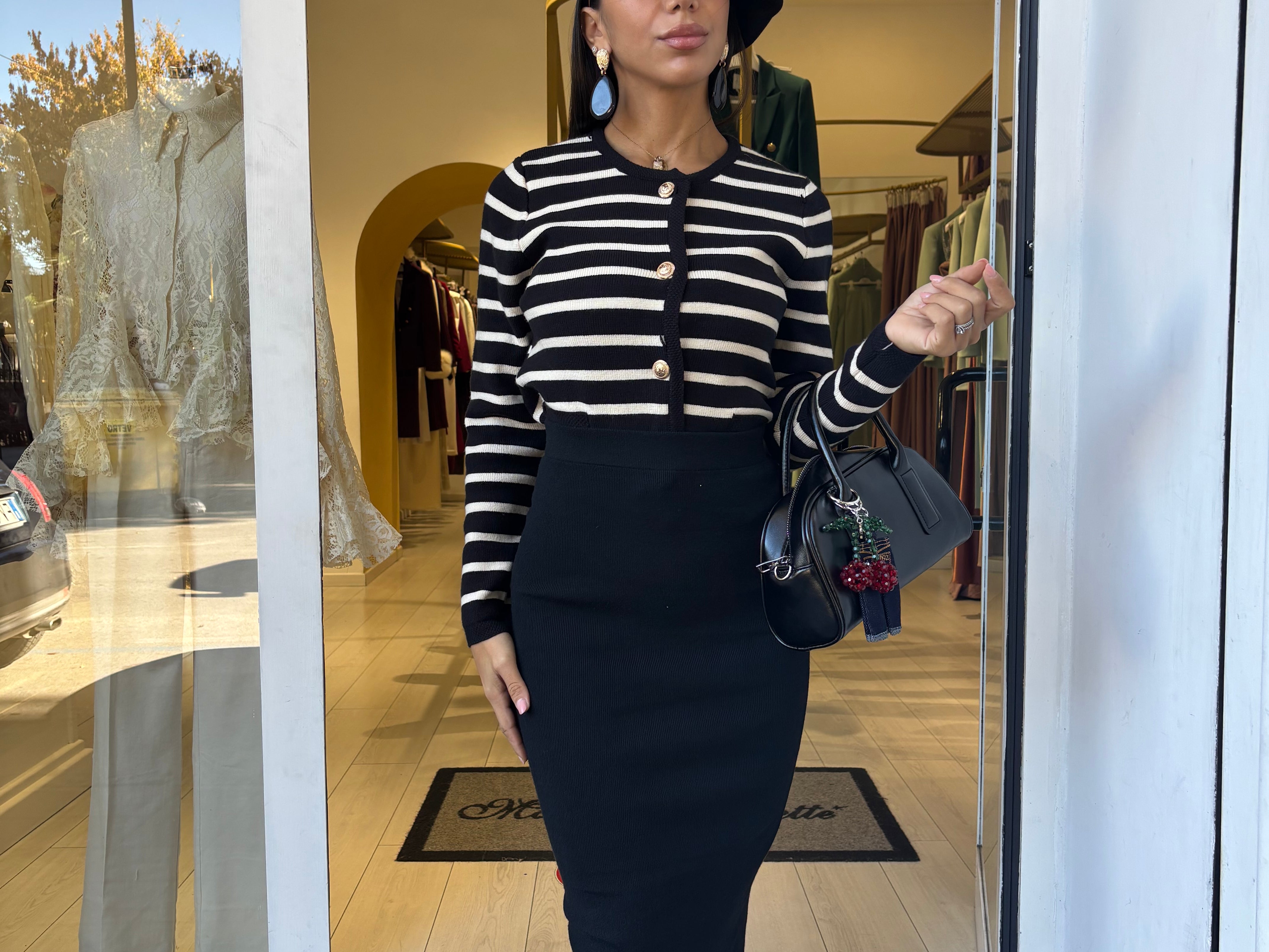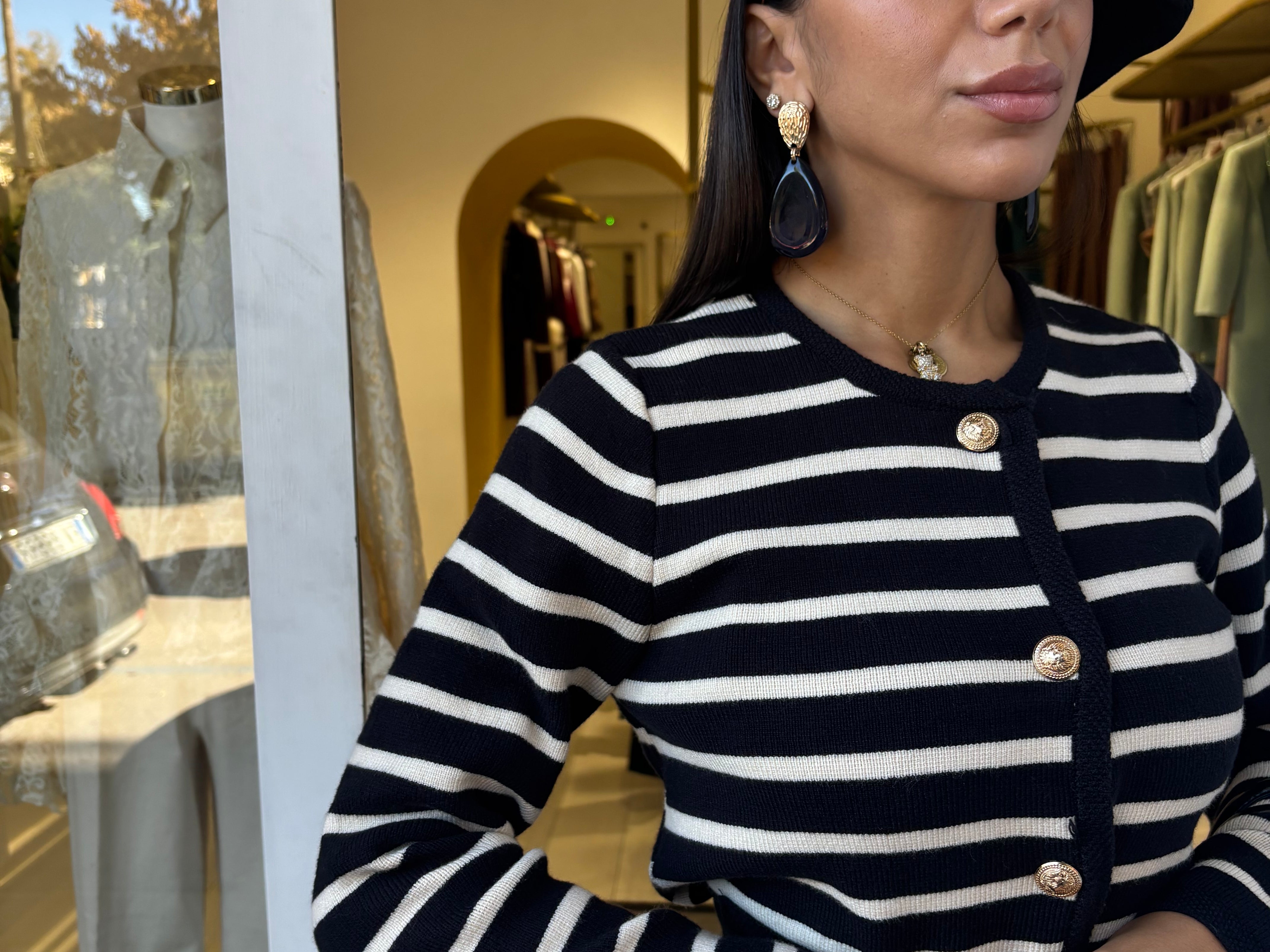 Maglioncino cardigan in lana rasa con bottoni gioiello