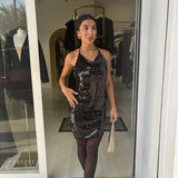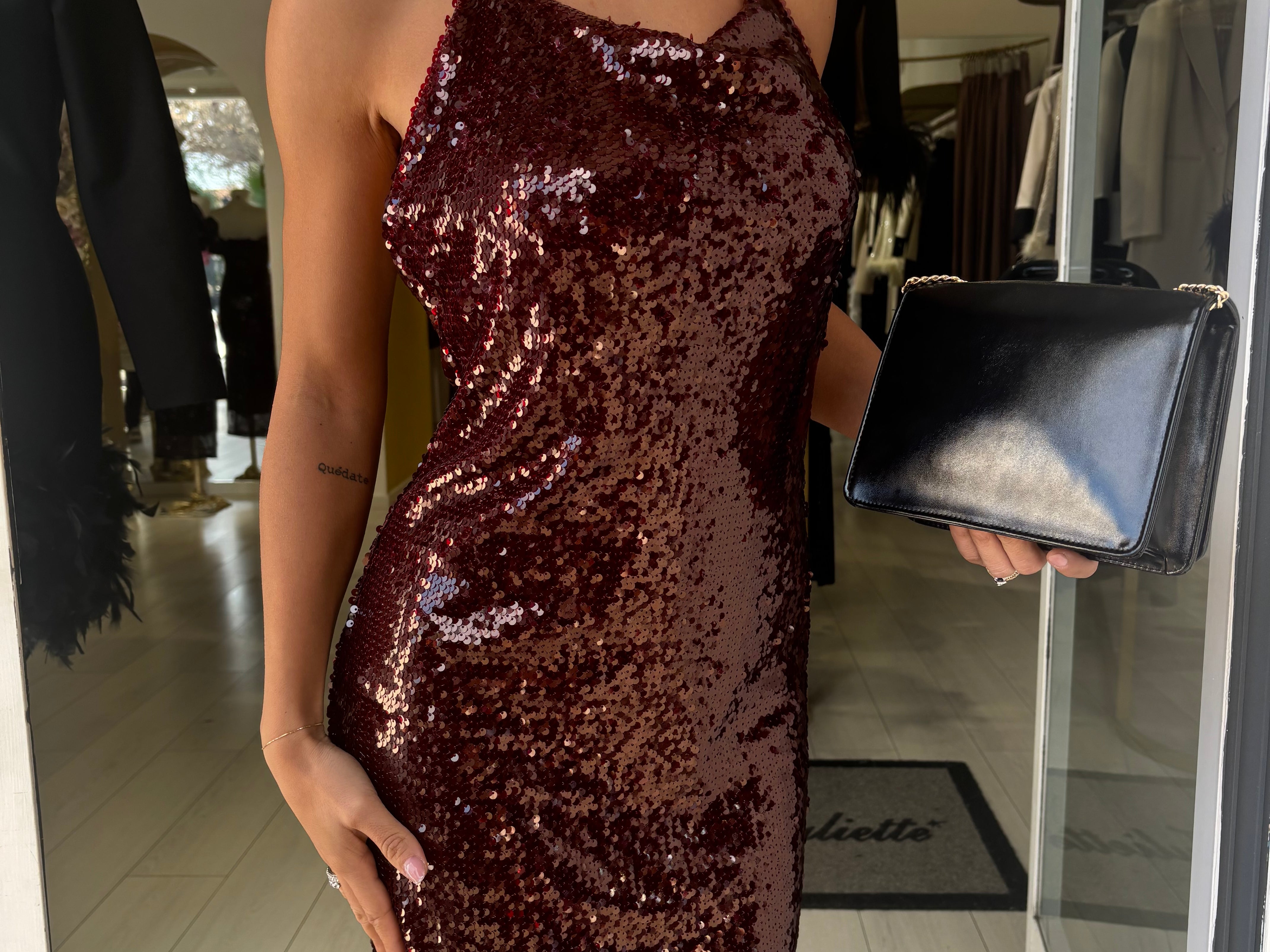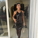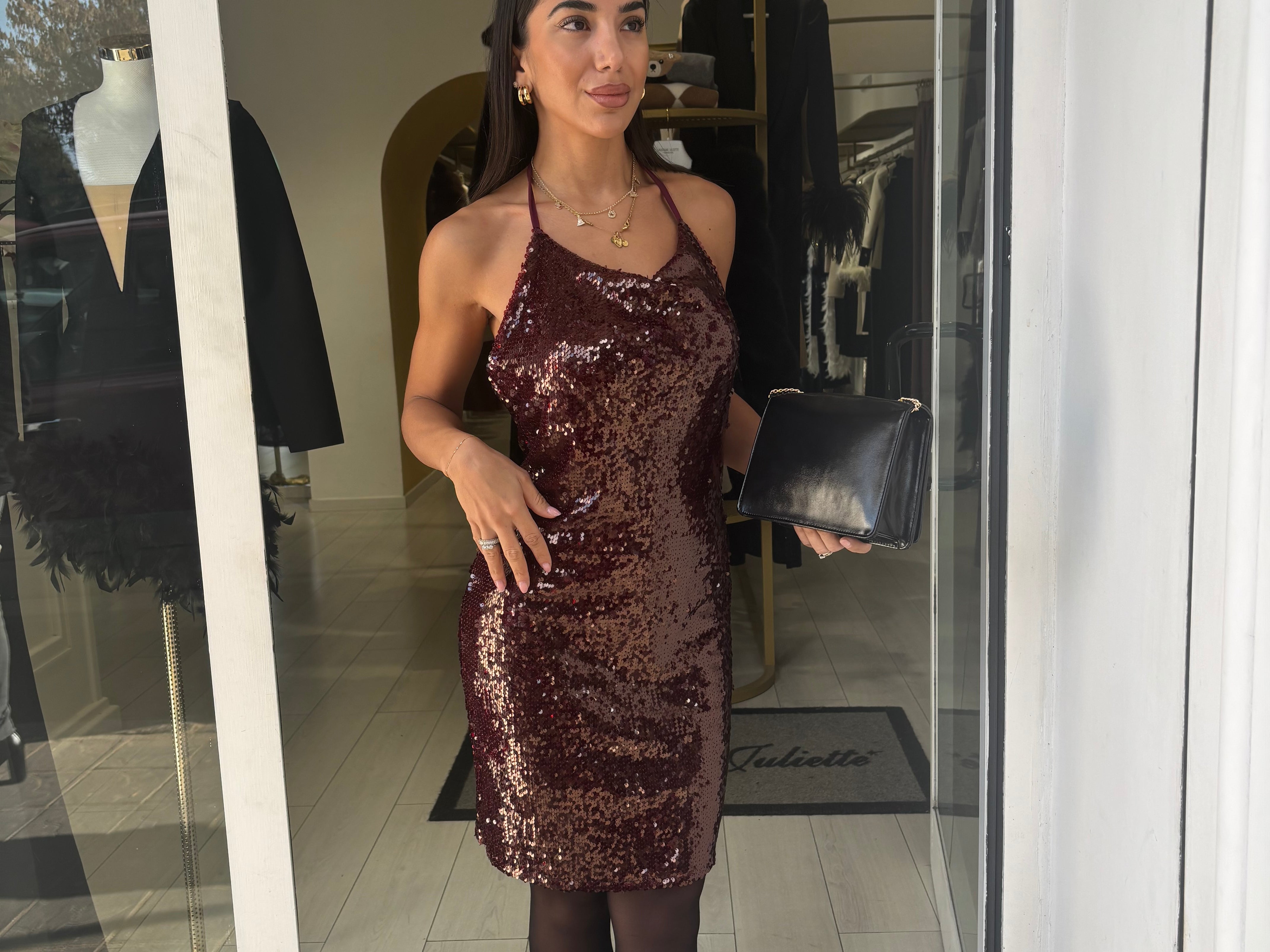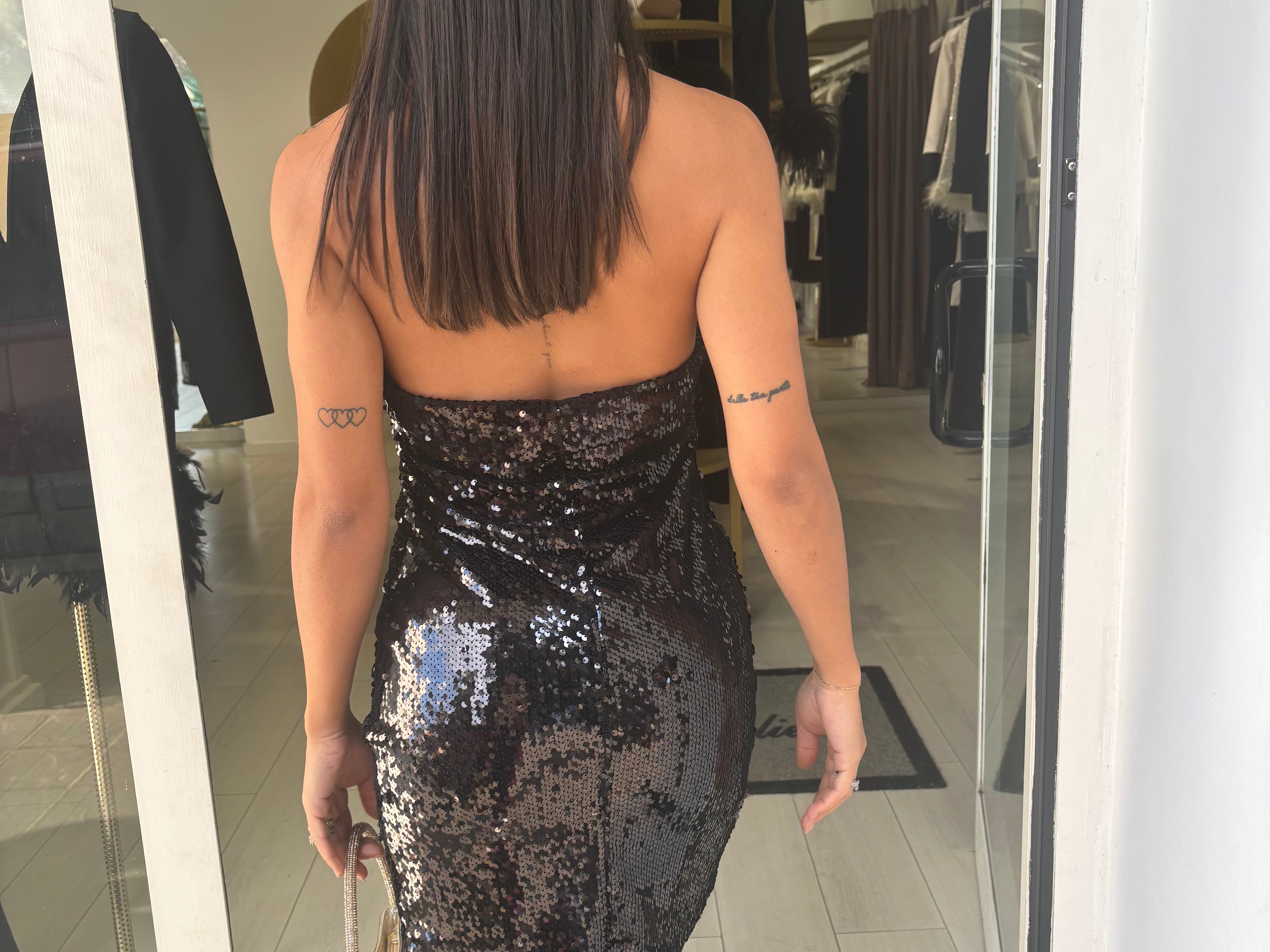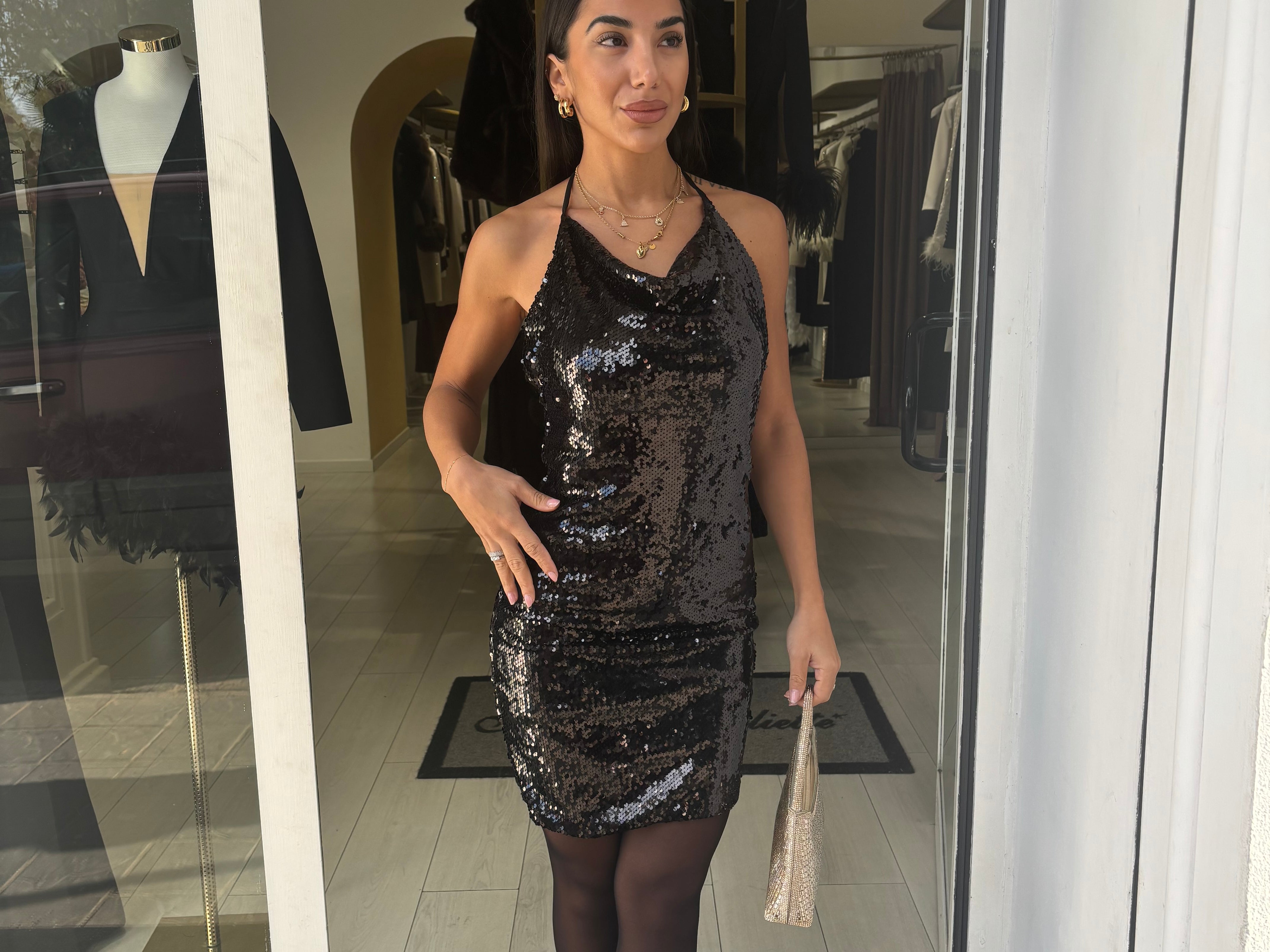 abito corto a tubino interamente in paillettes