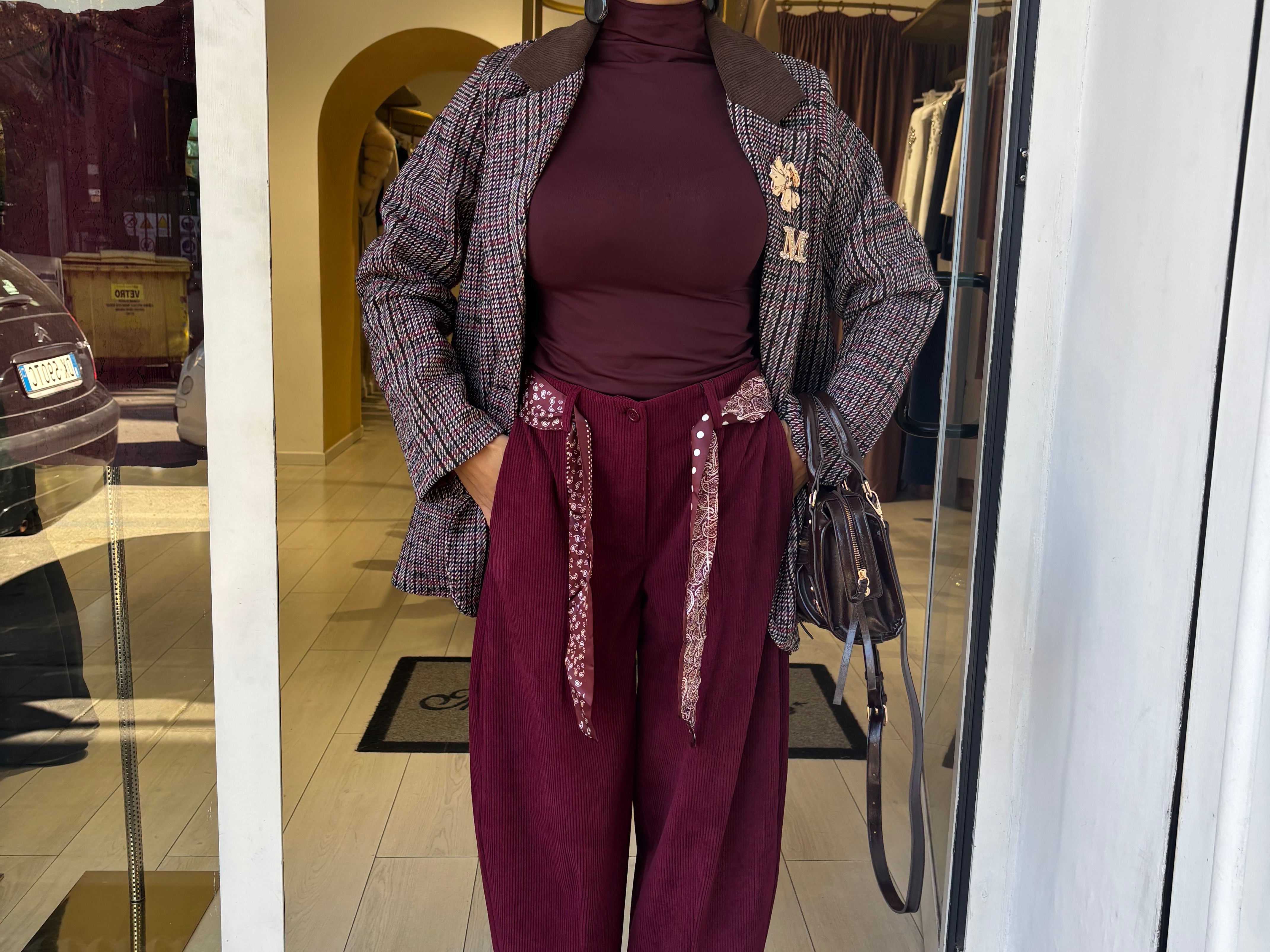 Pantalone vita alta con fusciacca abbinata