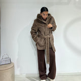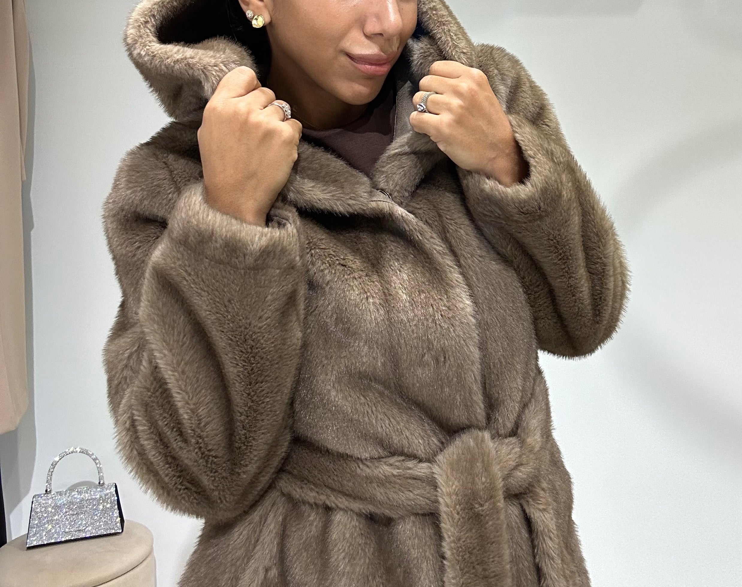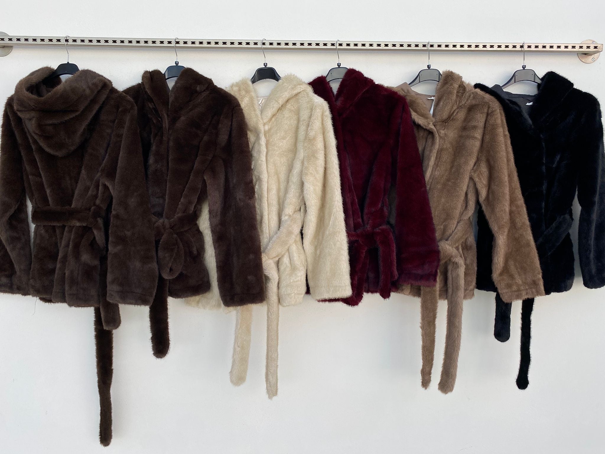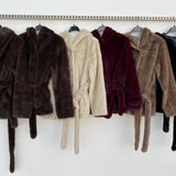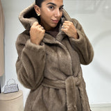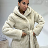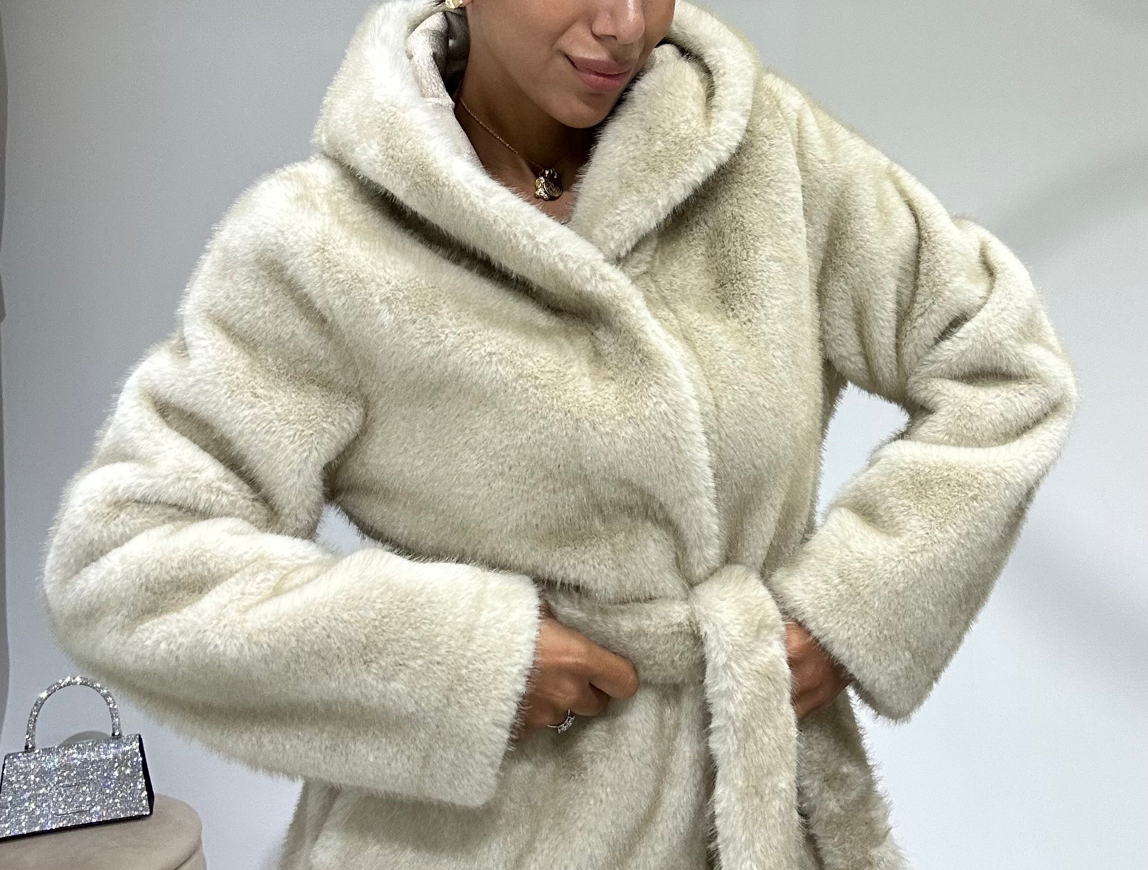 Eco pelliccia modello accappatoio con cintura in vita