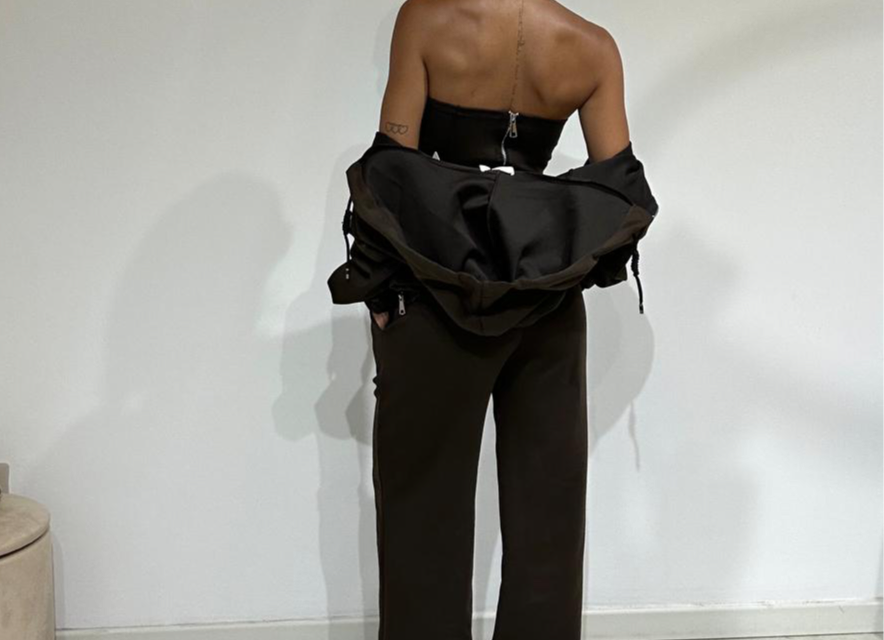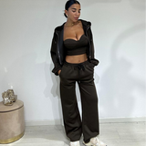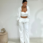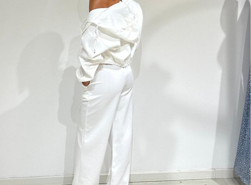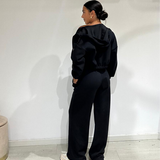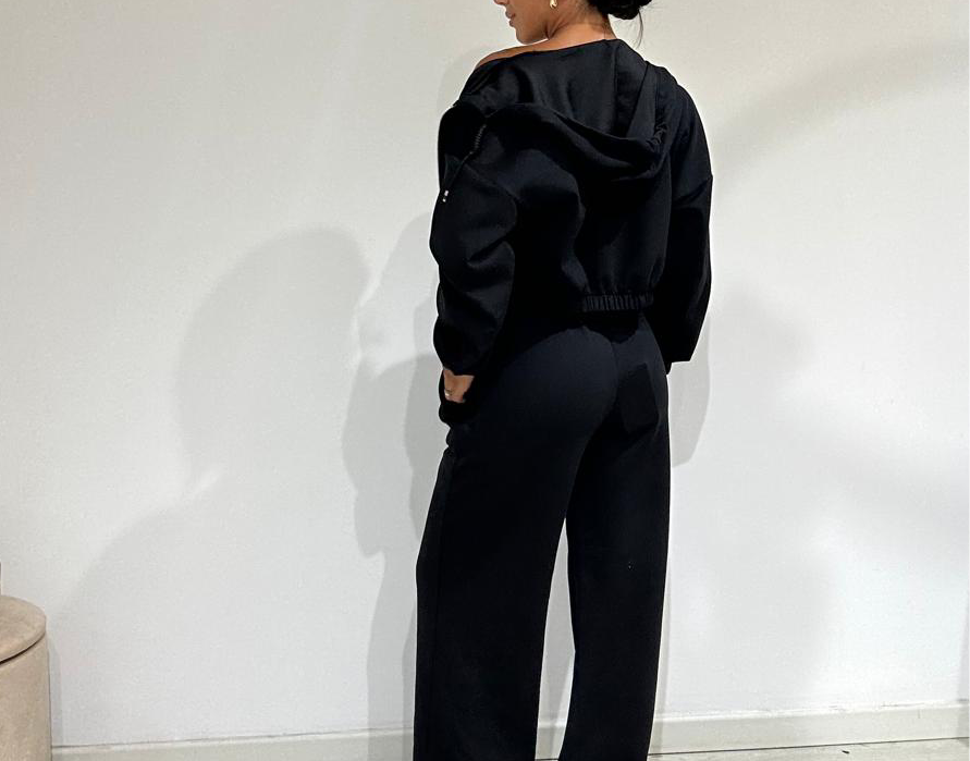 Set 3 pezzi composto da pantalone lungo, top e felpa corta manica lunga