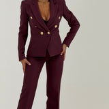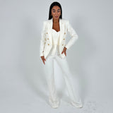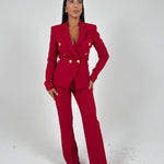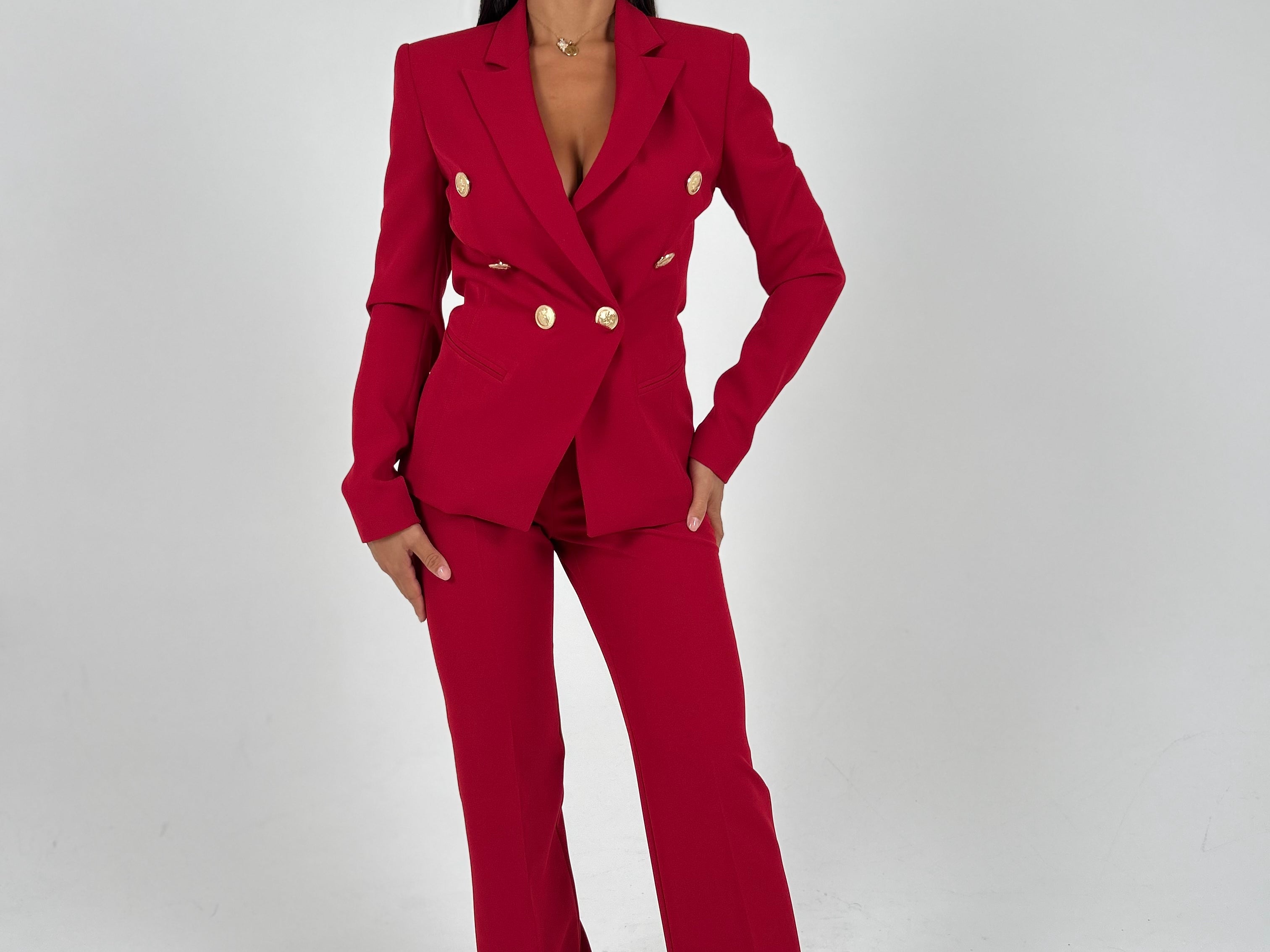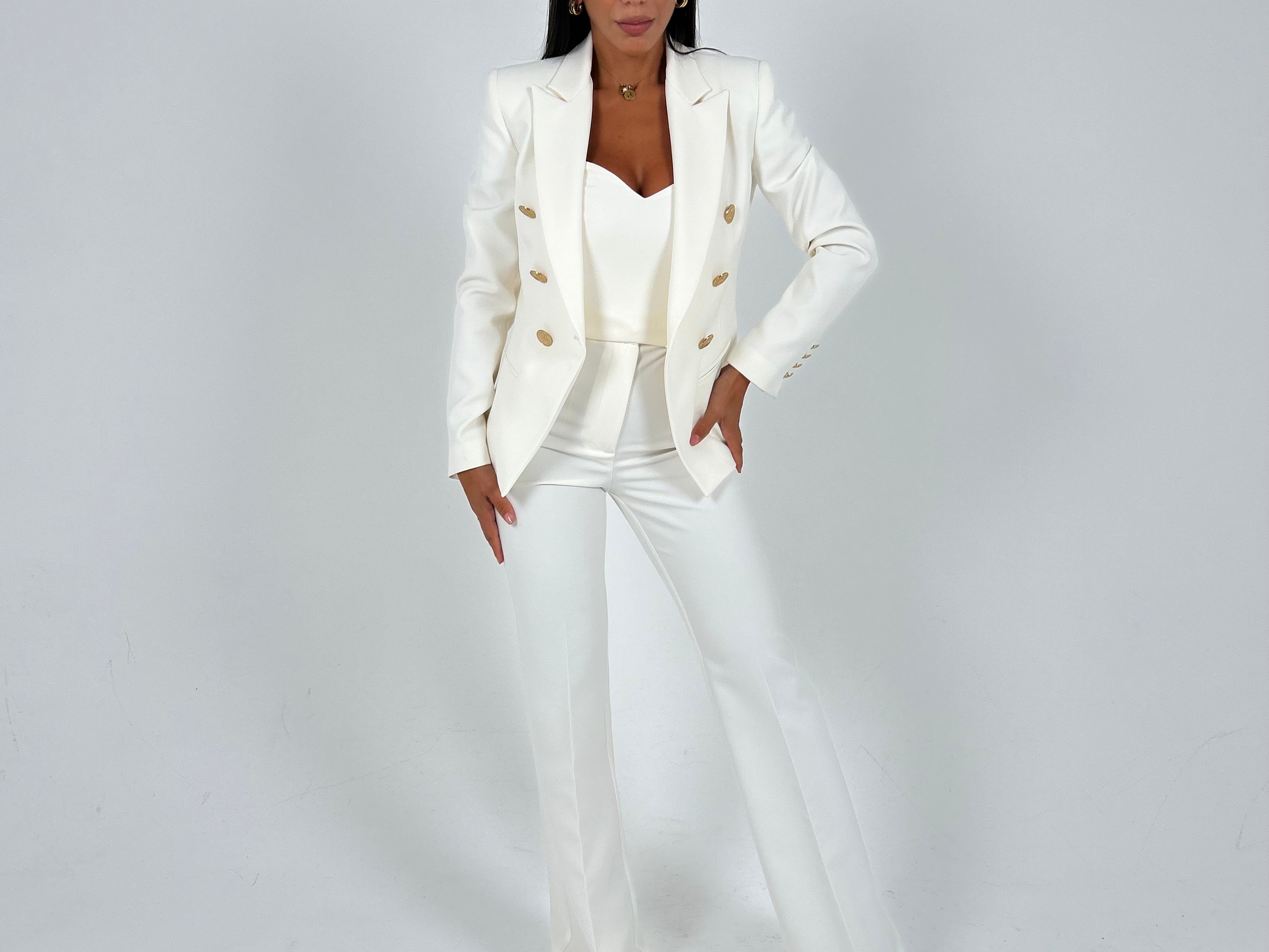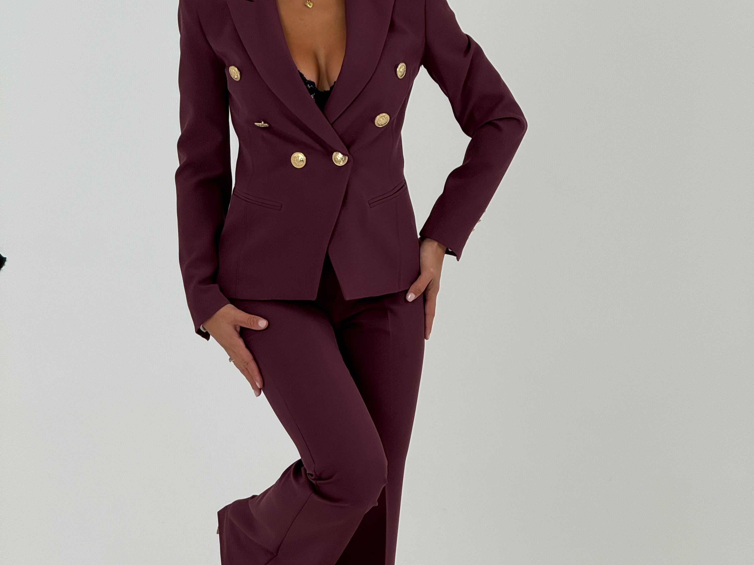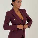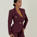 Giacca doppio petto con scollo a lancia e spalline imbottite.Due tasche a taglio laterali, quattro bottoni per manica