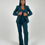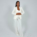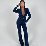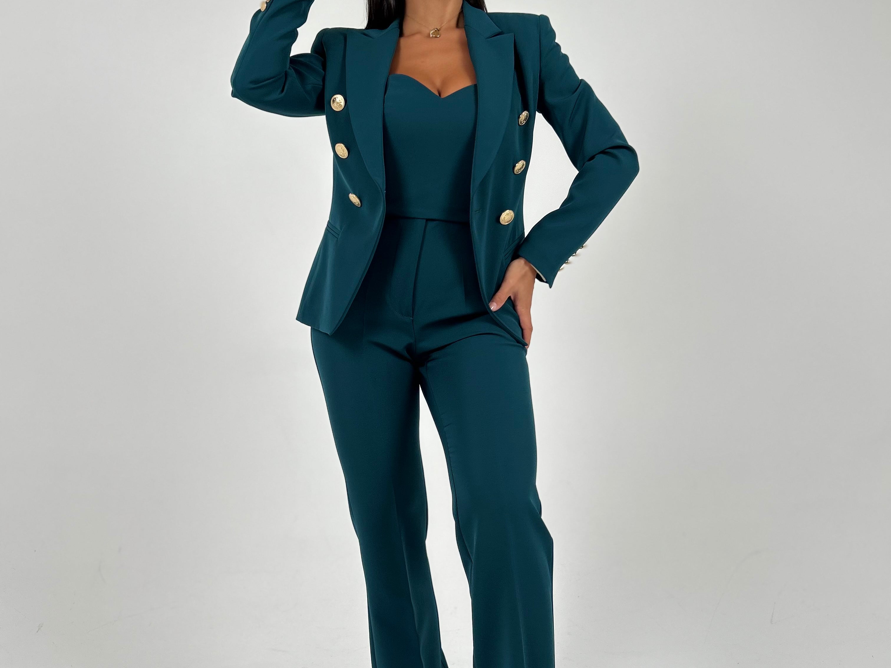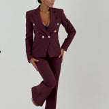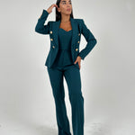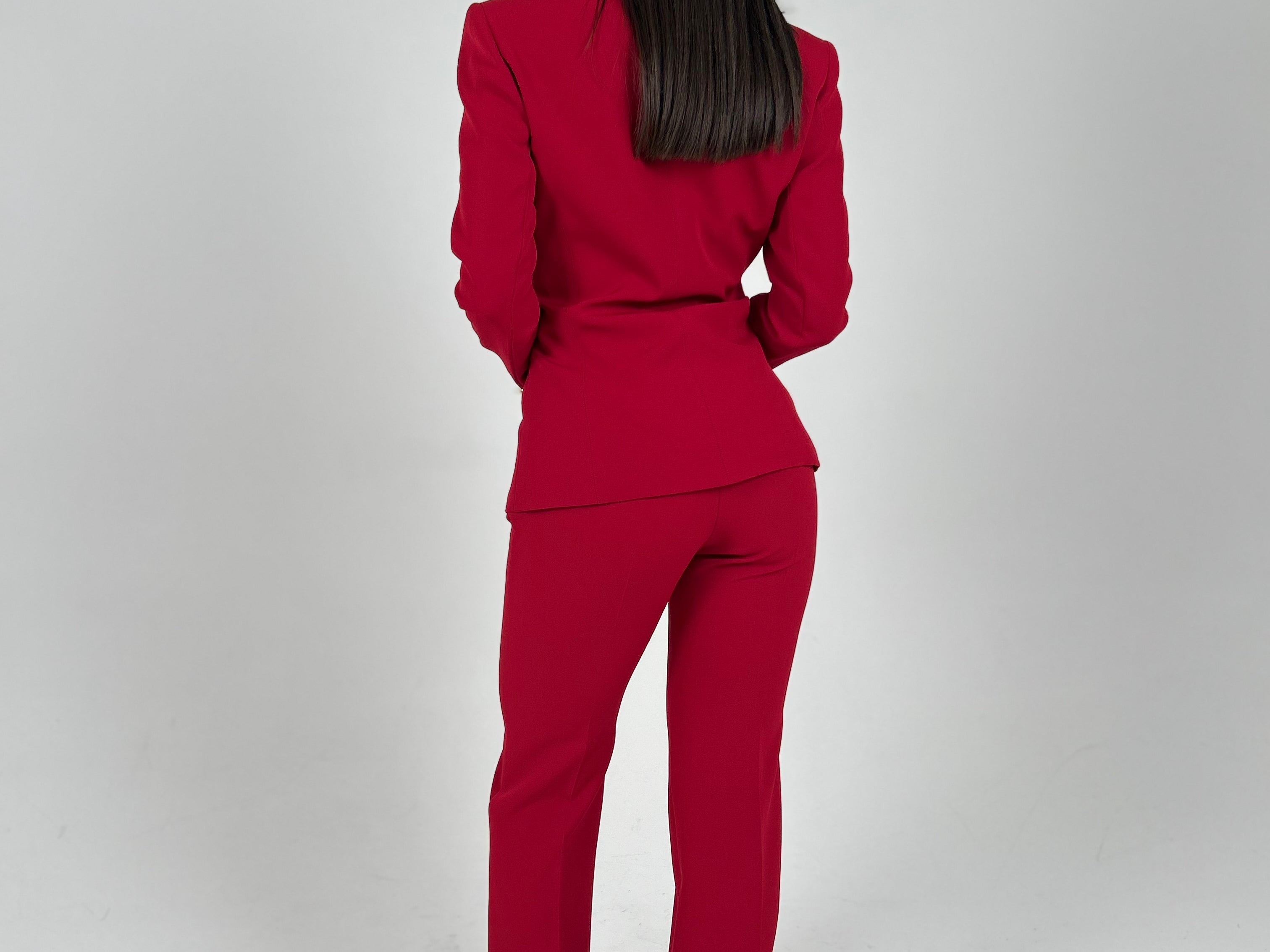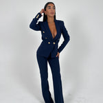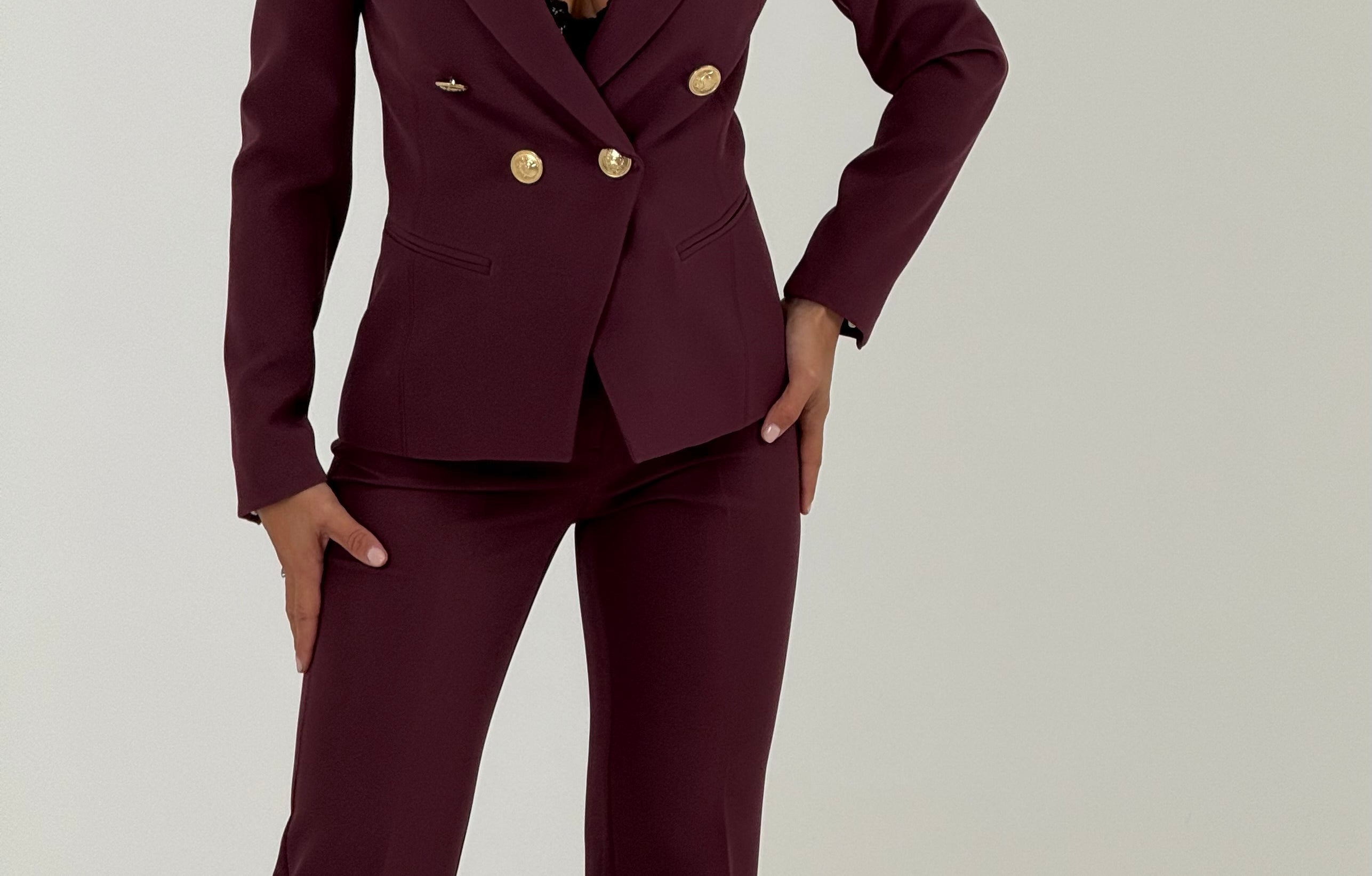 Giacca doppio petto con scollo a lancia e spalline imbottite.Due tasche a taglio laterali, quattro bottoni per manica