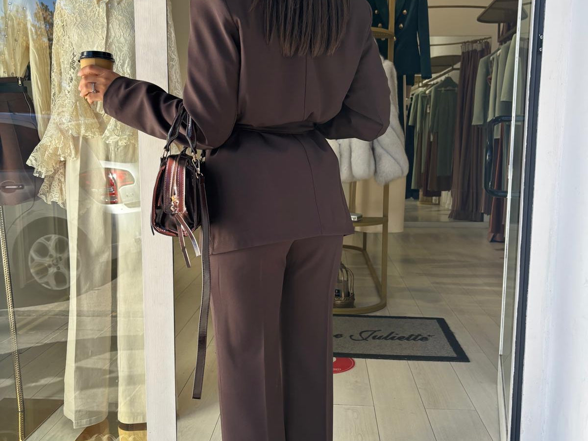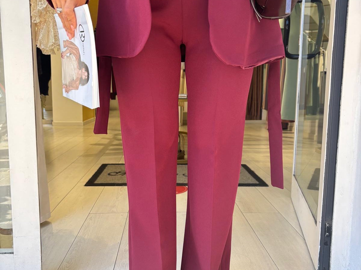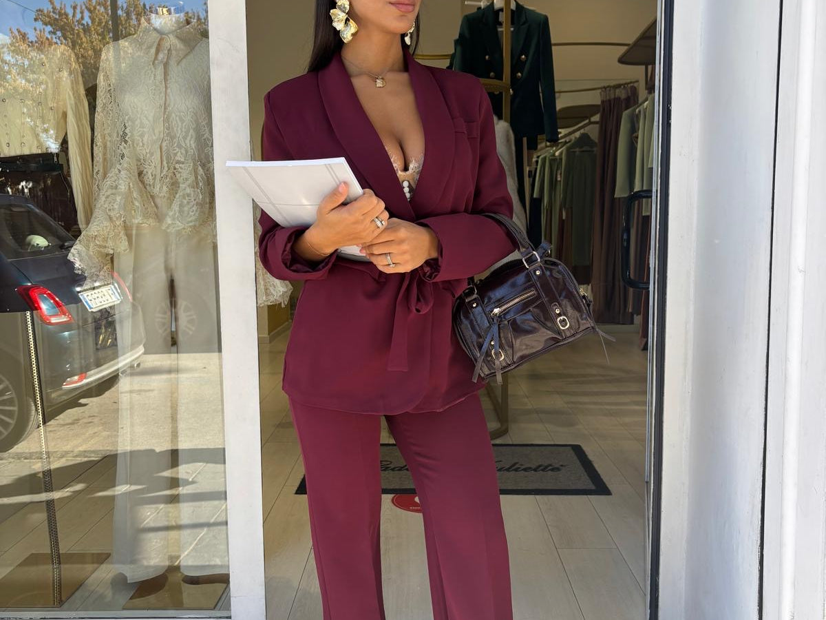 Tailleur Oxford new è composto da giacca com fusciacca in vita e pantalone vita alta modello zampa