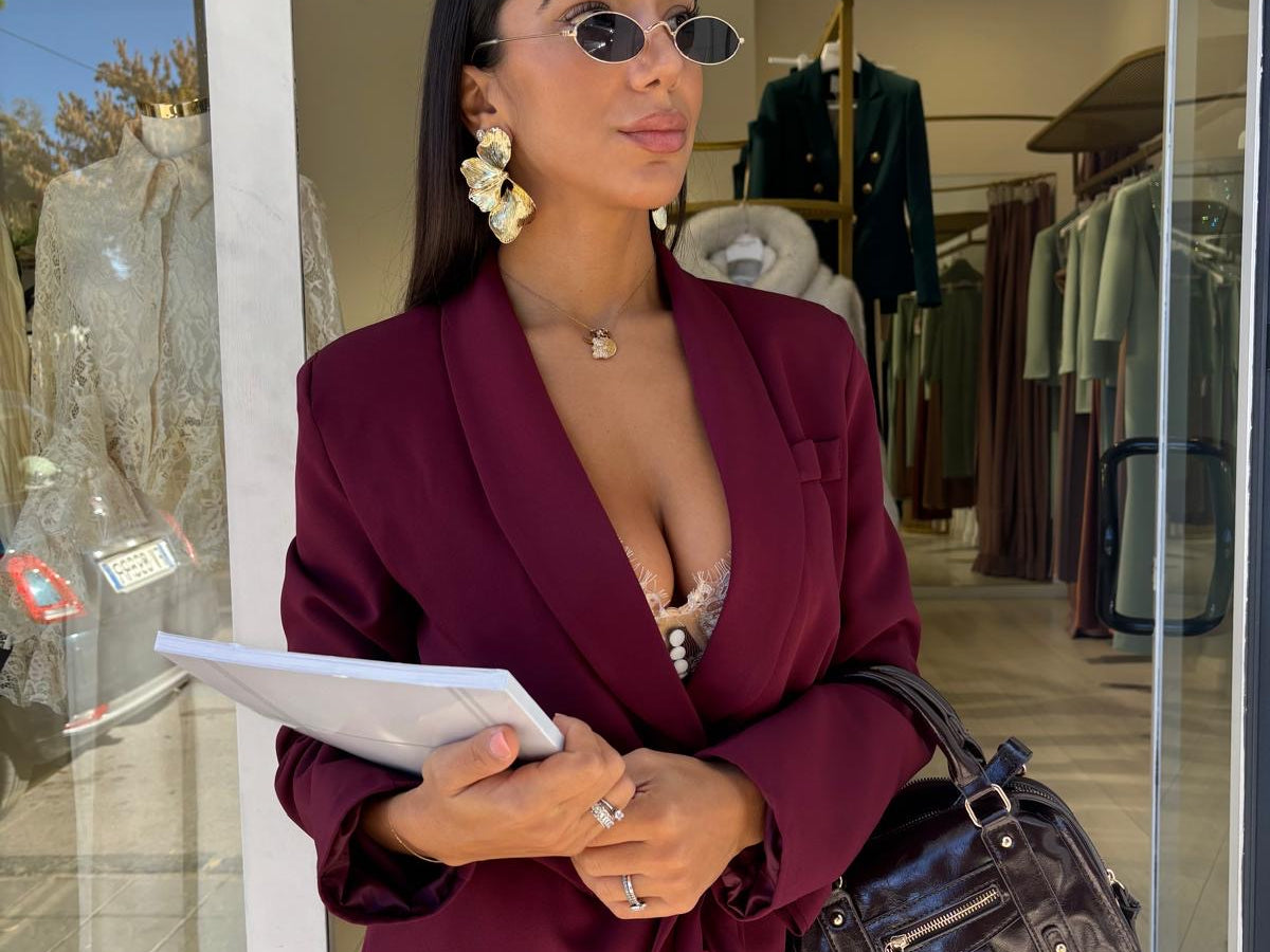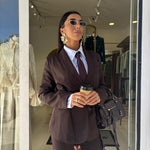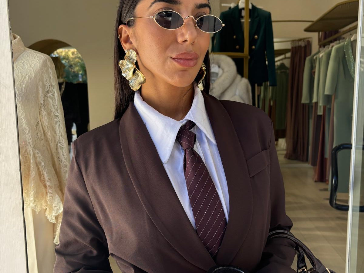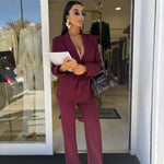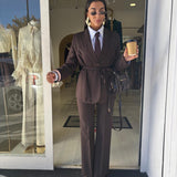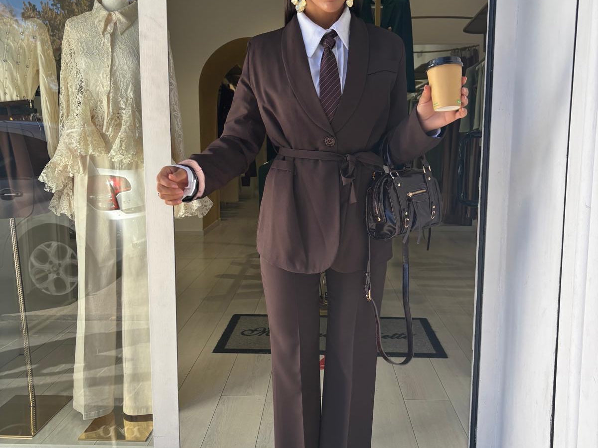Tailleur Oxford new è composto da giacca com fusciacca in vita e pantalone vita alta modello zampa