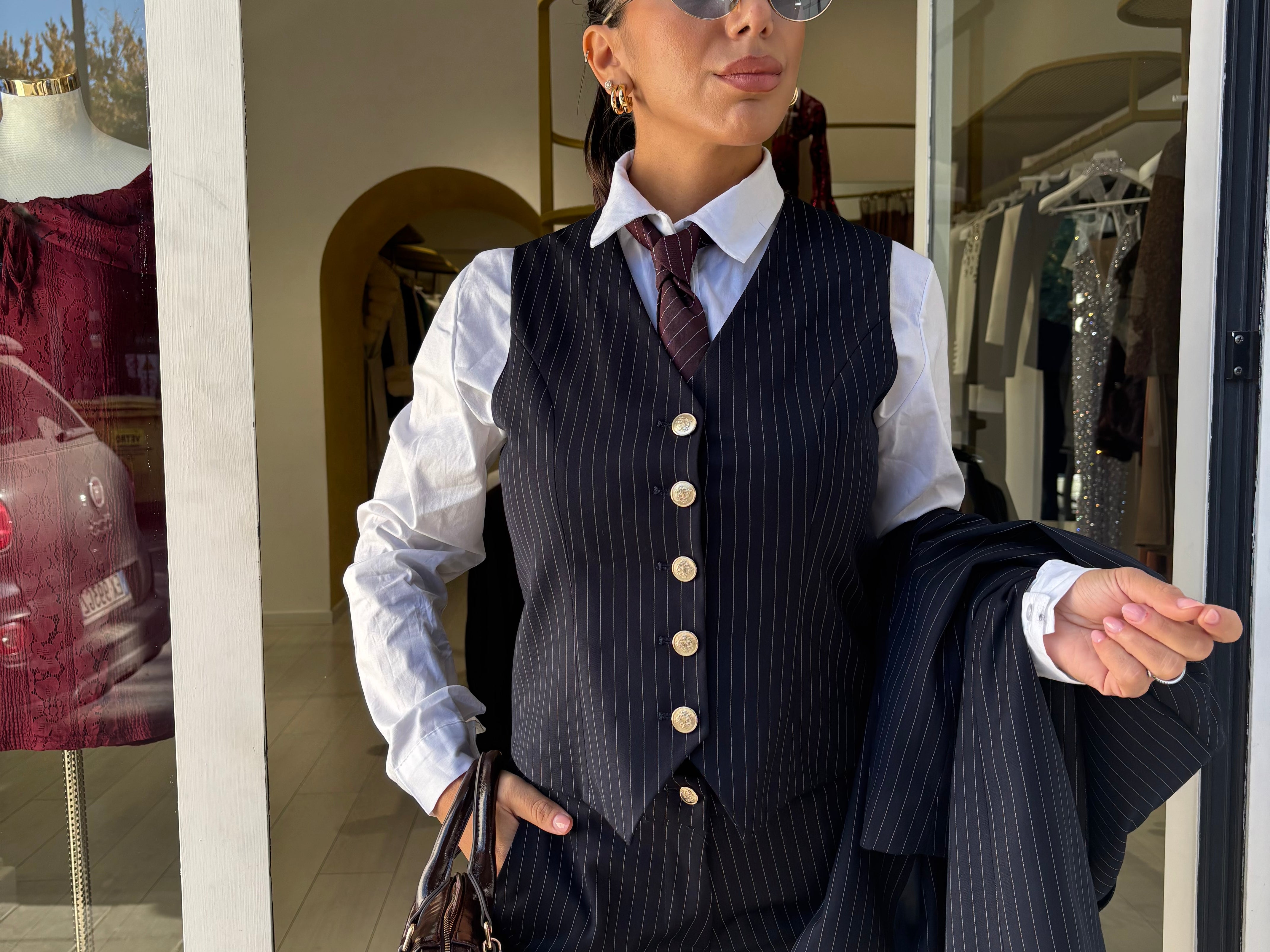 gilet con bottoncini dorati
